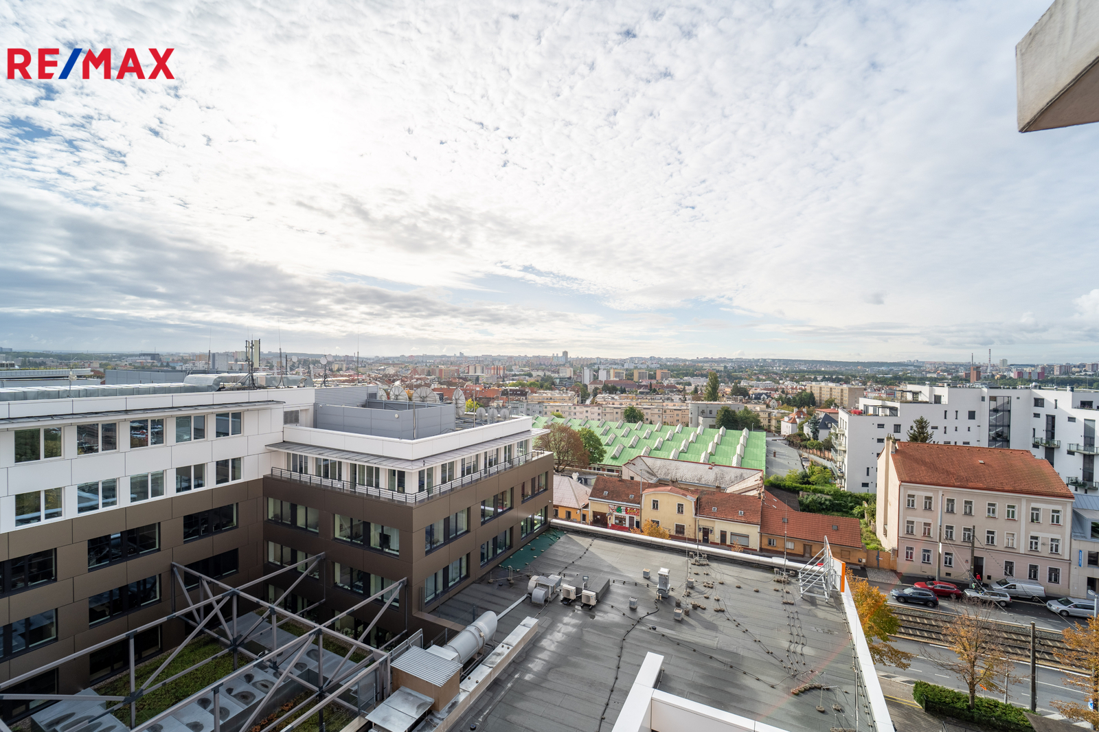 Exkluzivně nabízíme pronájem bytu o dispozici 2+kk a výměře 38 m² - Praha 10, Strašnice, ul. Vinohradská, který se nachází v 10. NP domu s výhledem na část Prahy.