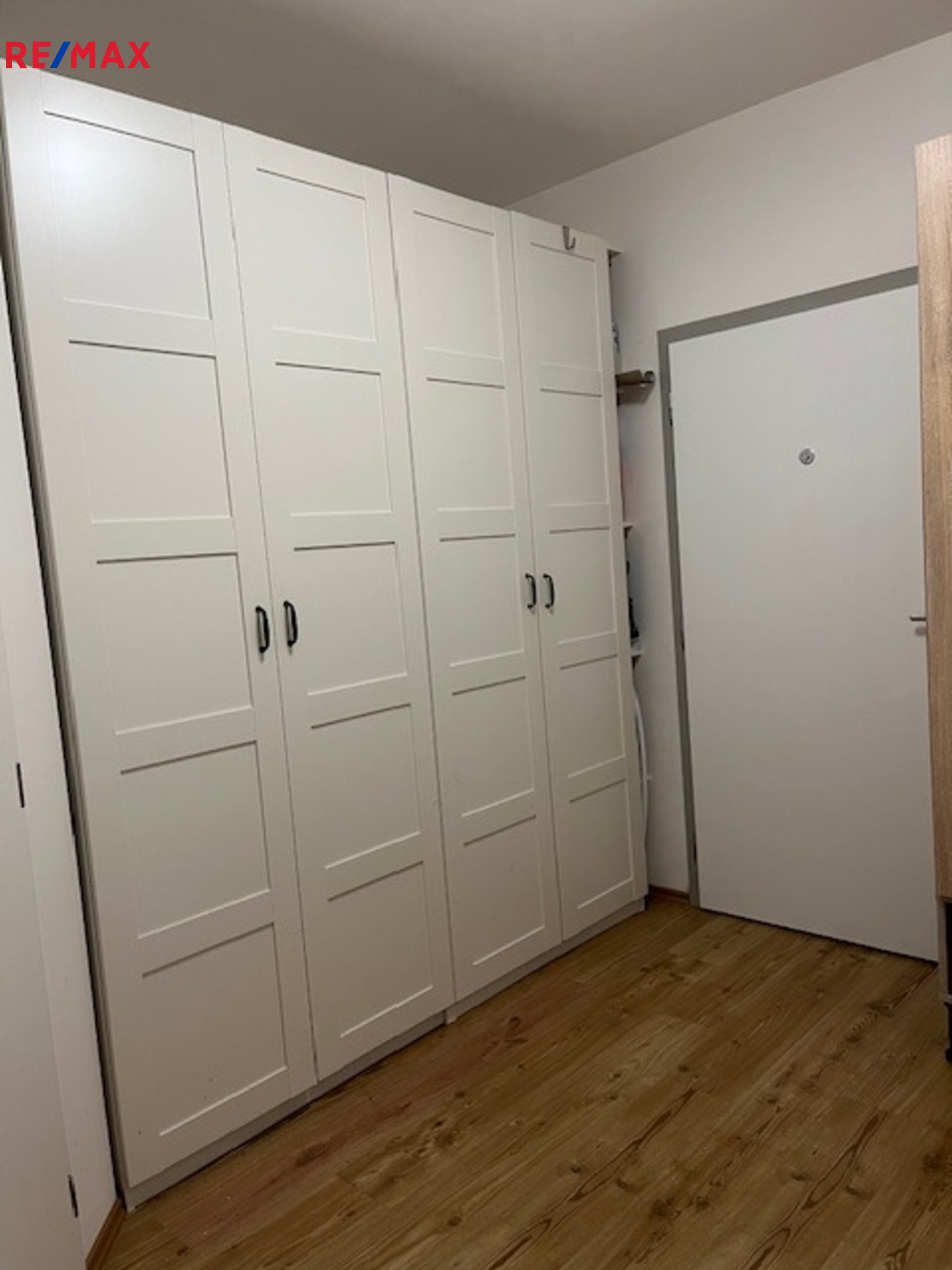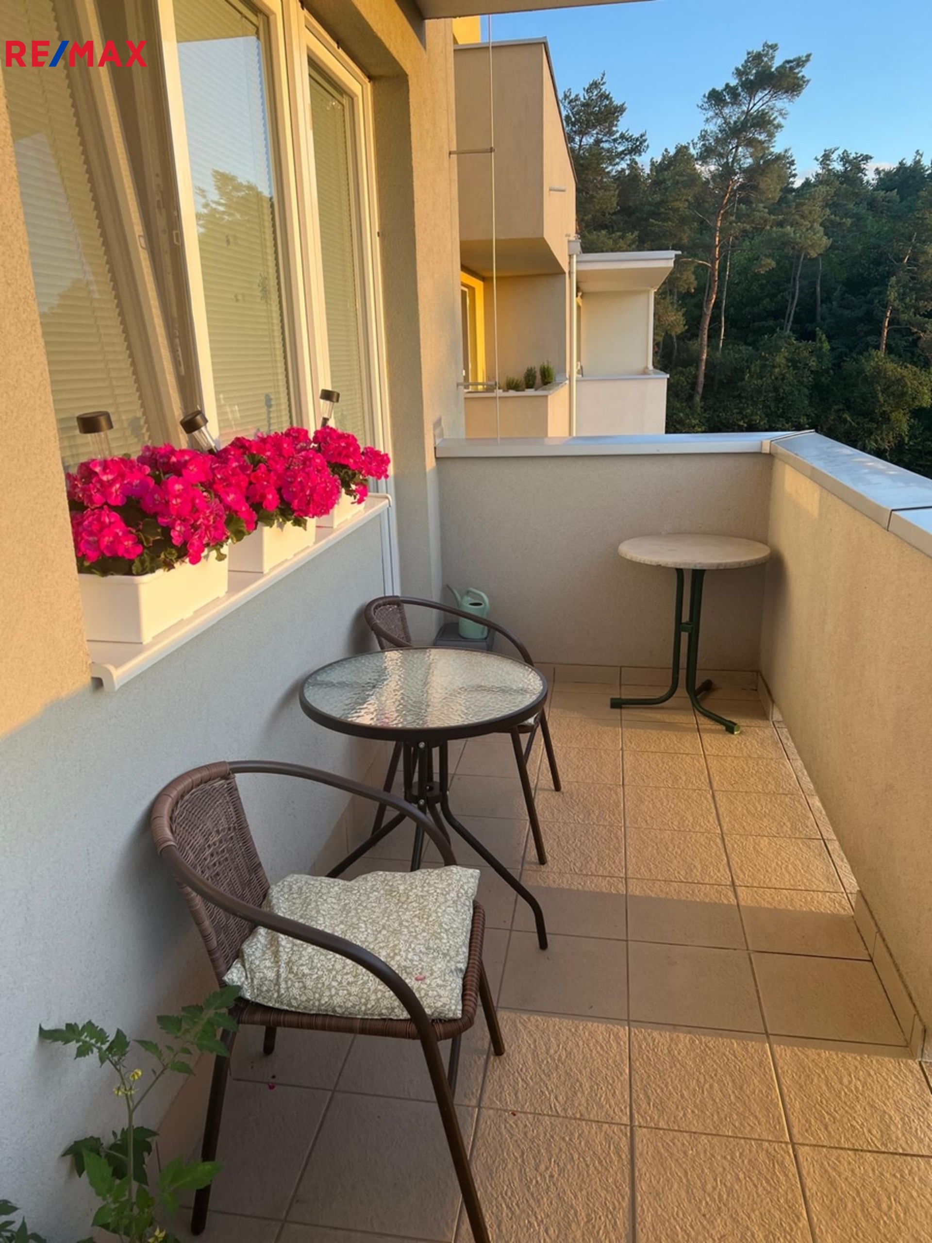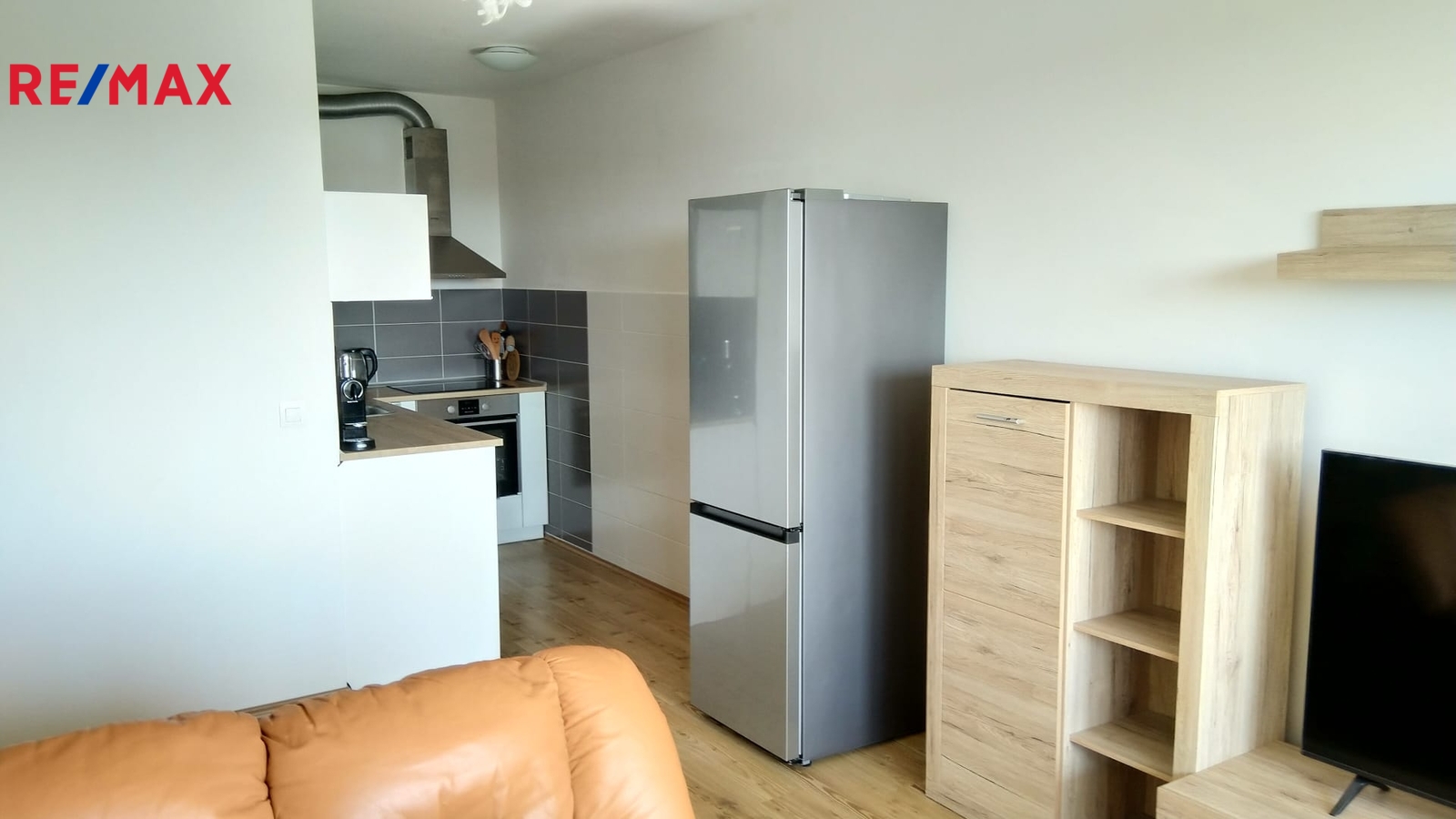 Dispozice bytu nabízí prostorný obývací pokoj s kuchyňským koutem, samostatnou ložnici, koupelnu s WC, předsíň, praktickou komoru a balkon orientovaný na východ. Součástí vybavení zůstává vestavěná skříň v předsíni a kuchyňské spotřebiče – myčka, trouba a varná deska. Lednice, pračka ani volně stojící nábytek (postel, pohovka apod.) součástí nájmu nejsou.