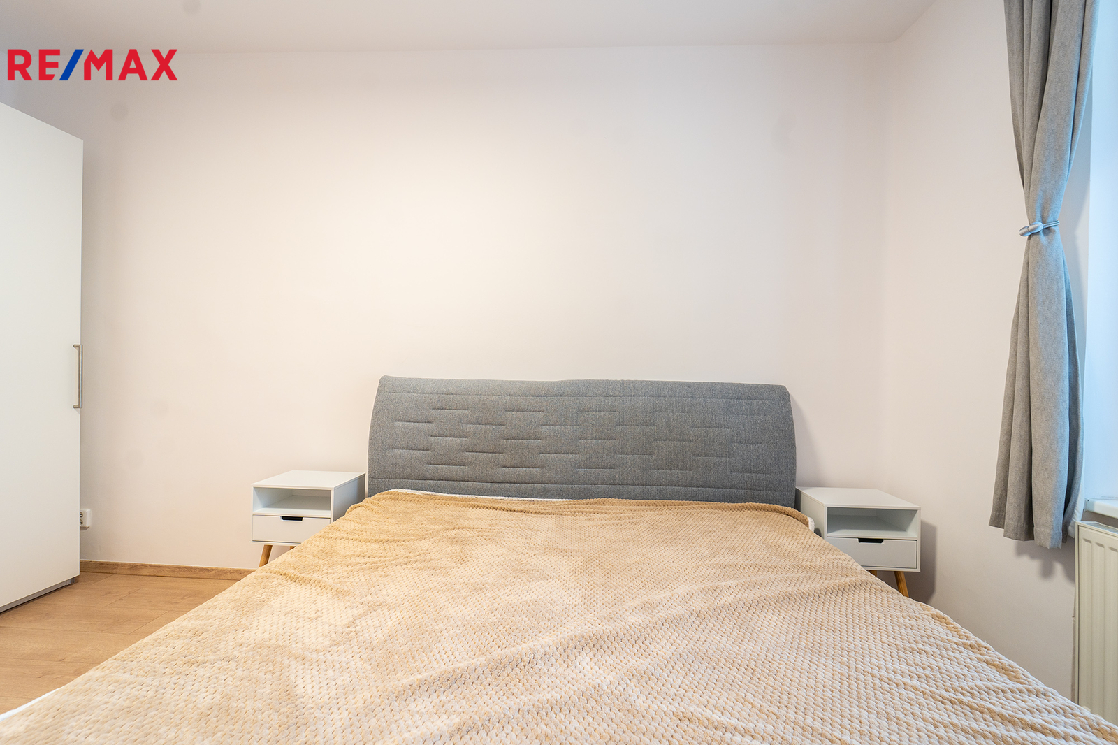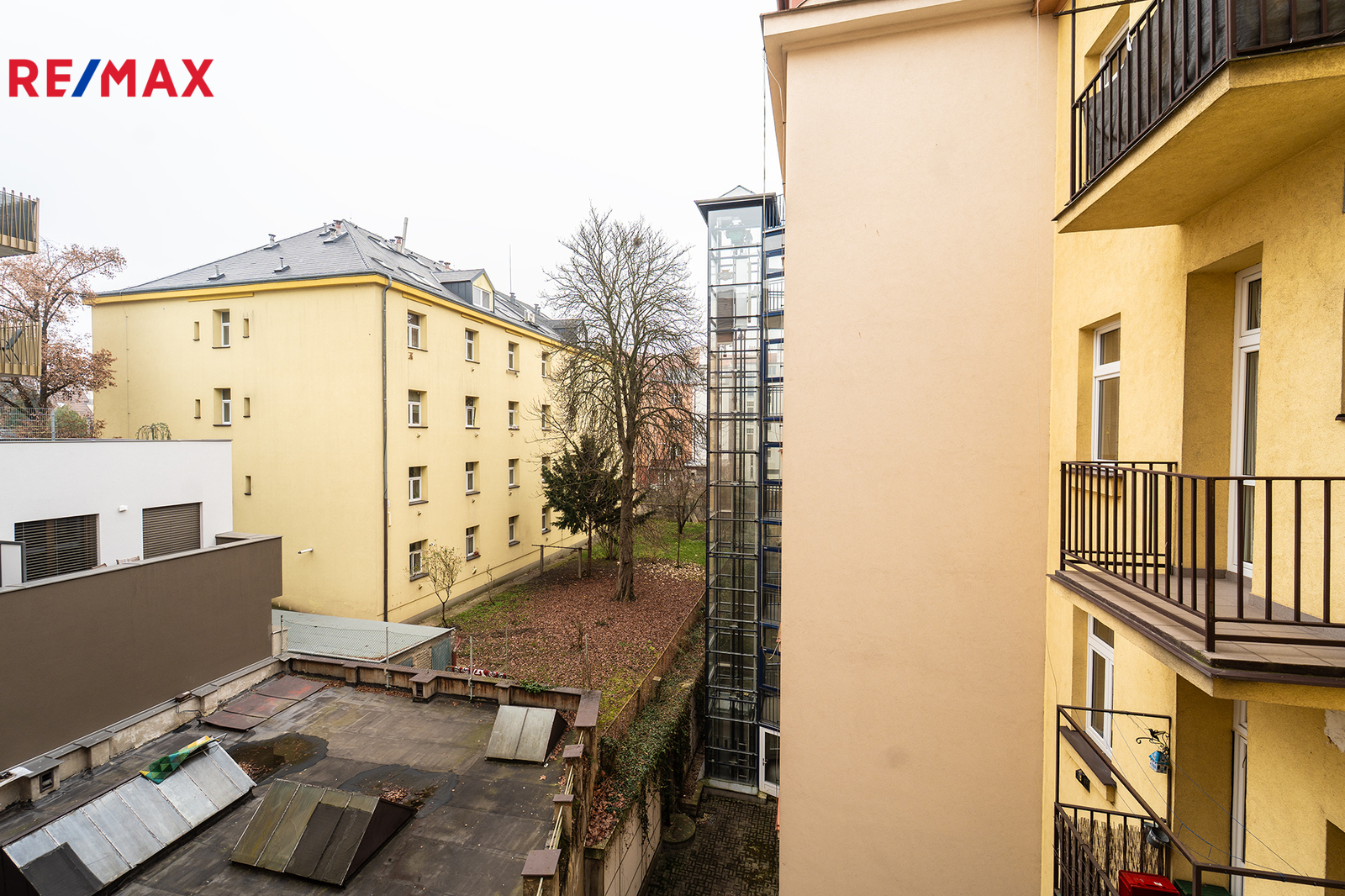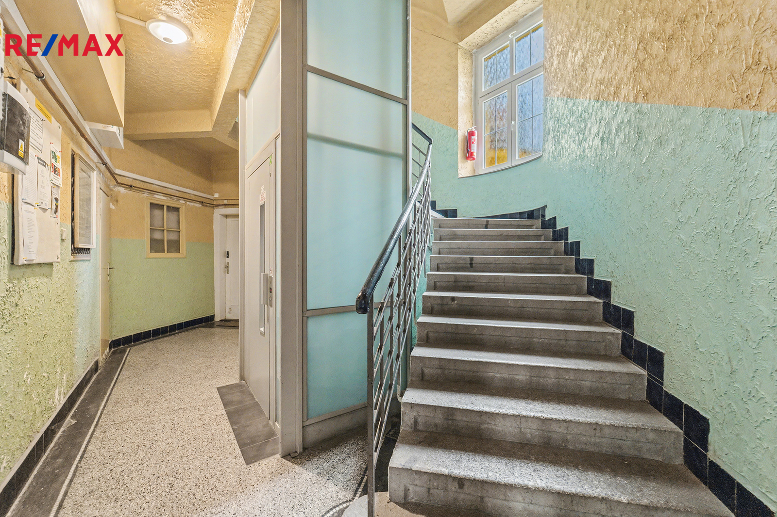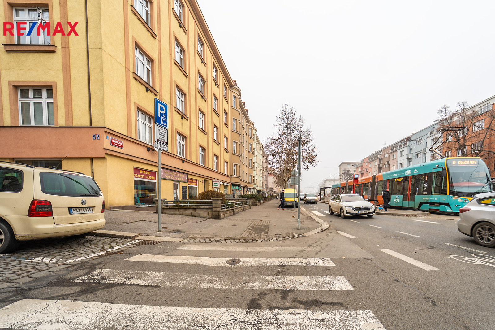 Dispoziční řešení: Kuchyň, obývací pokoj, ložnice, koupelna, samostatné WC. V kuchyni je vstup na menší balkon, který je orientovaný do vnitrobloku. V ložnici a obývacím pokoji jsou zvýšené stropy 285-292cm. K bytu náleží nadstandardně veliký sklep, který bude k dispozici na jaře, jelikož sklepní prostory budou procházet rekonstrukcí. Rovněž je možné využít společnou kočárkárnu/kolárnu umístěnou ve vnitrobloku. Obývací pokoj je orientován do ulice Strážní (klidná jednosměrná ulice), ložnice a kuchyň jsou orientovány do tichého vnitrobloku.
