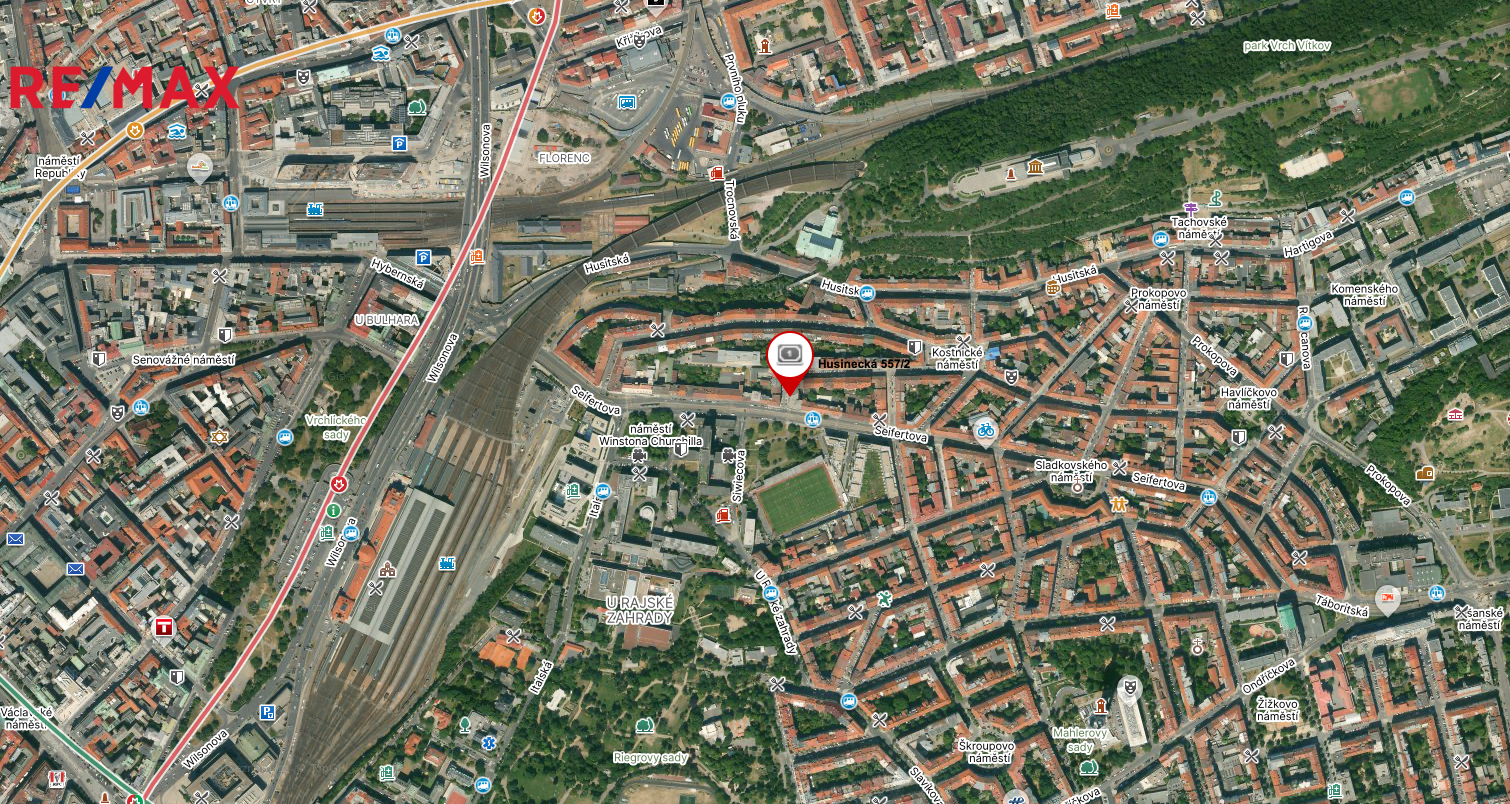 Výborná občanská vybavenost v okolí – parky Riegrovy sady, Rajská zahrada, vrch Vítkov, cyklostezka a park Parukářka nabízí sportovní i kulturní vyžití.