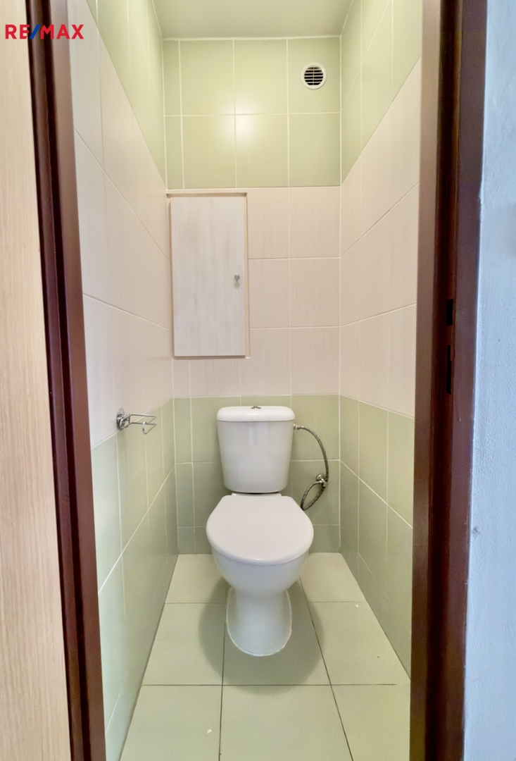 Byt má praktické a funkční dispoziční řešení, vhodné pro jednotlivce nebo pár. Koupelna a WC po rekonstrukci.