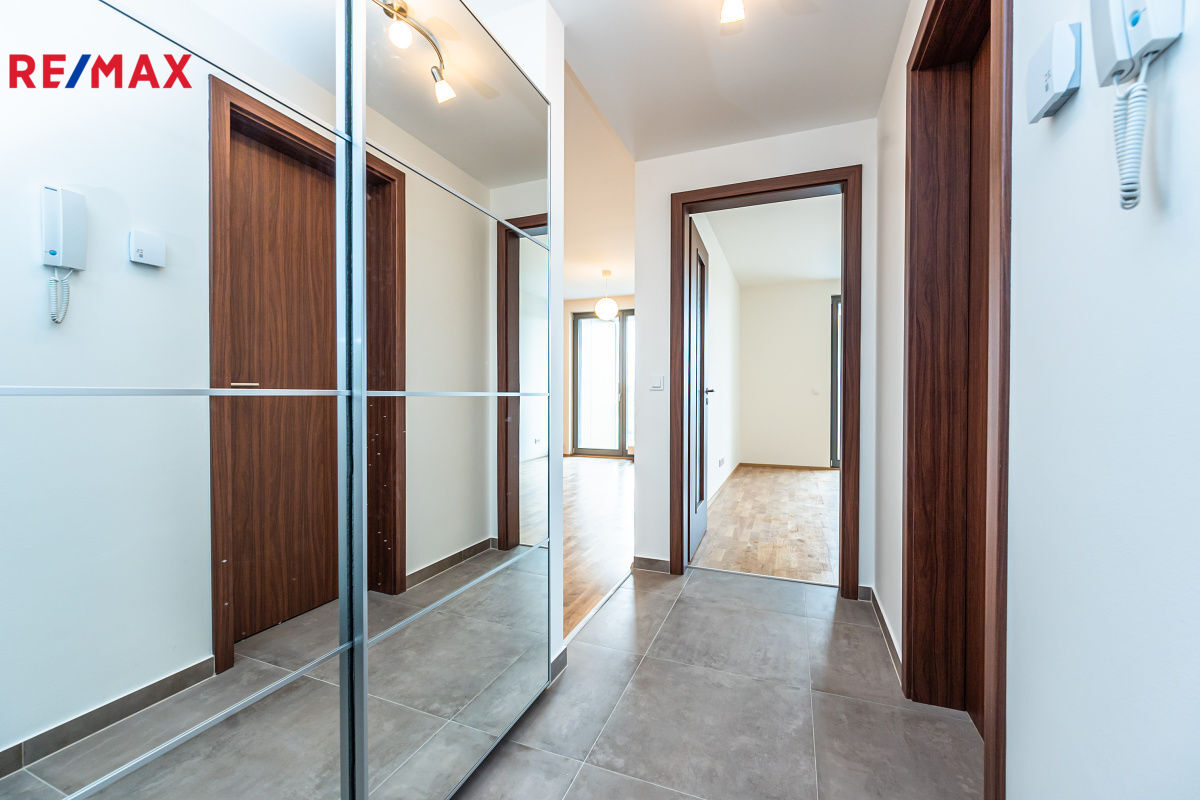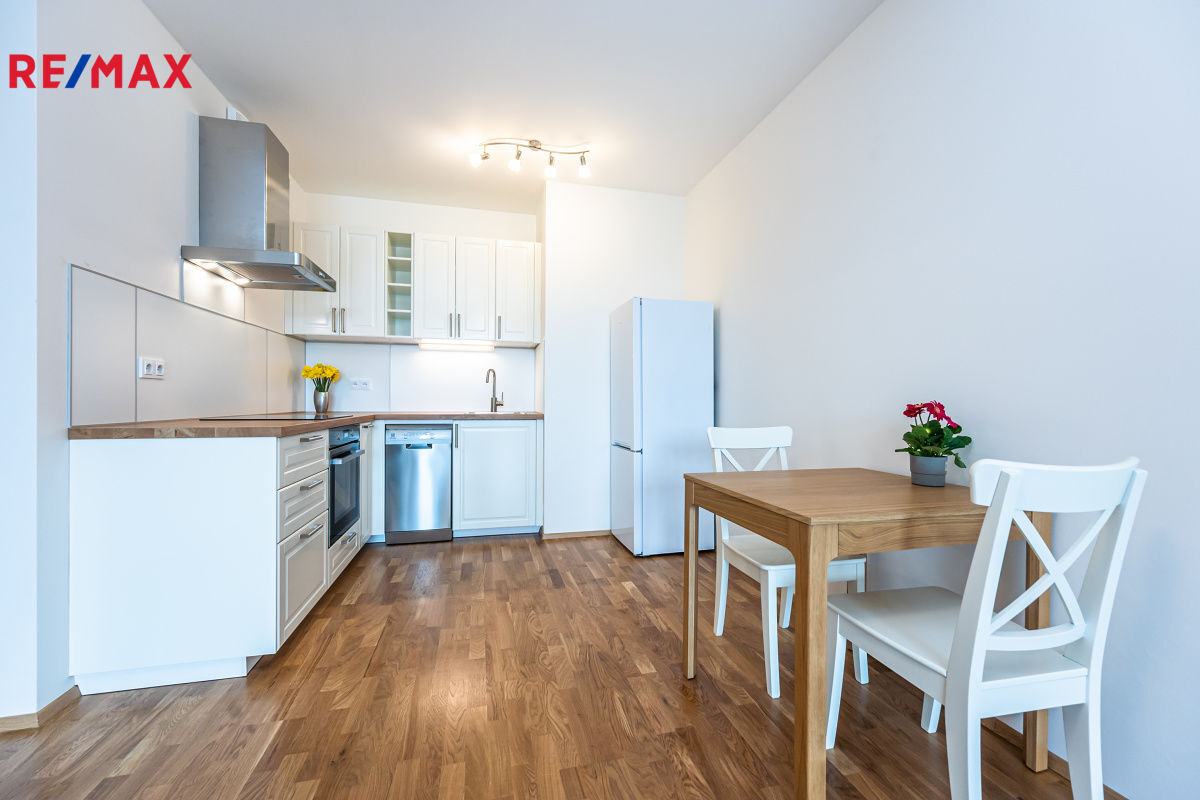 V zastoupení majitele nabízíme k dlouhodobému pronájmu světlý a prostorný byt 2kk 56m2 + 15,5m2 lodžie v novém developerském projektu Zahálka ve velmi žádané lokalitě v Praze 4 - Modřanech. Jednotka se sestává z vstupní chodby (6m2) s šatní skříní. Obývací pokoj s kuchyňským koutem měří 28 m2. Linka je vybavena kvalitními vestavnými spotřebiči (myčka, chladnička, digestoř, varná deska, trouba). Z ložnice (15m2) se stejně jako z obývacího pokoje se vchází na rozlehlou terasu (15,5 m2), na které je umístěna komora. V koupelně se nachází vana, umyvadlo, WC a pračka Whirlpool. Podlahy jsou plovoucí, bezpečnostní vstupní dveře, rekuperace. V oknech jsou nainstalovány vnitřní žaluzie. Byt se nabízí nezařízen (viz. fotodokumentace) a je k dispozici od poloviny května.