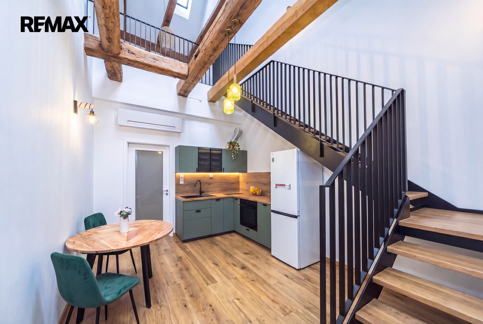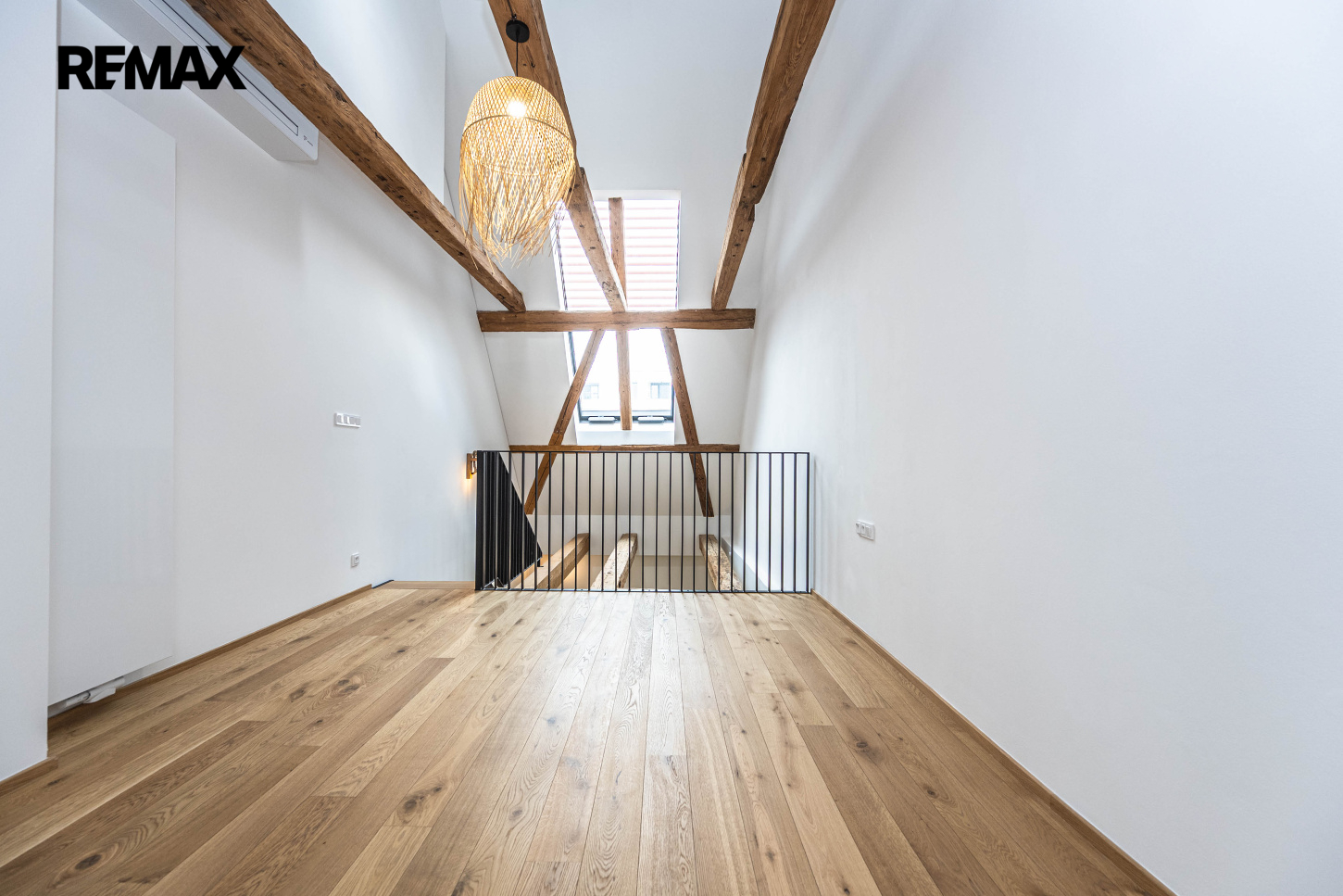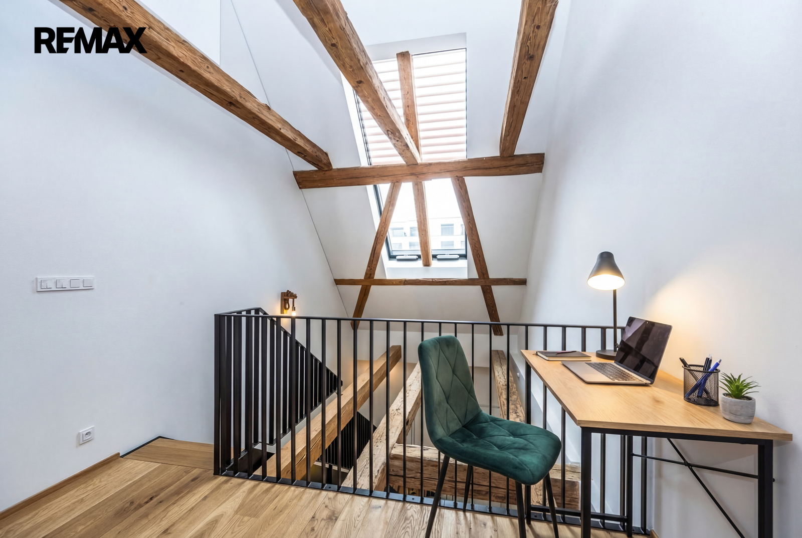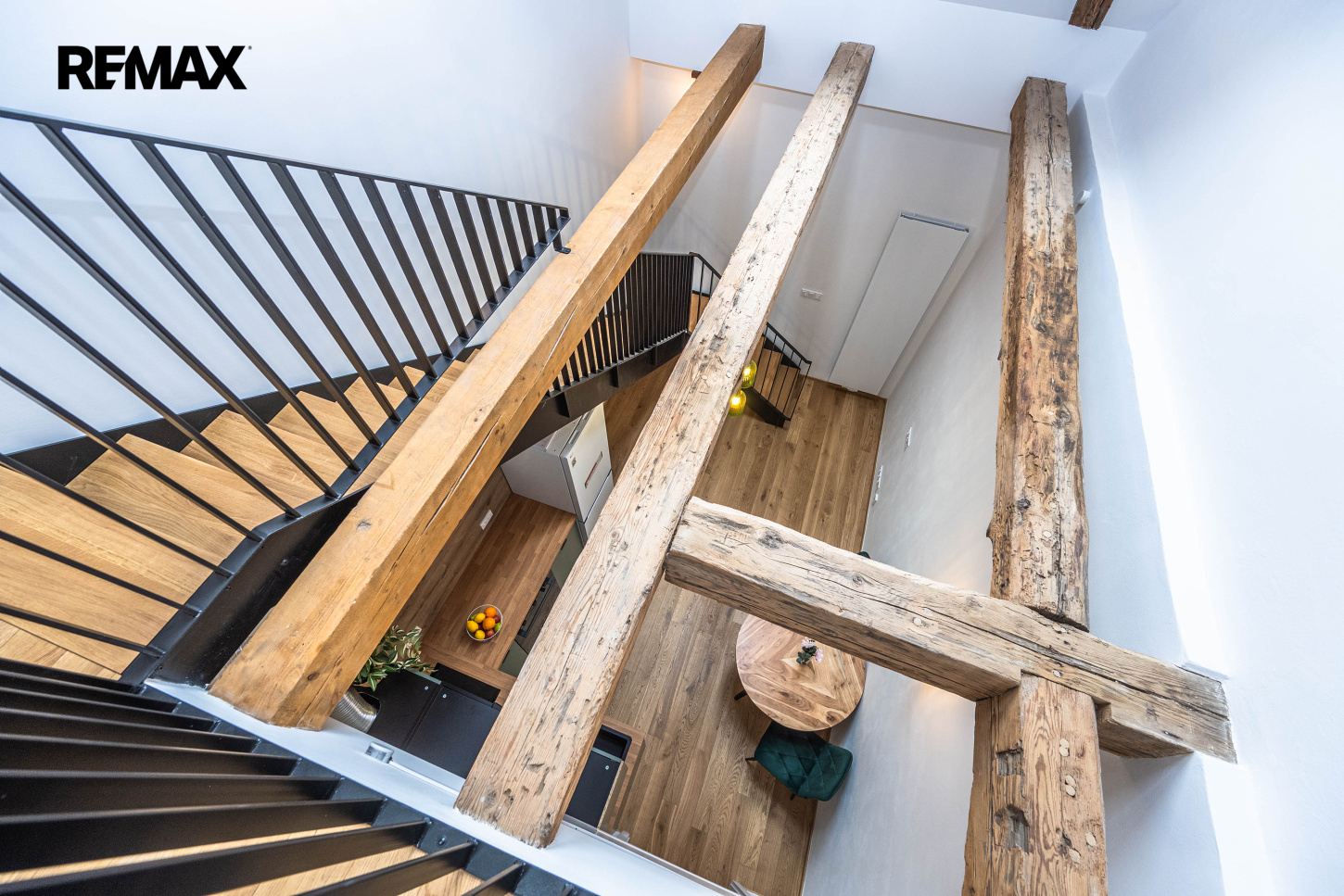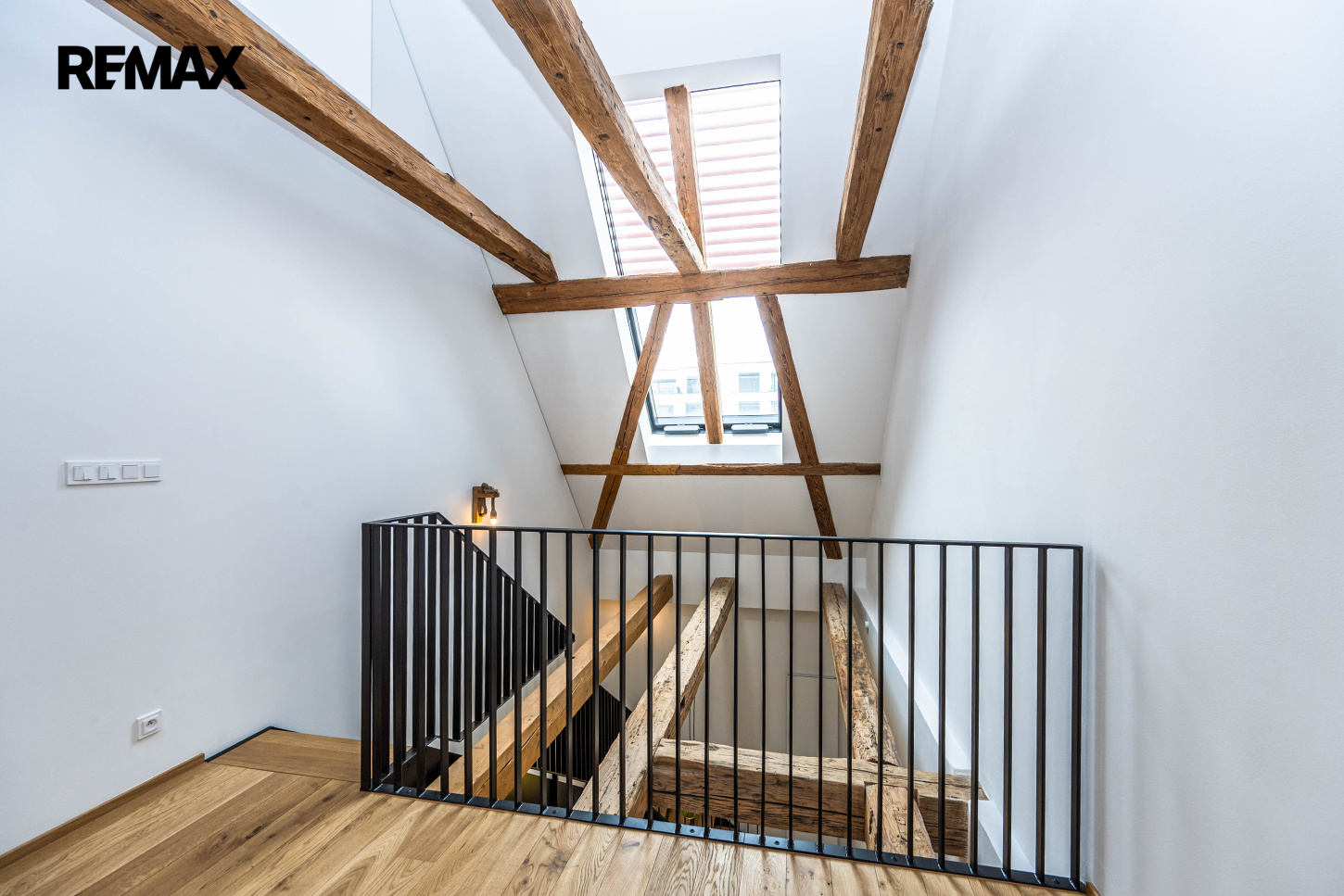 Dominantou interiéru je mimořádně vysoký strop, který dosahuje v nejvyšším místě téměř 10 m, a také zachovalé původní trámy, které podtrhují jedinečnou atmosféru prostoru. Podlahová plocha bytu činí 43,4 m², užitná plocha 42 m². Součástí bytu je také sklep o velikosti 2,6 m².