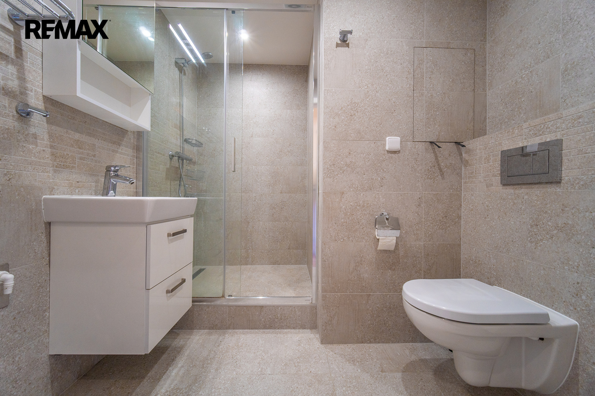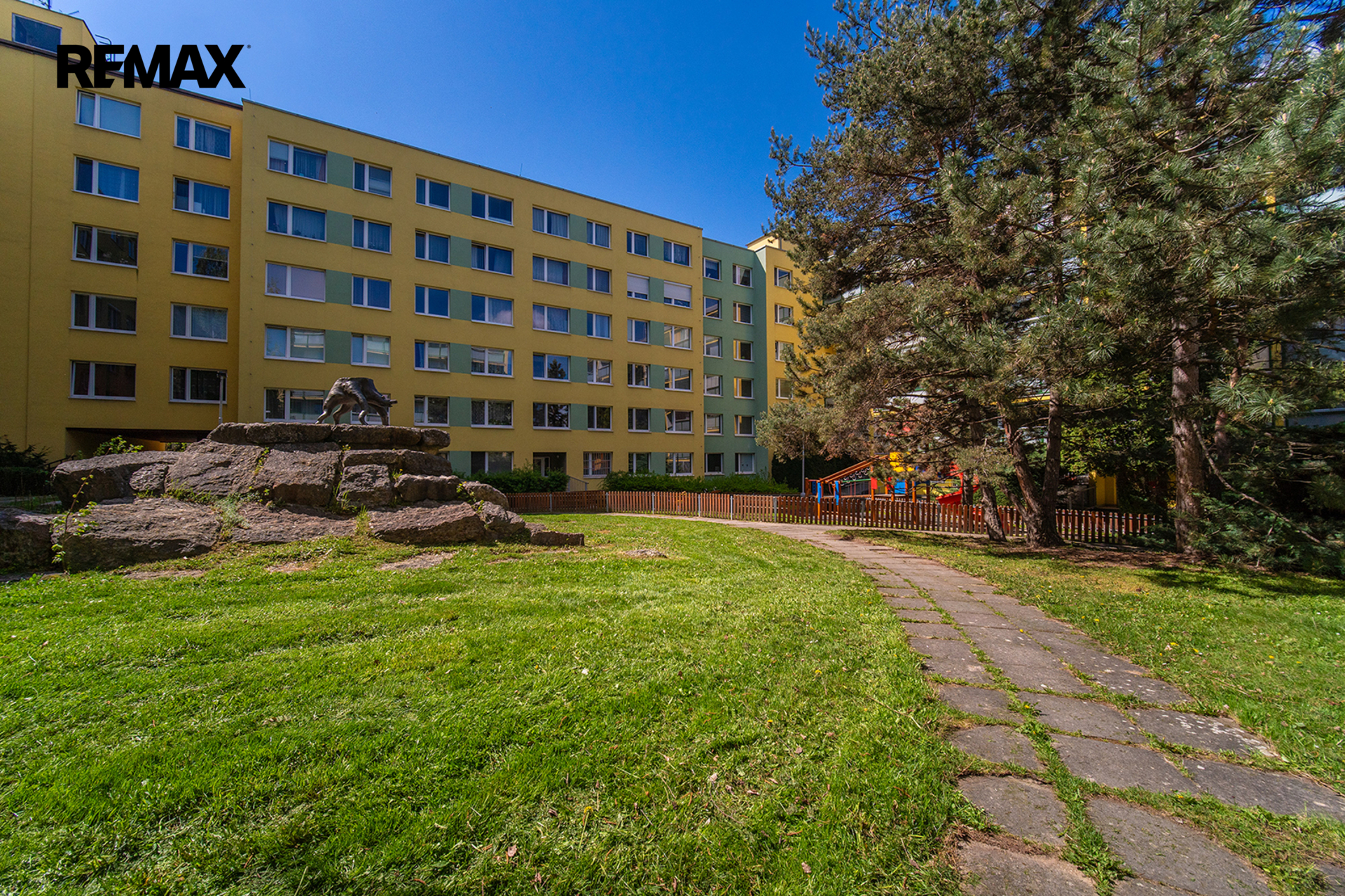 Tento překrásný byt po kompletní rekonstrukci najdete v Blatenské ulici, v klidné čtvrti plné zeleně, hrišť a hlavně(!) - jen pár minut chůze od metra Roztyly nebo Chodov. Do 2. patra (3. NP) vás pochopitelně odveze moderní výtah. Celý dům je perfektně udržován, je znát, že v něm bydlí lidé, kterým na něm záleží.