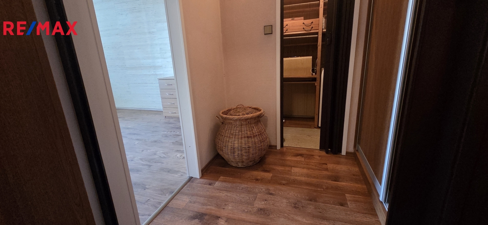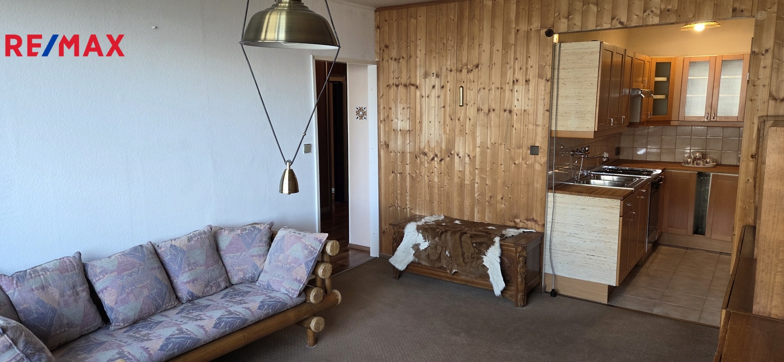 Byt nabízí kompletně zařízený kuchyňský kout včetně spotřebičů a další tři pokoje s orientací na východ s pěkným výhledem do zeleně. Dětský pokoj má k dispozici zasklenou lodžii. Prostorná chodba nabízí dvě vestavěné skříně. Koupelna a toaleta jsou odděleny , v koupelně je masážní vana ( pračka k dispozici). Součástí bytu je praktická prostorná komora. Do bytu je přivedeno internetové připojení. K bytu náleží sklepní kóje v suterénu domu.