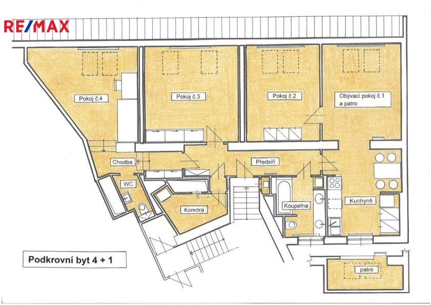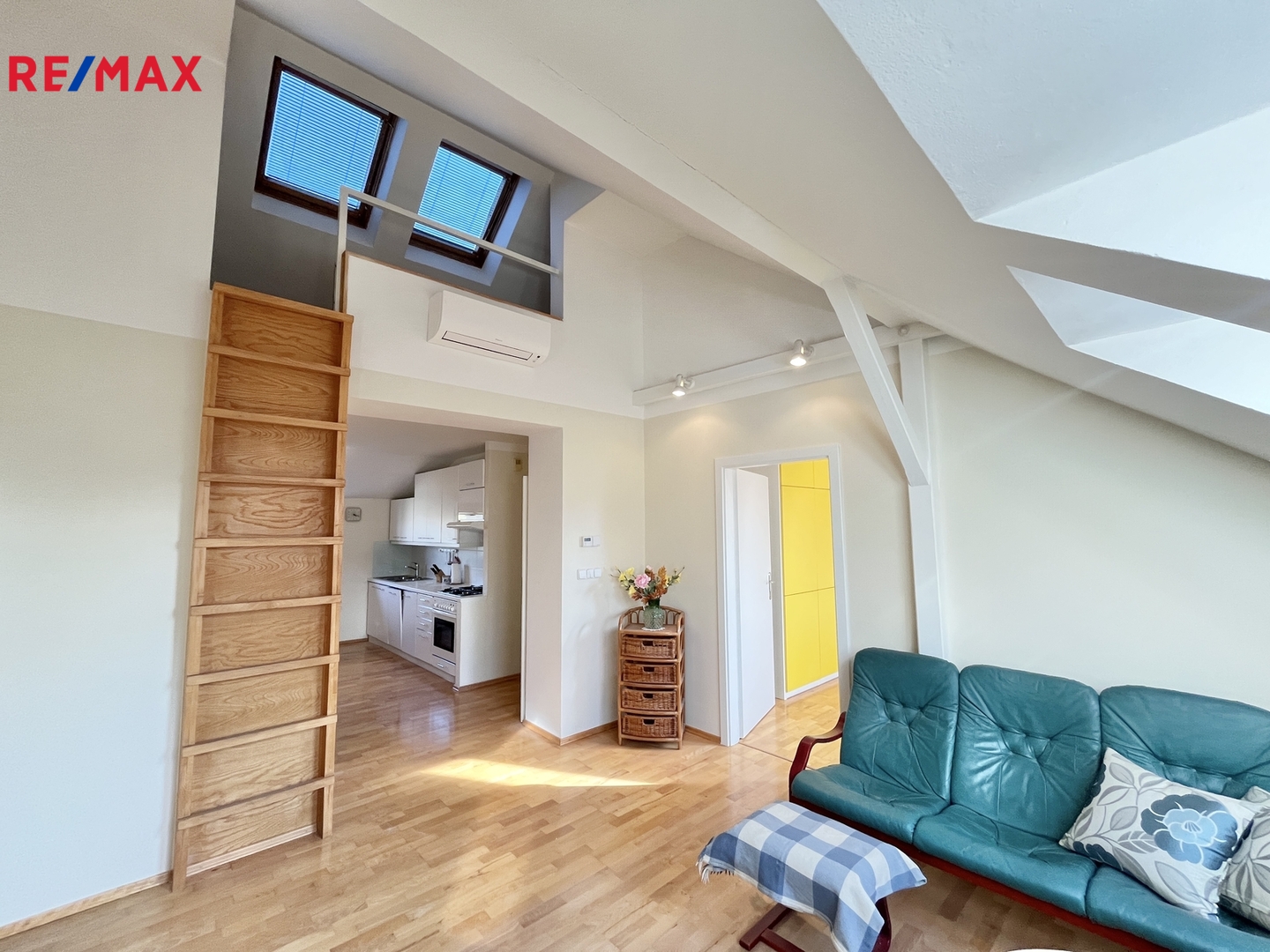 Nabízíme exkluzivně pronájem podkrovního bytu 4+1 po rekonstrukci, umístěný ve 4. podlaží budovy na ulici Antala Staška v Krči.