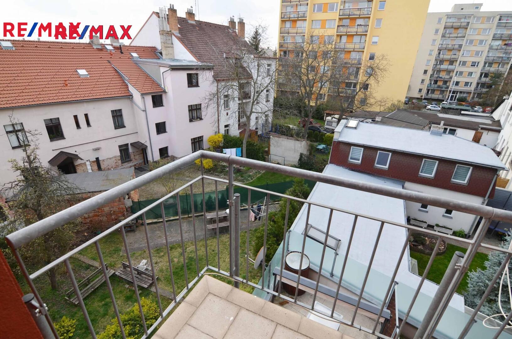 Z této místnosti je vstup na balkon orientovaný do klidného vnitrobloku.