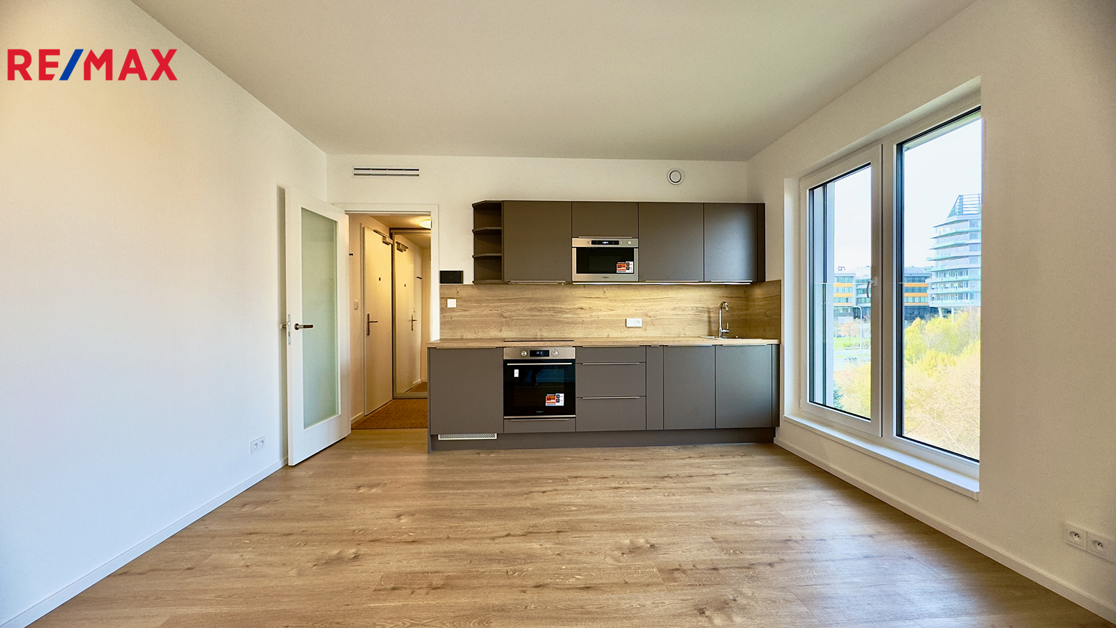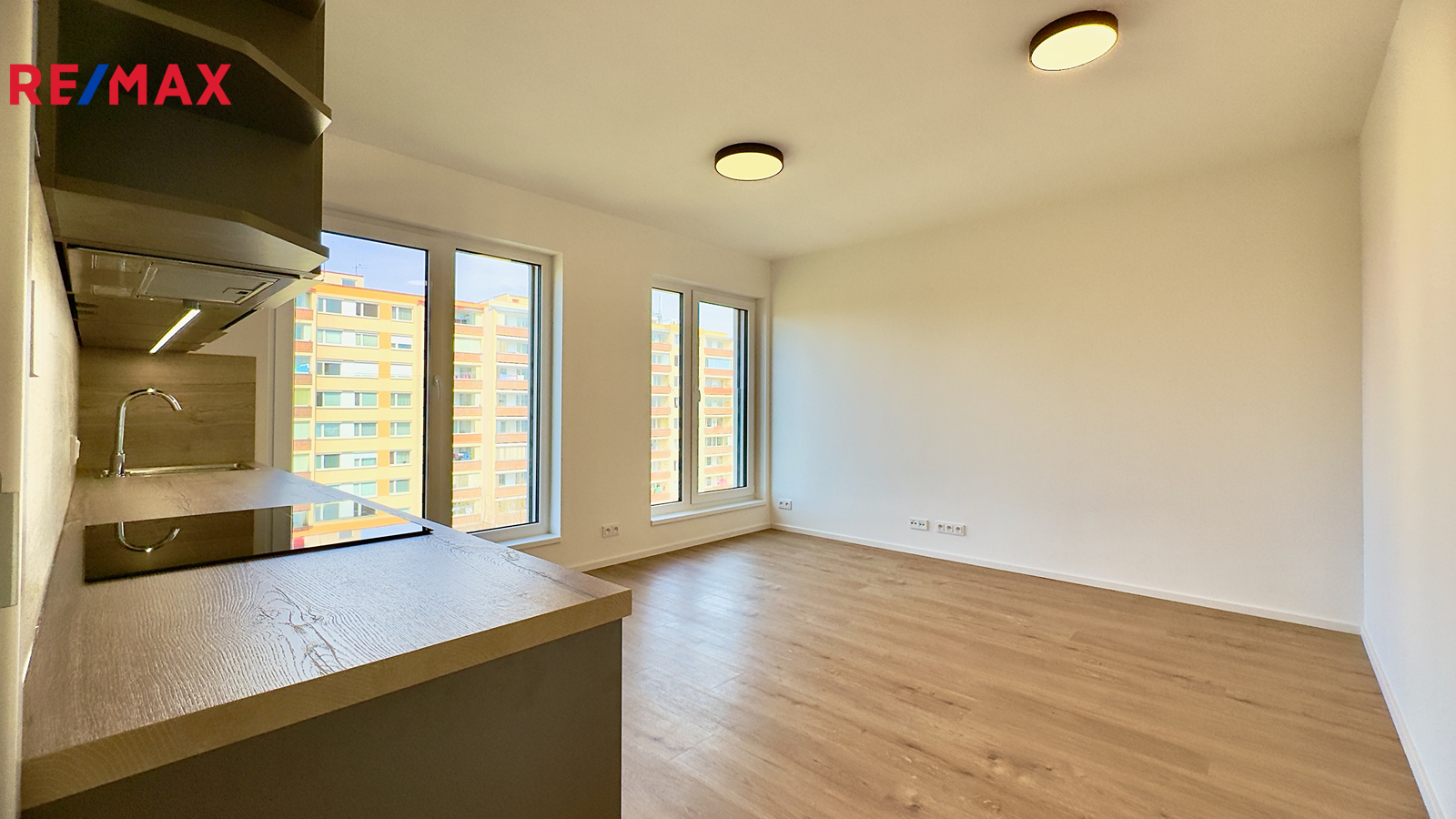 Nabízíme k pronájmu moderní byt o dispozici 1 + kk v žádané lokalitě na ulici Hábova, v části obce Stodůlky, Praha 5. Jedná se o byt v šestém podlaží krásné novostavby, nabízející krásný výhled do okolí díky francouzským oknům.