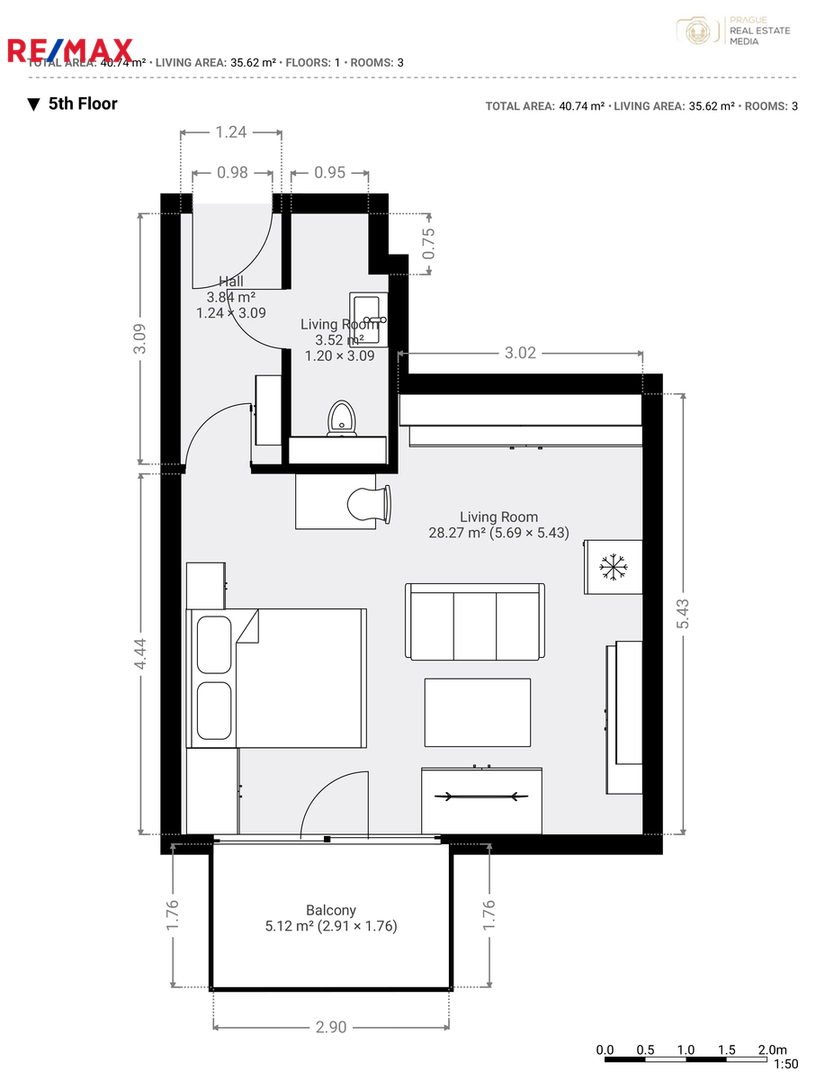 Dispozice bytu je promyšlená do posledního detailu. Vstupní předsíň, obývací prostor s kuchyňským koutem, koupelna se sprchovým koutem. Součástí bytu je útulný balkon orientovaný na jihozápad, který nabízí příjemné posezení. Ráno si zde můžete vychutnat kávu, večer sklenku vína po práci. Je to prostor, kde můžete odpočívat, číst nebo si jen na chvíli vydechnout od ruchu města.