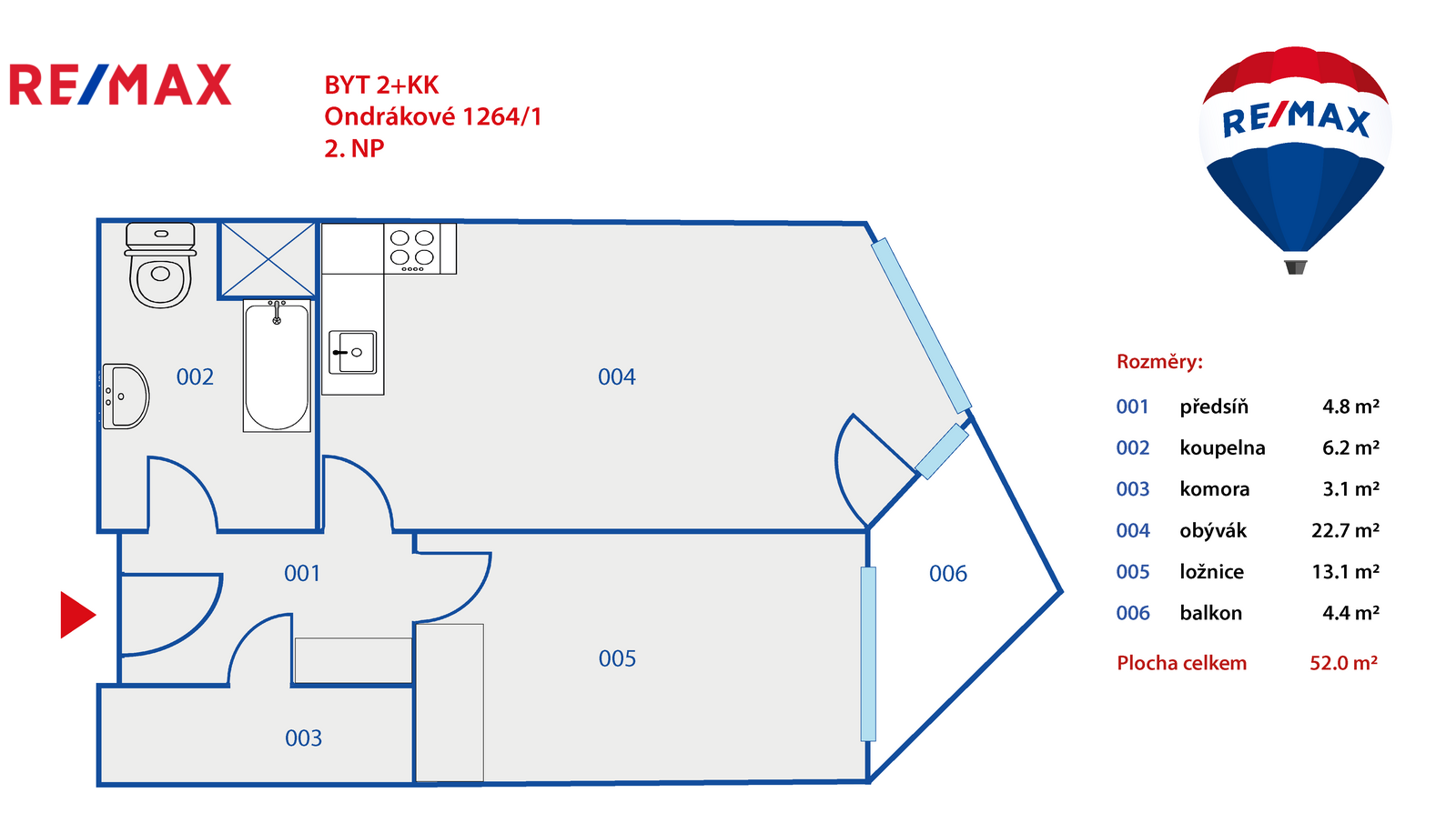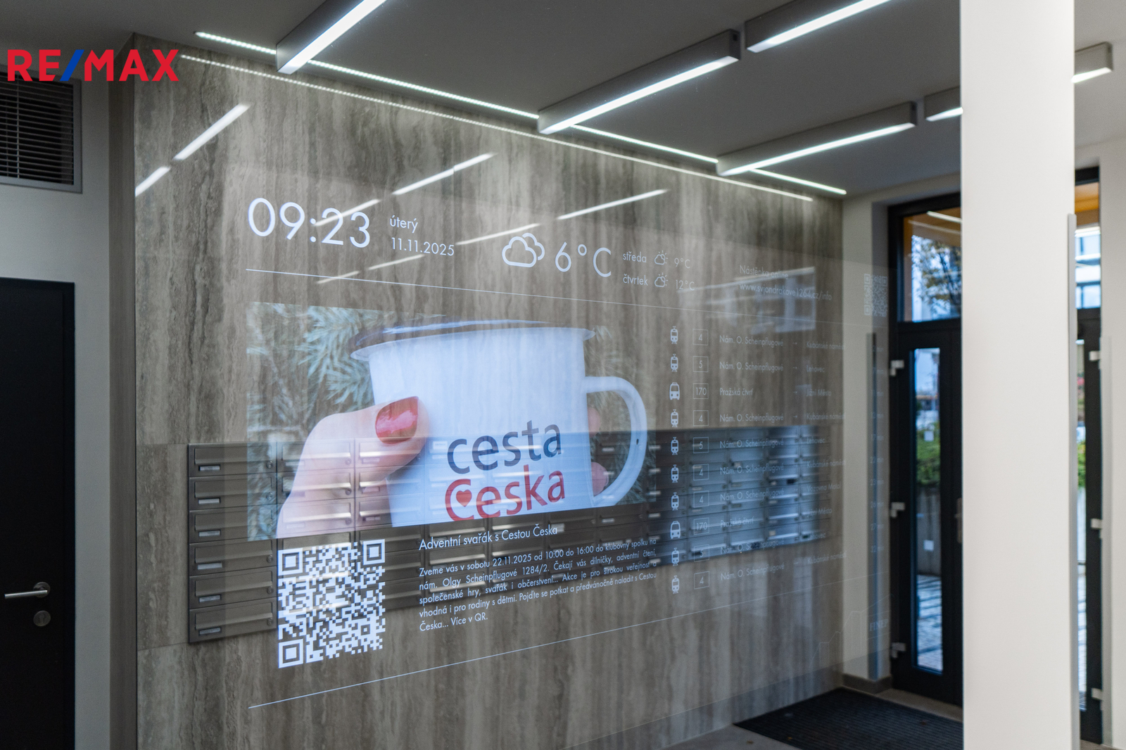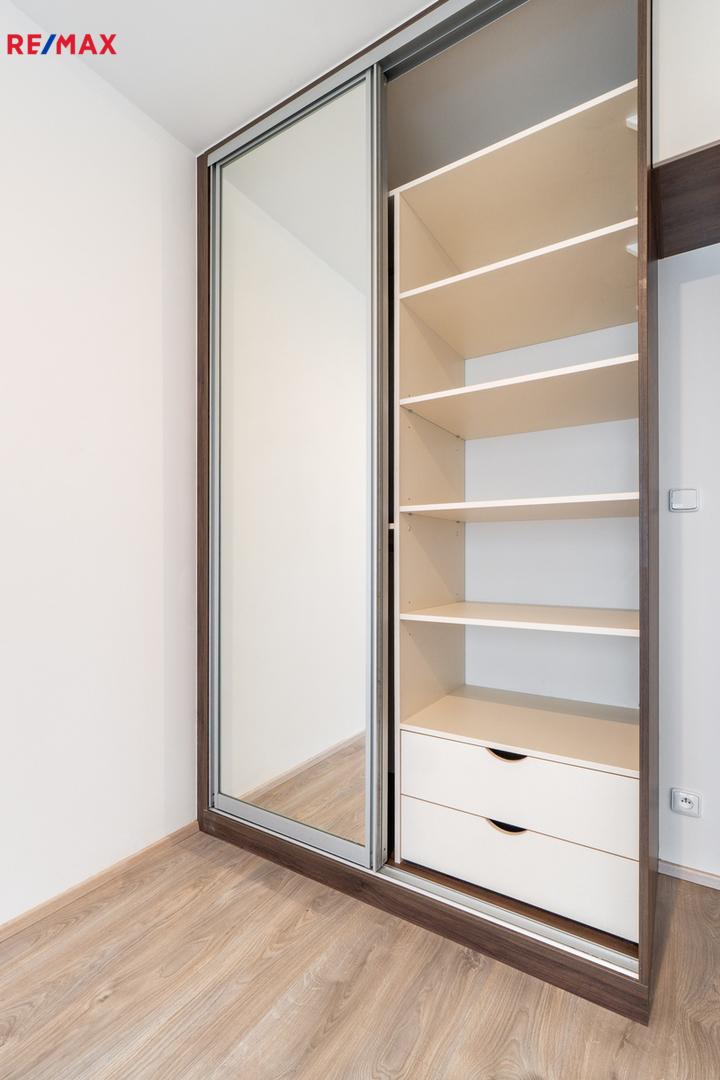 Byt se nachází ve druhém patře novostavby s výtahem z roku 2020. Dispozici bytu tvoří obývací pokoj s kuchyňskou linkou, která je vybavená spotřebiči (el. varná deska, el. trouba, kombinovaná lednice, myčka, digestoř). Z obývacího pokoje je vstup na balkon, ideální místo pro odpočinek. Dále je k dispozici ložnice s velkou vestavěnou skříní, předsíň a koupelna s toaletou. Výhodou je také prostorná komora přímo v bytě.