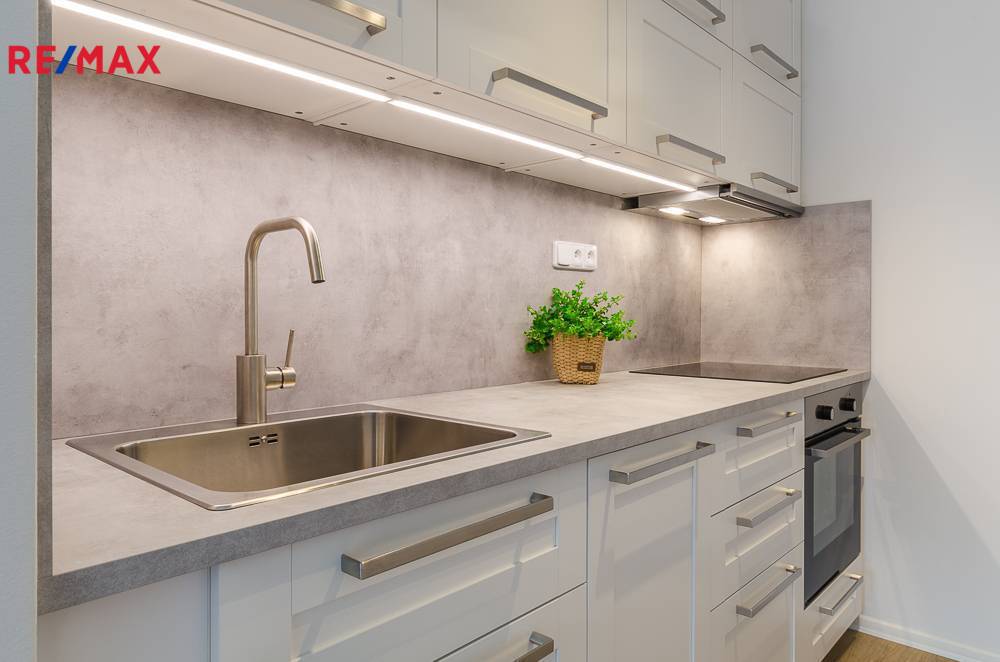 + kuchyňskou linkou se všemi spotřebiči pro komfortní vaření (varná deska, trouba, digestoř, myčka nádobí a samostatně stojící lednice)