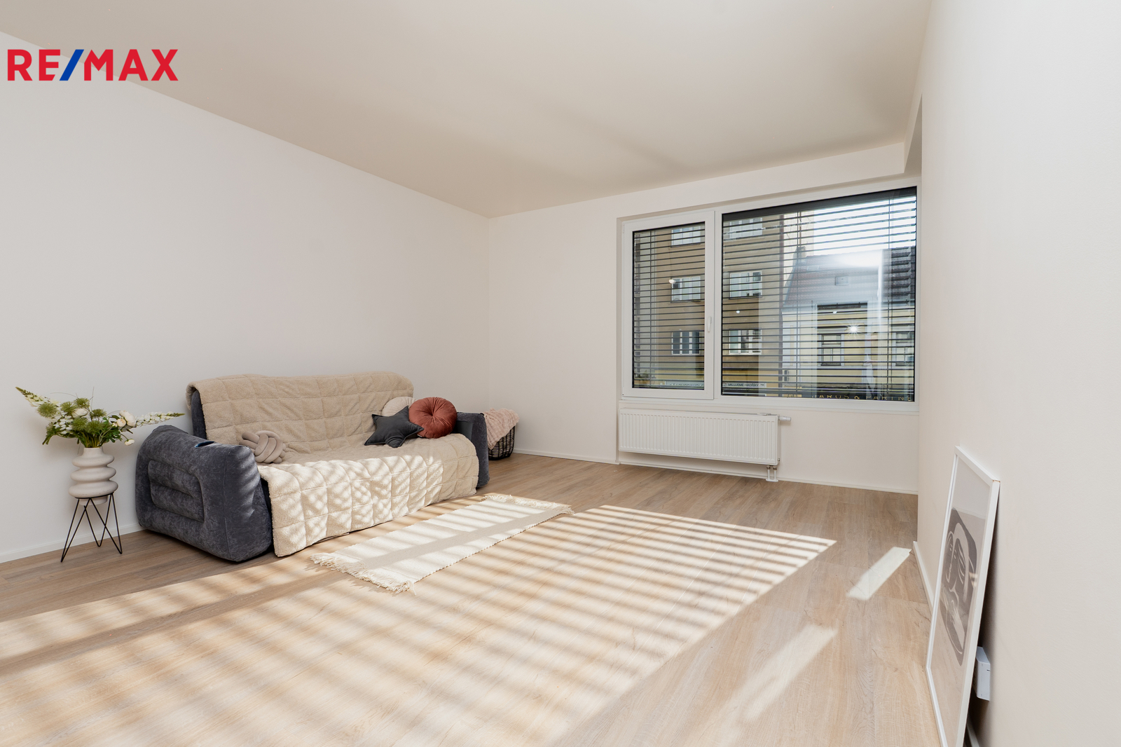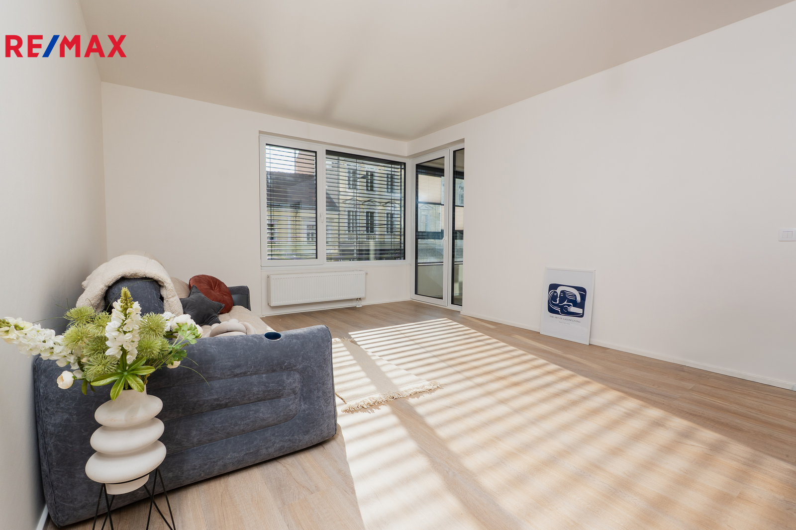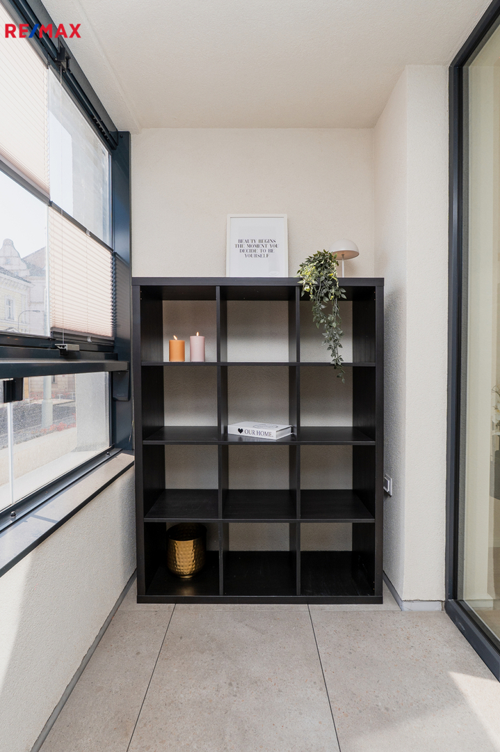 Trojskla zaručují v bytě naprostý klid, venkovní žaluzie spolu s rekuperací napomáhají udržovat příjemnou teplotu v létě a zároveň poskytují větší soukromí.