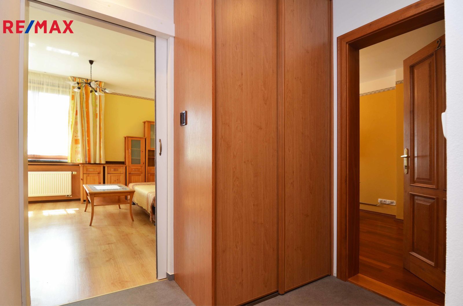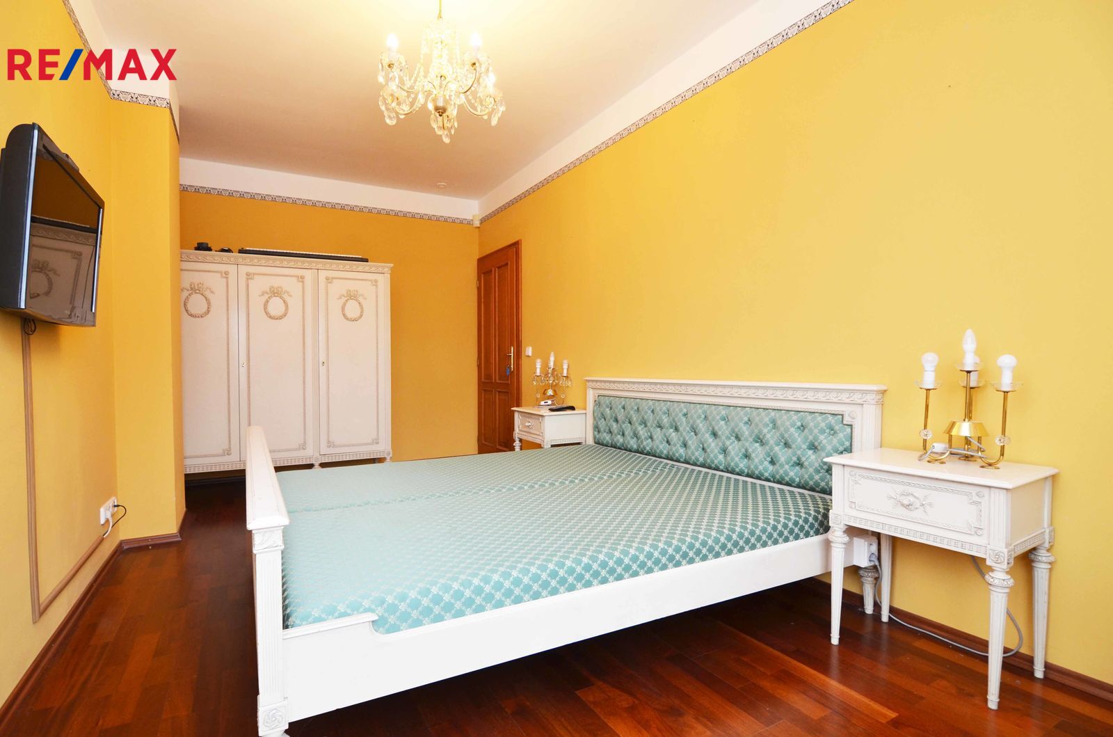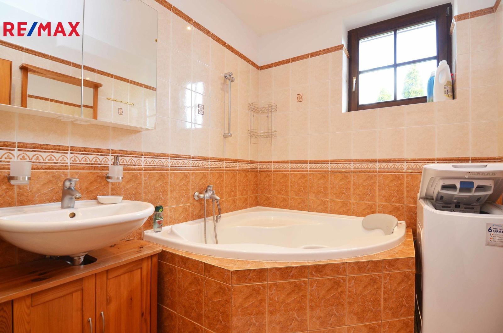 Dále zde nalezneme prostornou, stylově zařízenou ložnici, koupelnu s vanou, pračkou a umyvadlem. WC zvlášť. Předsíň s velkou vestavěnou skříní.