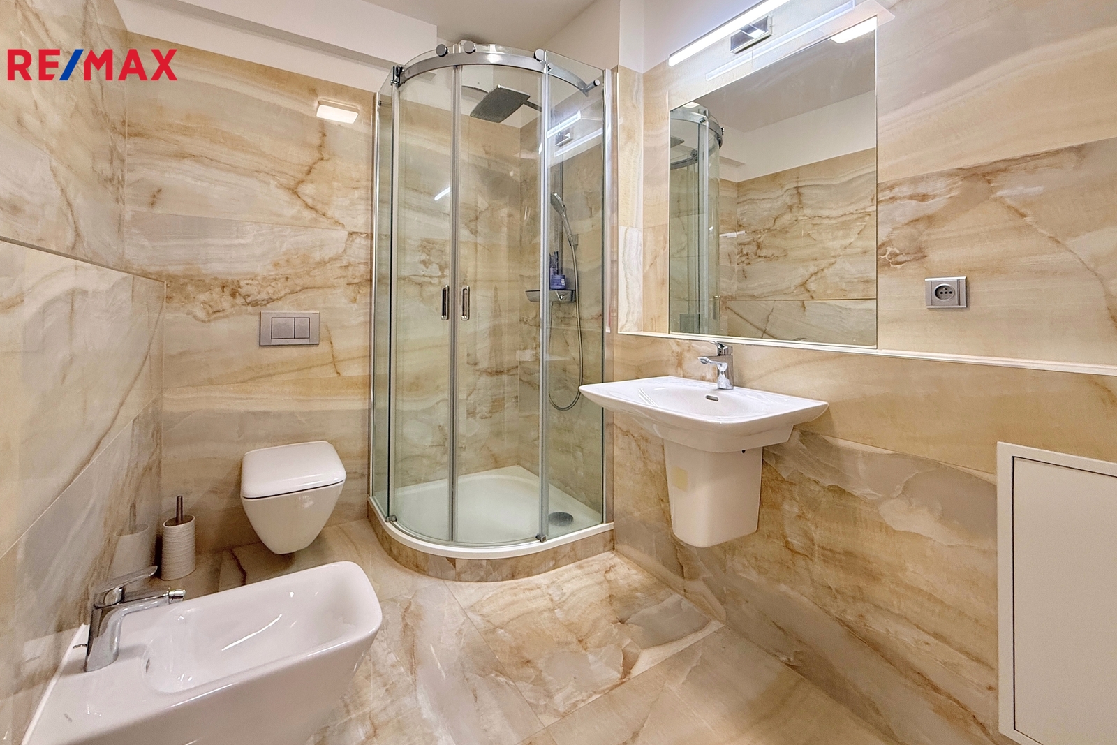 Byt je nabízen k pronájmu včetně kompletního vybavení. K dispozici je kuchyňská linka se spotřebiči, mezi které patří indukční varná deska, digestoř, myčka nádobí a lednice. Součástí vybavení je také jídelní stůl, židle, vestavěné úložné prostory, postel a osvětlení. Koupelna má zděné jádro a je vybavena sprchovým koutem, toaletou a bidetem, což zajišťuje pohodlné každodenní užívání.