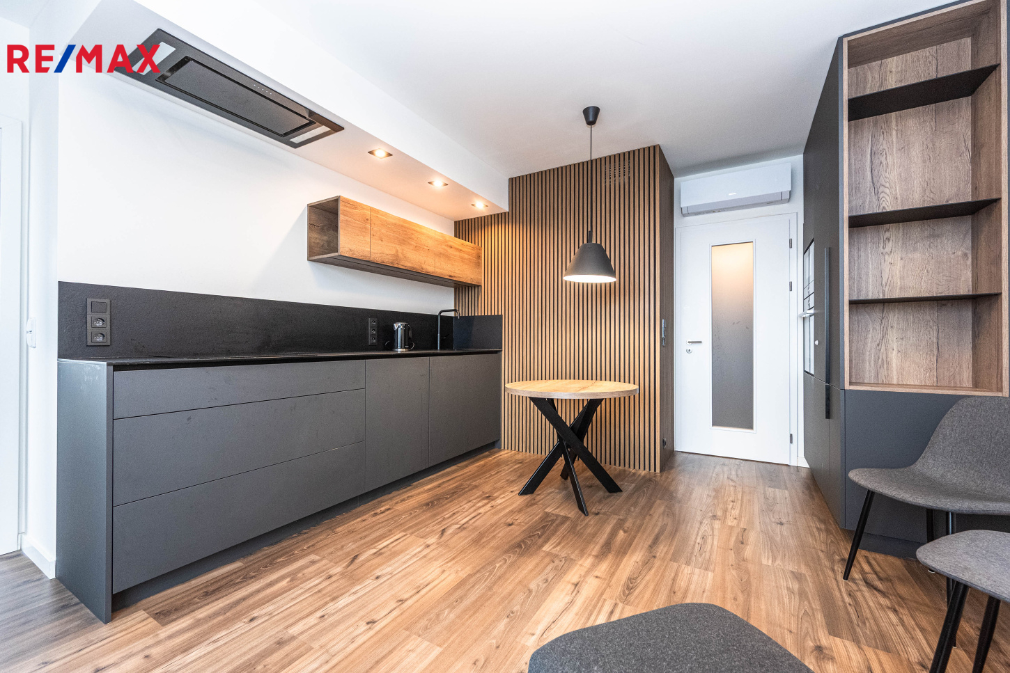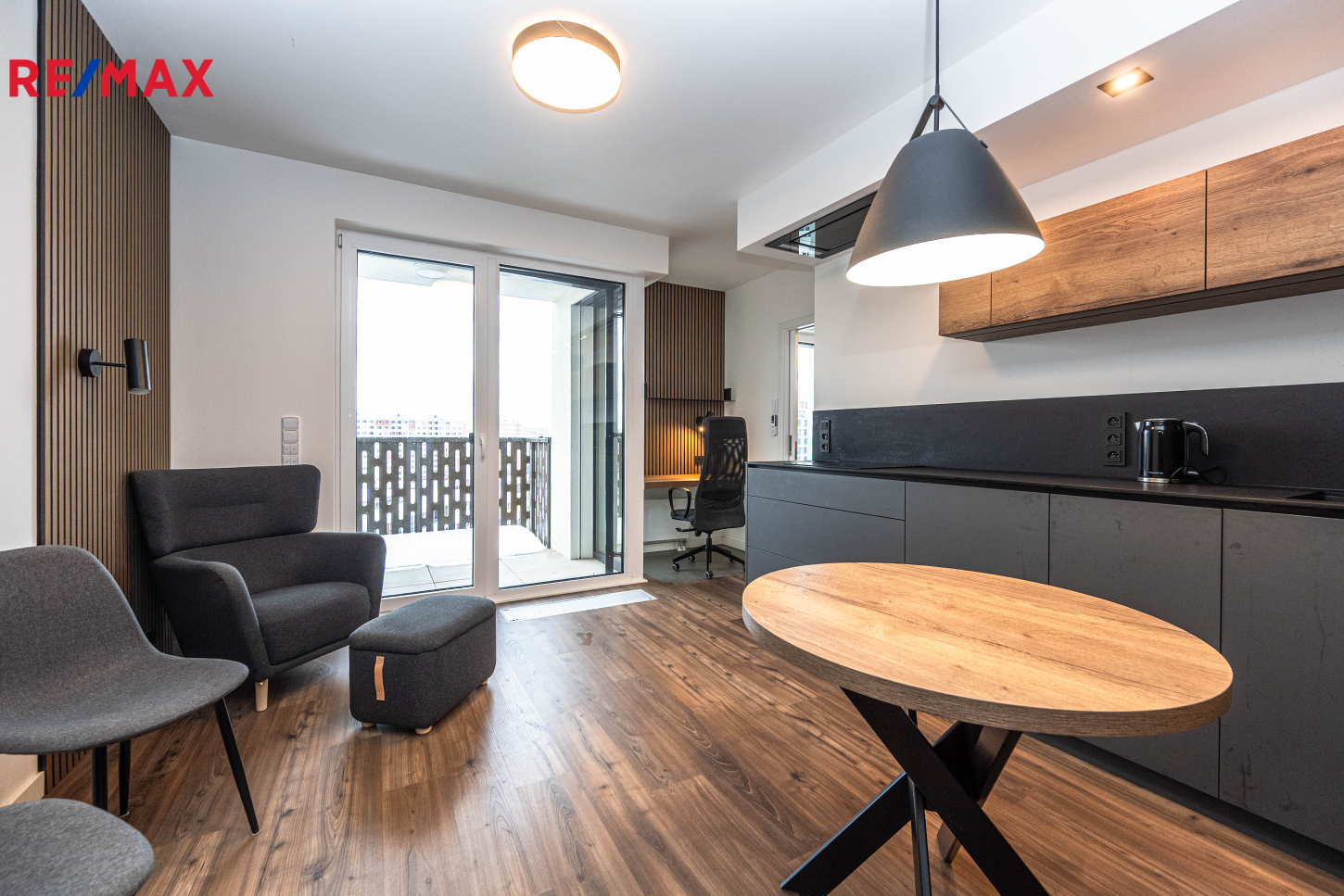 Byt se pronajímá částečně zařízený. Design bytu byl řešen ve spolupráci s architektem. Ve vstupní hale je skříňová sestava, v obývacím pokoji pracovní kout. Kuchyňská linka je zhotovena na míru a je vybavena vestavěnými spotřebiči: indukční varná deska, digestoř horkovzdušná trouba, mikrovlnná trouba, chladnička s mrazákem, myčka 45. V ložnici je postel. Koupelna má vanu a toaletu a disponuje sušičkou a pračkou.