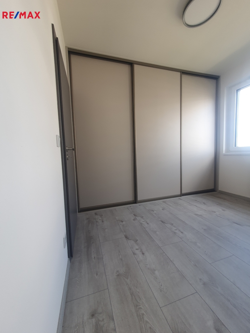 Nabízíme k pronájmu prostorný byt 3+kk o velikosti 63,5 m2 v novostavbě na adrese Fabiánové č.p. 1308/2, Praha 5 , Barrandov. Byt se nachází ve 4. nadzemním podlaží cihlového domu s dvěma výtahy (počet podlaží objektu 9). Jednopodlažní dispozice bytu zahrnuje obývací pokoj s kuchyňským koutem, dvě samostatné ložnice, komoru, koupelnu s vanou a WC; součástí je balkon 4,9 m2 s výhledem do Prokopského údolí, což zajišťuje kontakt s přírodou a příjemné výhledy. Orientace bytu: východ a sever. Vybavení je částečné: vybavená kuchyň (chladnička s mrazákem, myčka nádobí, horkovzdušná trouba, mikrovlnná trouba, varná deska s odsavačem), prostorné zabudované skříně v chodbě a ložnici, venkovní žaluzie. V koupelně a WC je dlažba, v ostatních místnostech vinylové podlahy. K bytu náleží garáž cca 15 m2 v suterénu domu. Byt včetně nadstandartního vybavení je nový dosud neobývaný. V okolí na Barrandově je veškerá občanská vybavenost, obchodní služby, zdravotní středisko a volnočasové vyžití včetně Aguaparku; dostupná doprava MHD, výborné spojení do centra tramvají. V případě zájmu o prohlídku nás neváhejte kontaktovat.