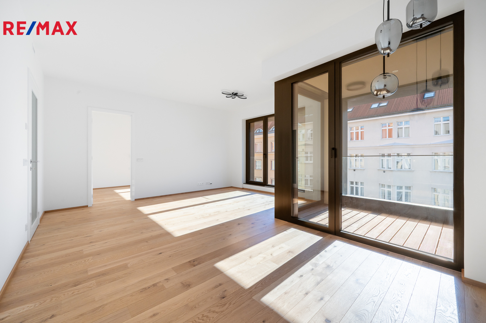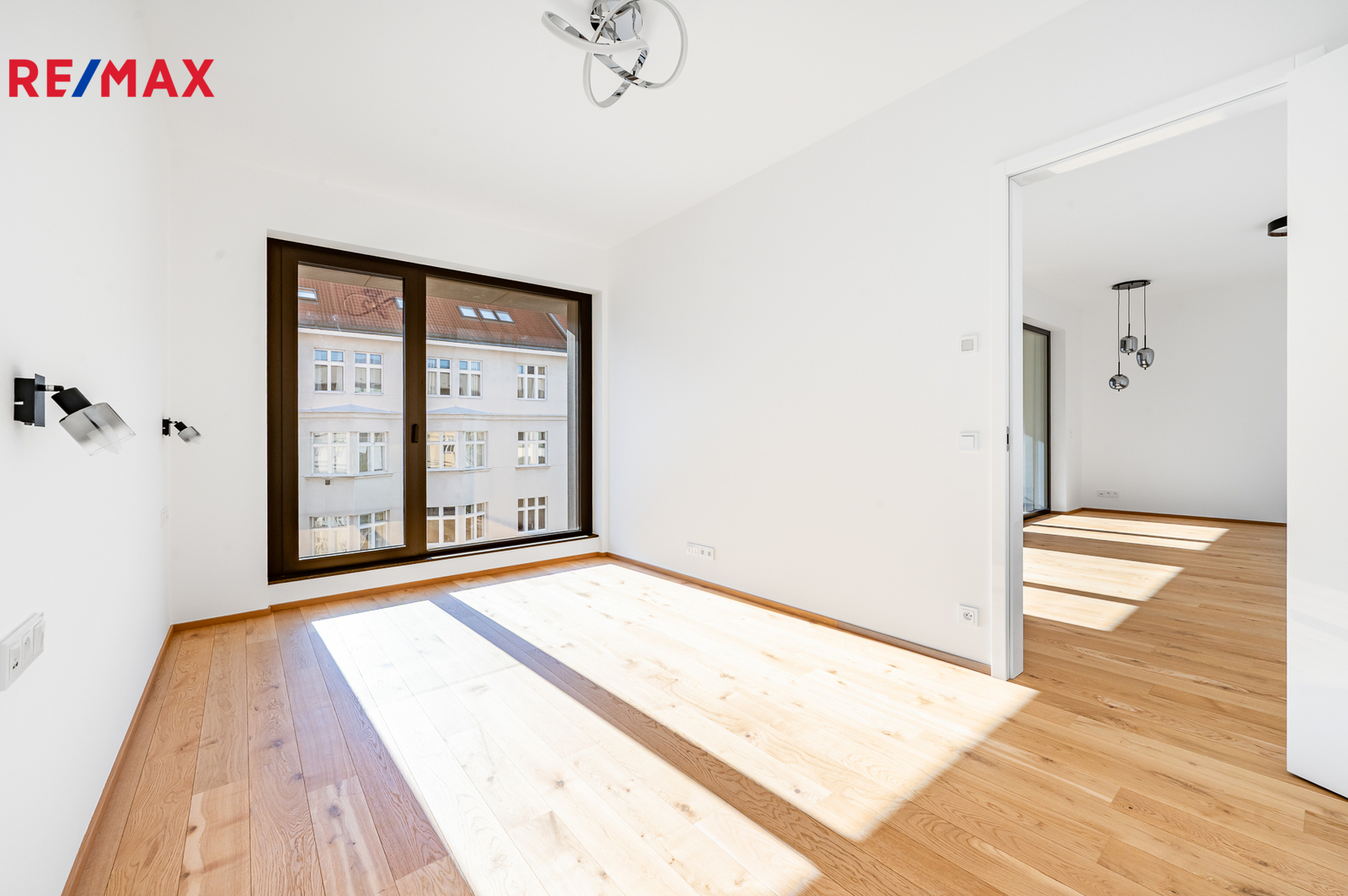 Fotografie obývacího pokoje a ložnice byly upraveny vizualizací pro lepší představu o finálním vzhledu interiéru. V bytě probíhá instalace kuchyňské linky a vestavěných skříní, jejichž dokončení je plánováno v průběhu příštího měsíce.