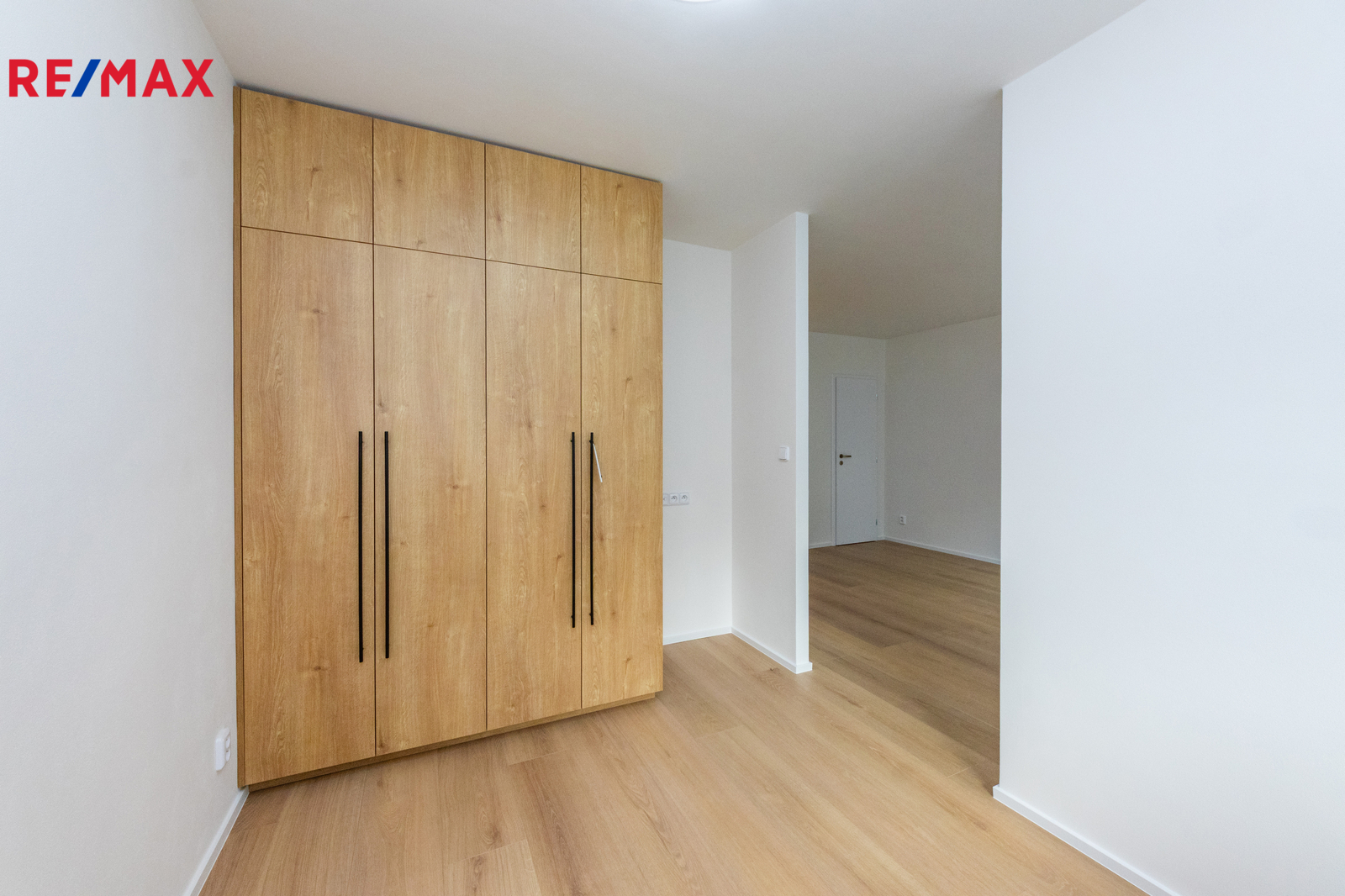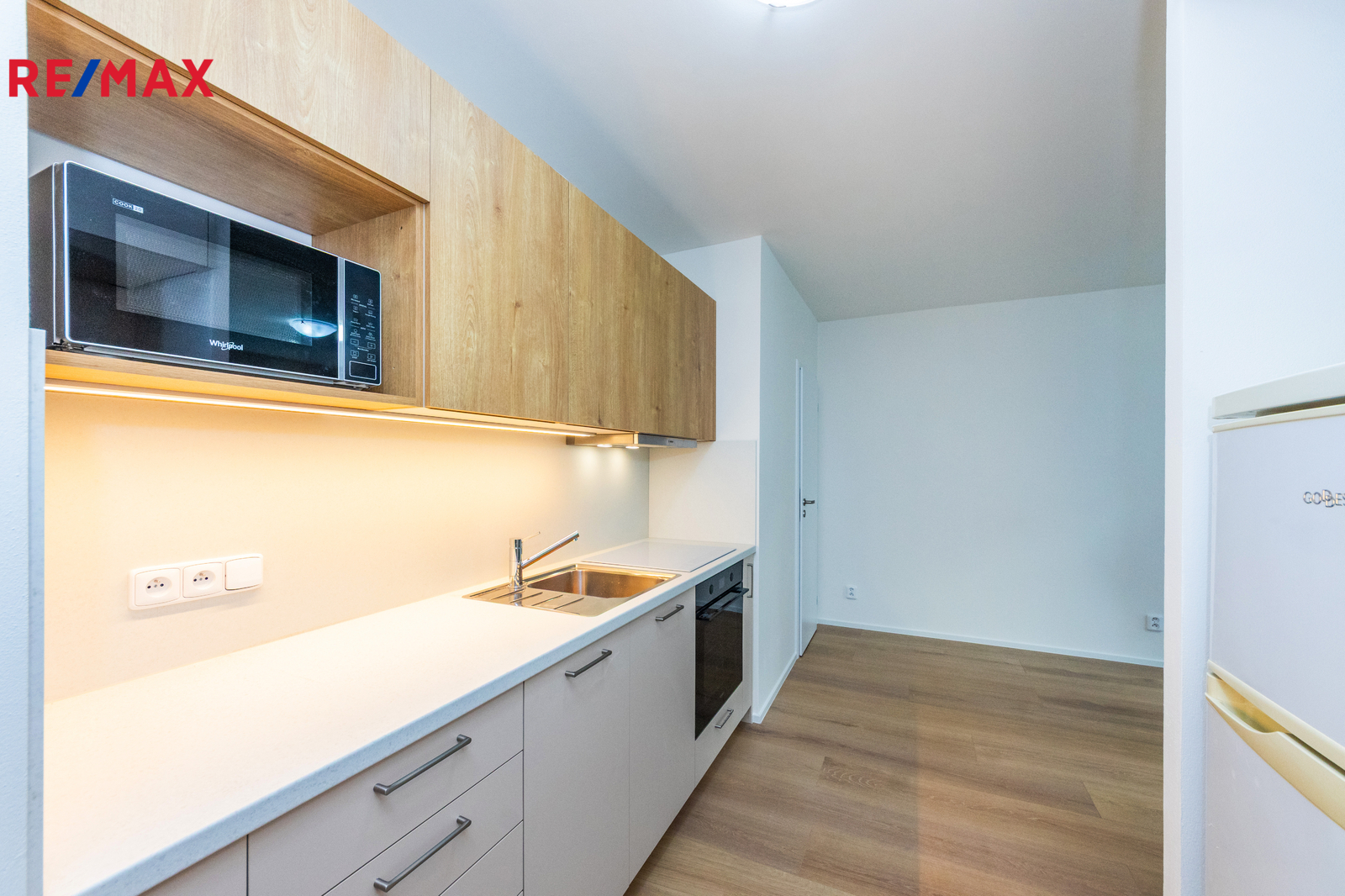 Byt nabízí obývací pokoj s výstupem na lodžii se zasklením, ložnici, kuchyňský kout se základní výbavou vestavěných spotřebičů, koupelnu se sprchovým koutem, vč. pračky, samostatnou toaletu a předsíň. Vybavení vestavěným nábytkem garantuje dostatečný úložný prostor.