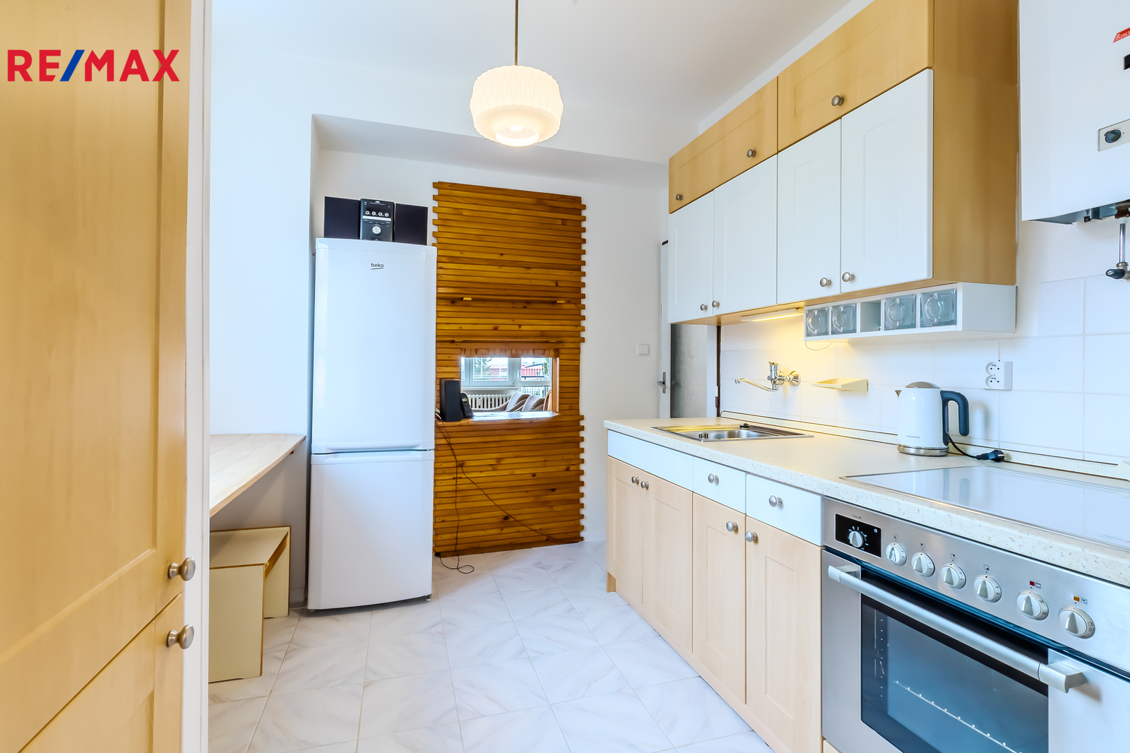 Interiér bytu tvoří plně vybavená kuchyň (trouba, sporák, digestoř, lednice s mrazákem), prostorný obývací pokoj se vstupem na balkón, 2 pokoje, koupelna s vanou a pračkou, oddělená toaleta a velká vstupní chodba s úložným prostorem. V pokojích je vinyl, v kuchyni, na chodbě a koupelně je dlažba.