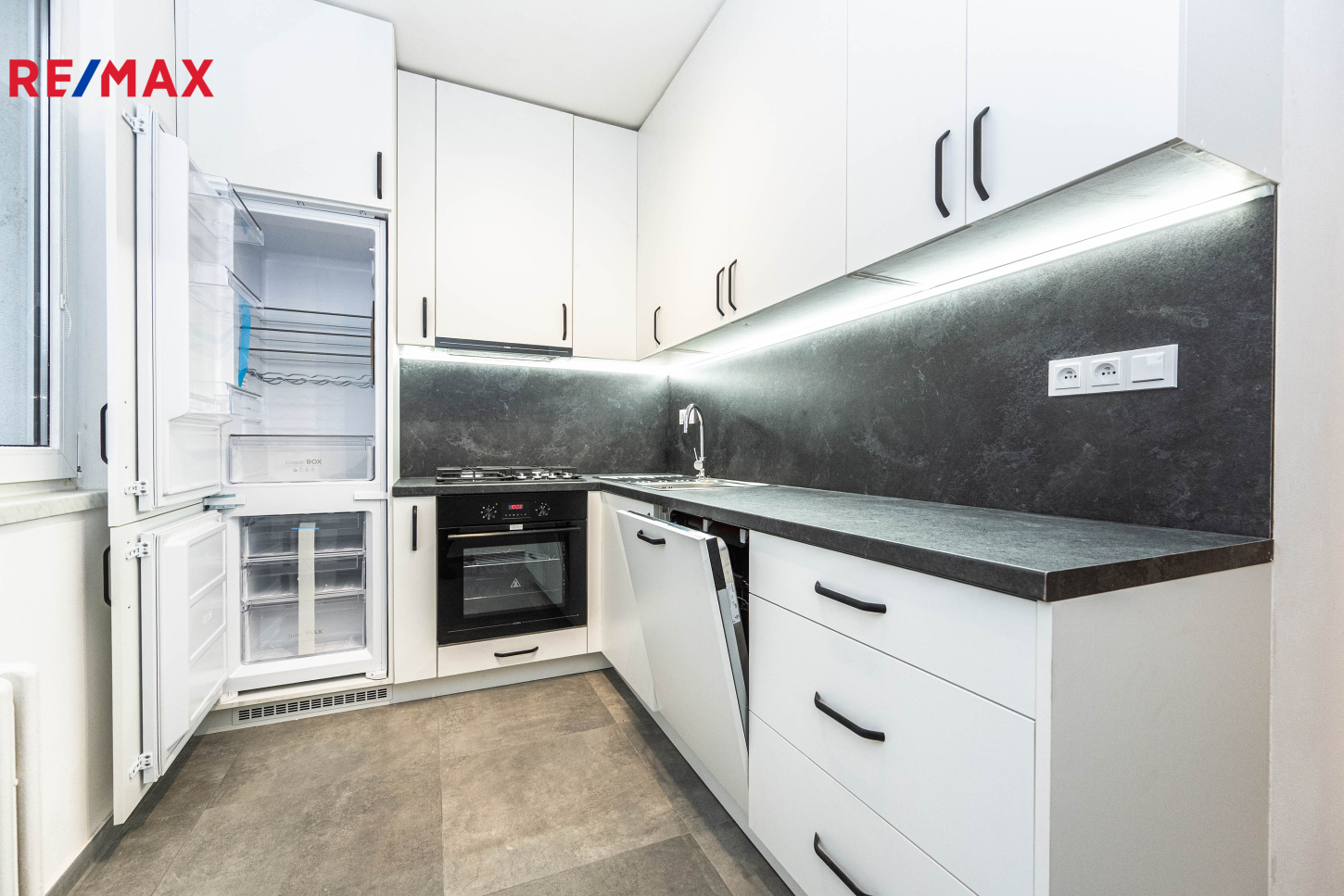 Kuchyně je plně vybavená a to včetně plynového sporáku, elektrické trouby, myčky nádobí a lednice. Okna jsou orientována na východní a západní stranu.