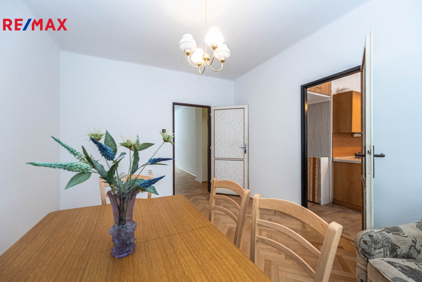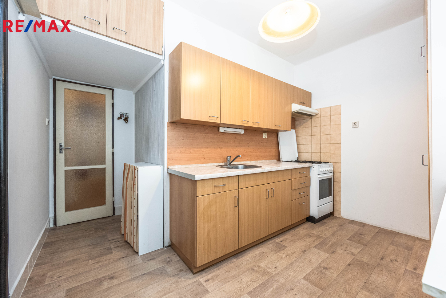 Kuchyně je vybavený plynovým sporákem. V bytě zůstává veškerý nábytek na fotografiích. Okna jsou orientována na východní a západní stranu.