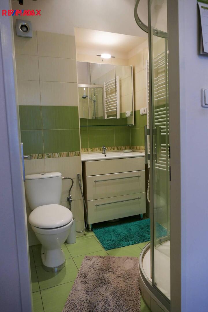 Byt je kompletně vybaven a připraven k okamžitému nastěhování bez nutnosti dalších úprav či dovybavení. Po vstupu do bytu se nachází předsíň, z níž je přístup do zrekonstruované koupelny se sprchovým koutem a toaletou. Dále je vstup do prostorného obývacího pokoje o rozměrech cca 6 × 4 m s dřevěným patrem na spaní, které efektivně využívá výšku místnosti a zvětšuje obytný prostor. Z obývacího pokoje je vstup do samostatné, moderně vybavené kuchyně s lednicí, mrazákem, indukční varnou deskou, pračkou a sušičkou.
