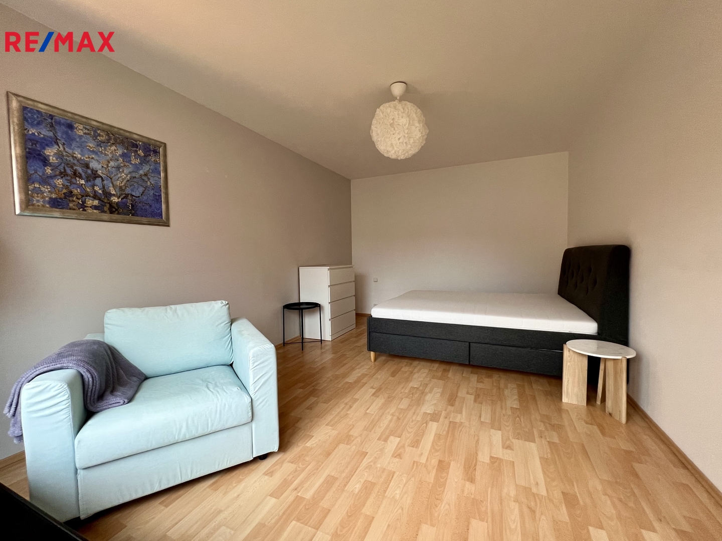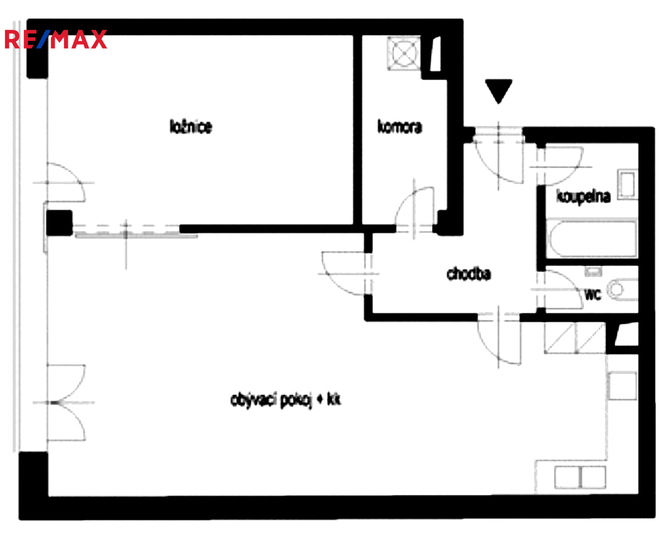 Byt disponuje velkým obývacím pokojem s kuchyní, samostatnou ložnicí, koupelnou s vanou, odděleným WC a velkou komorou s pračkou a dostatkem úložných prostor.