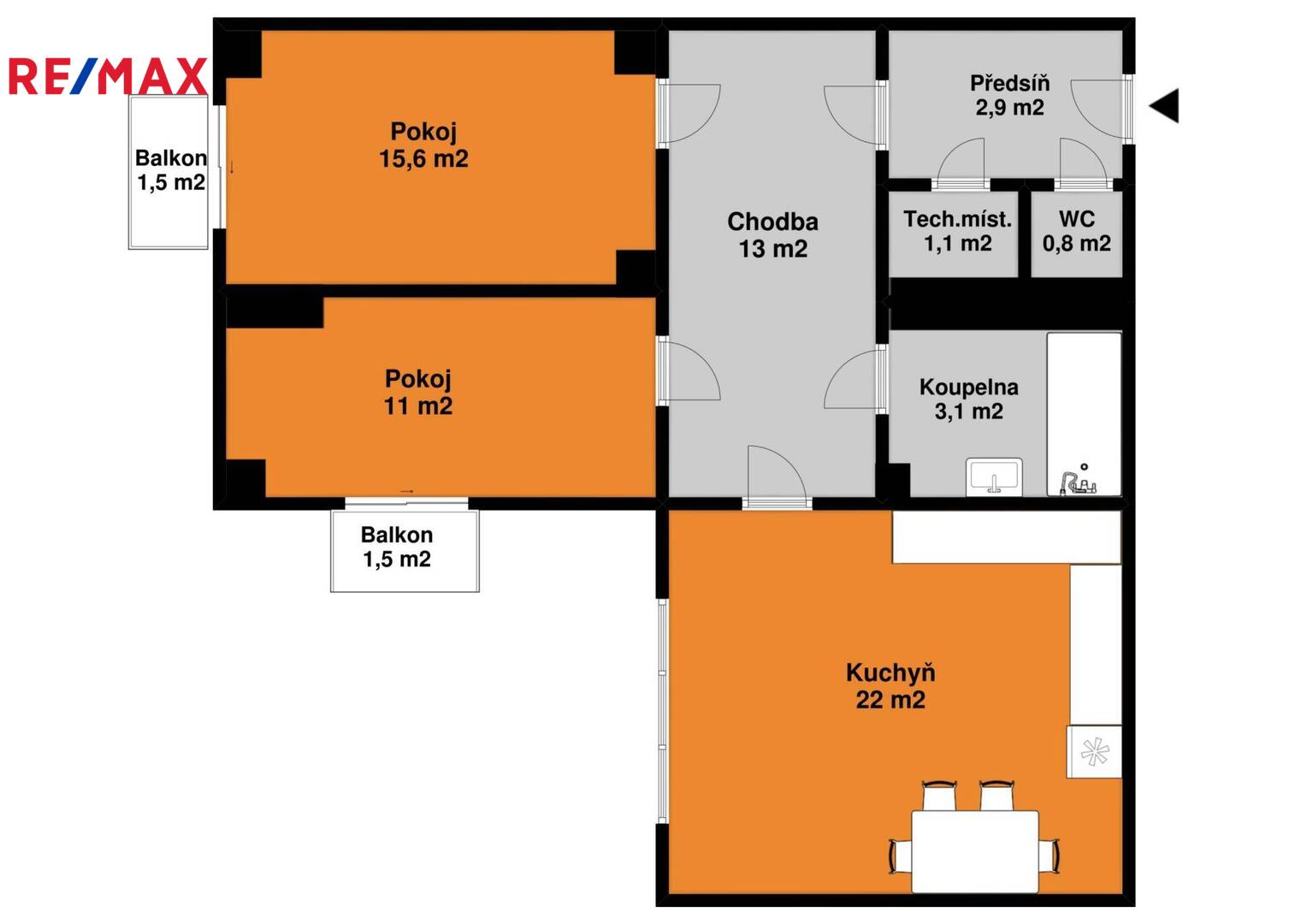 Celková plocha: 74 m2
