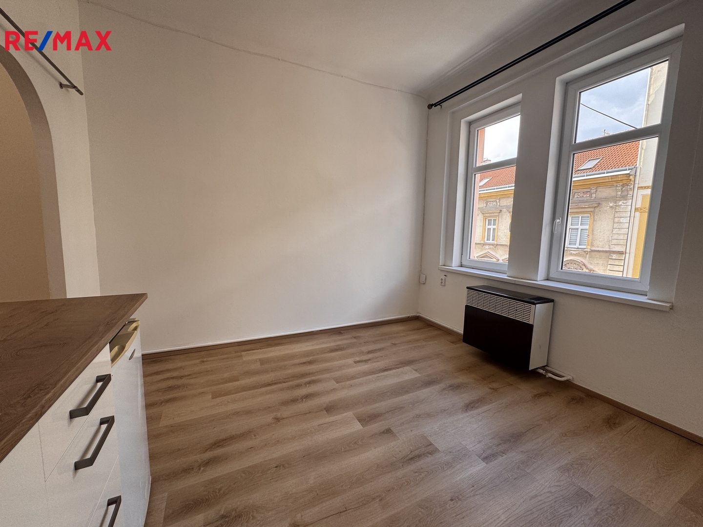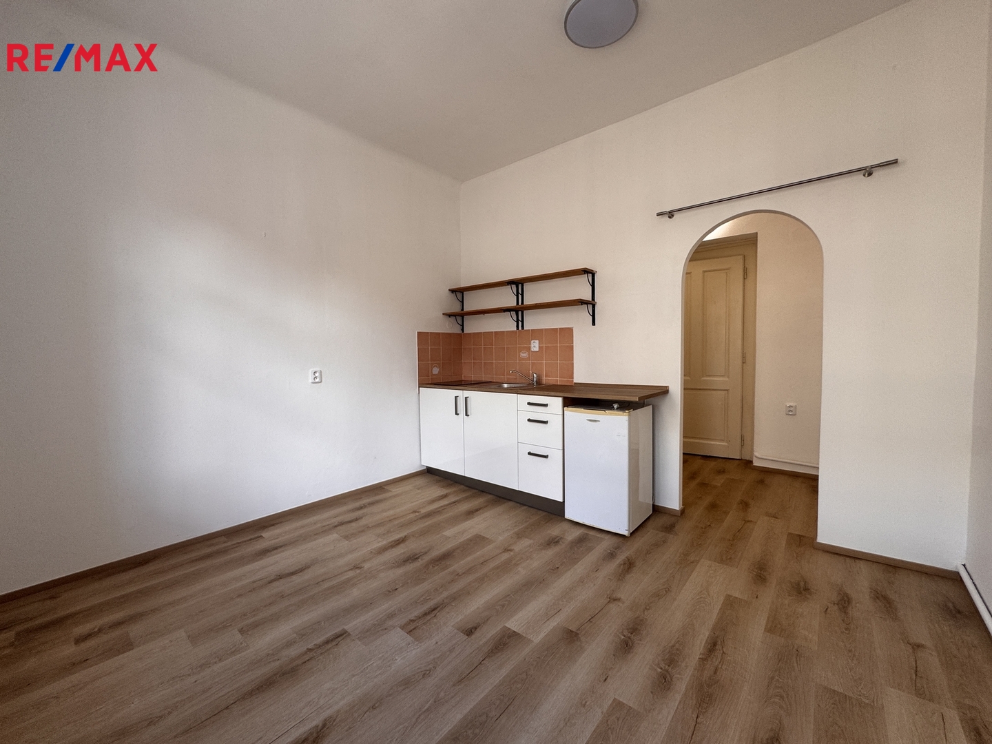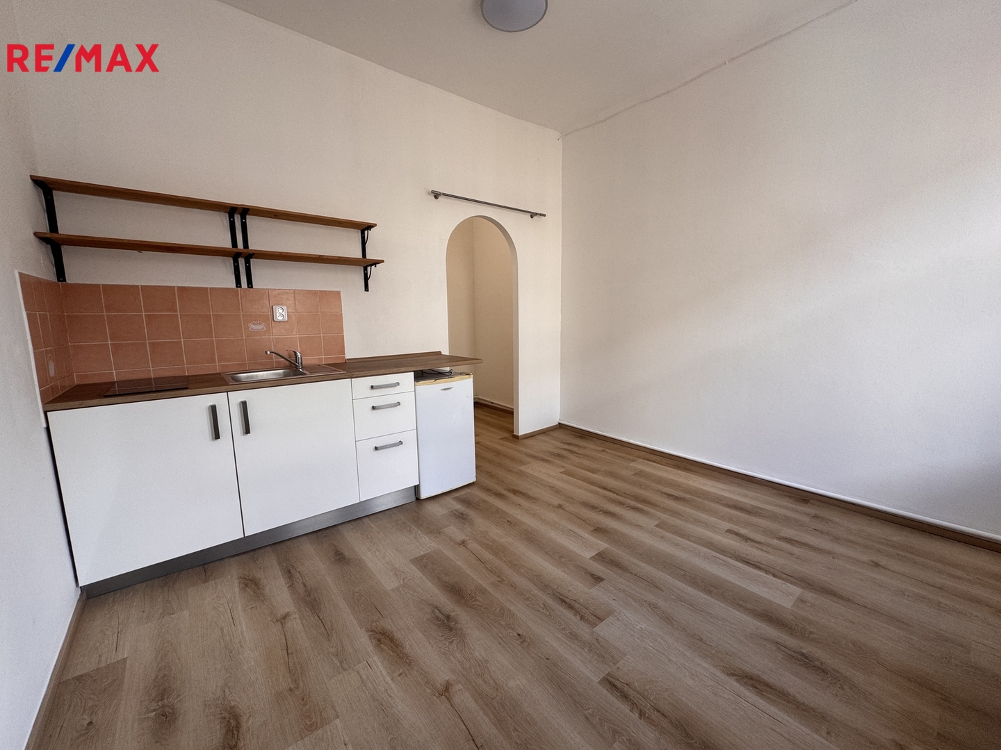 Exkluzivně Vám k dlouhodobému pronájmu nabízíme částečně zařízený byt o dispozici 1+kk a o celkové užitné ploše 25m2. Byt nacházející se ve třetím nadzemním podlaží se skládá z obývacího pokoje s kuchyní, předsíně, komory na pračku a koupelny s toaletou