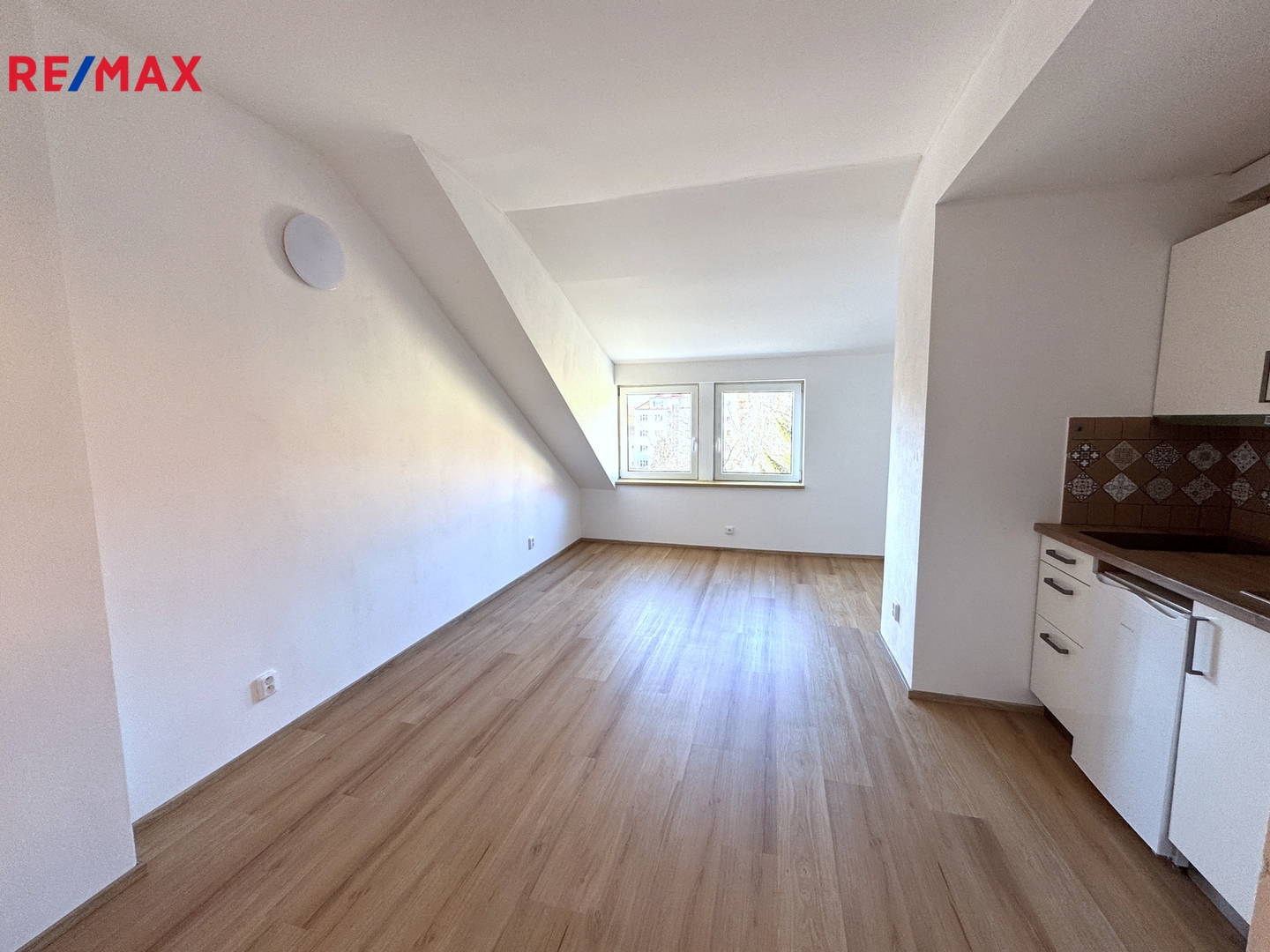 Nabízíme k pronájmu byt 1+KK v posledním patře cihlového činžovního domu v ulici Braunerova.