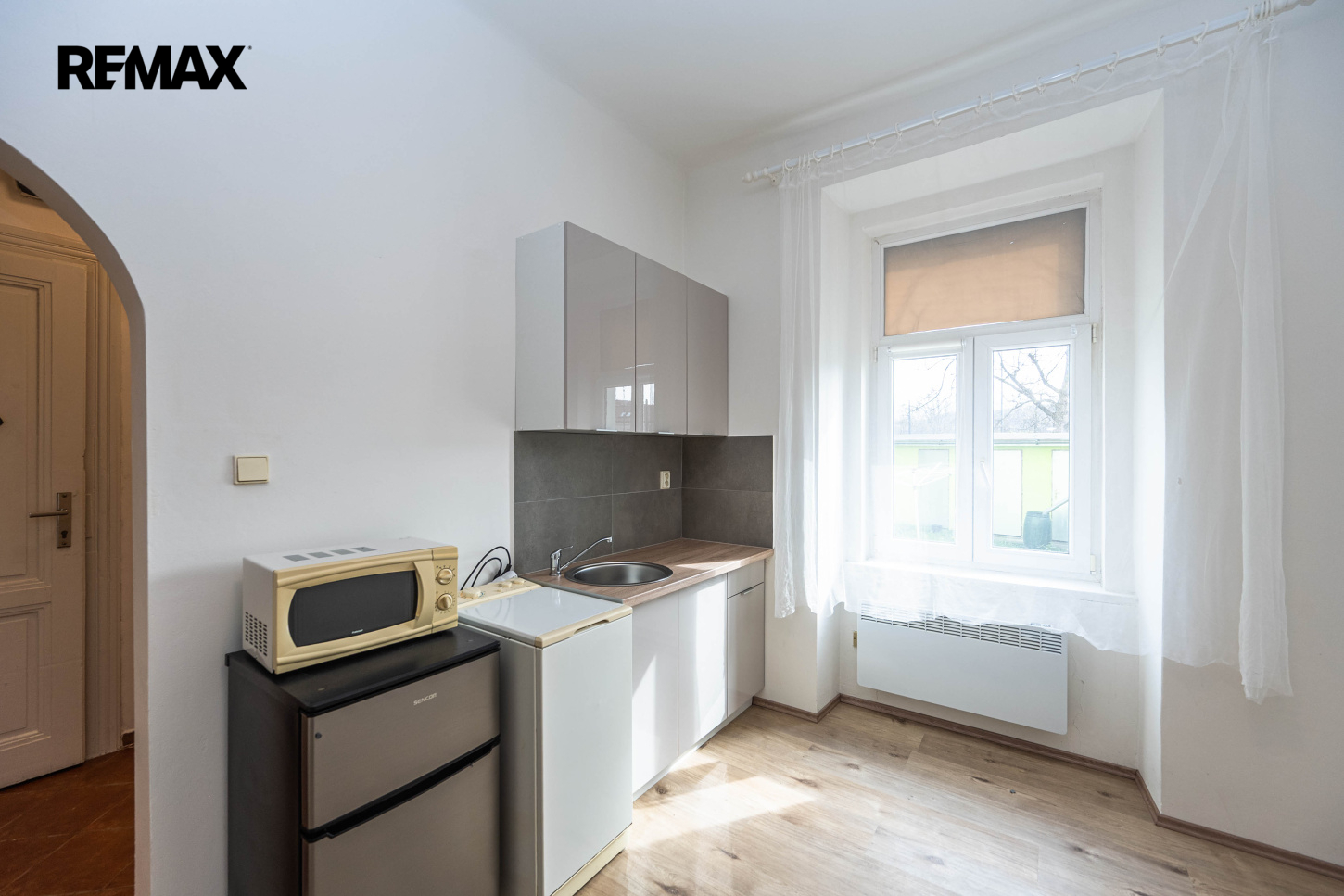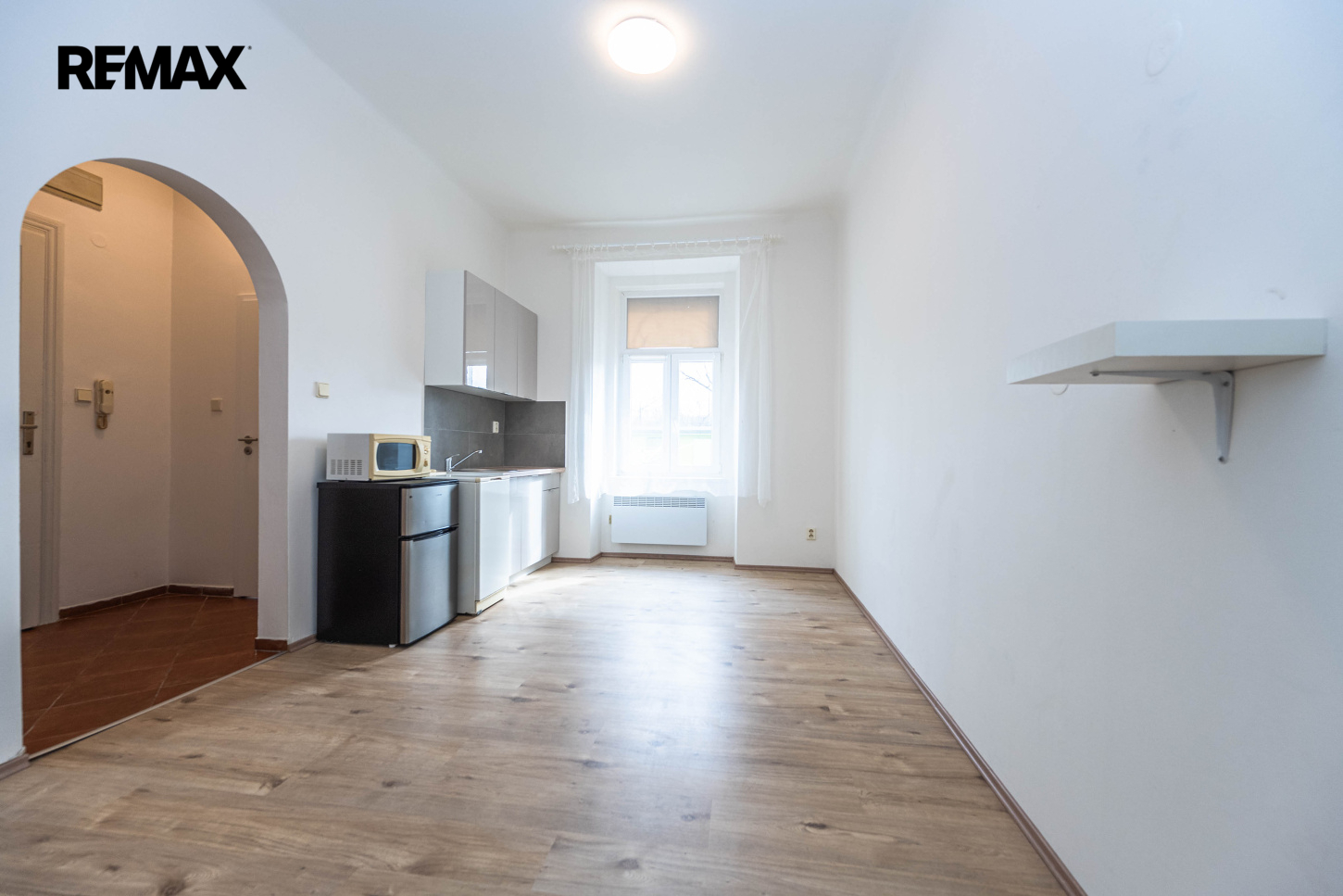 Exkluzivně Vám k dlouhodobému pronájmu nabízíme částečně zařízený byt o dispozici 1+kk a o celkové užitné ploše 25m2. Byt nacházející se v prvním nadzemním podlaží se skládá z obývacího pokoje s kuchyní, předsíně a koupelny s toaletou.