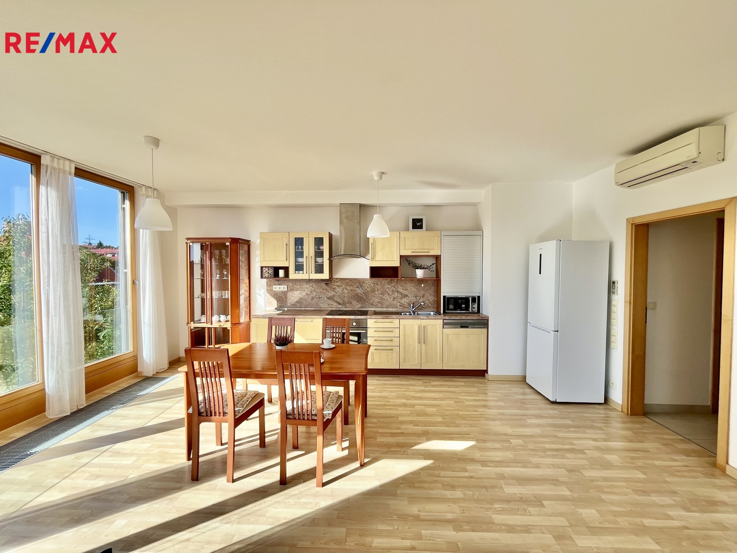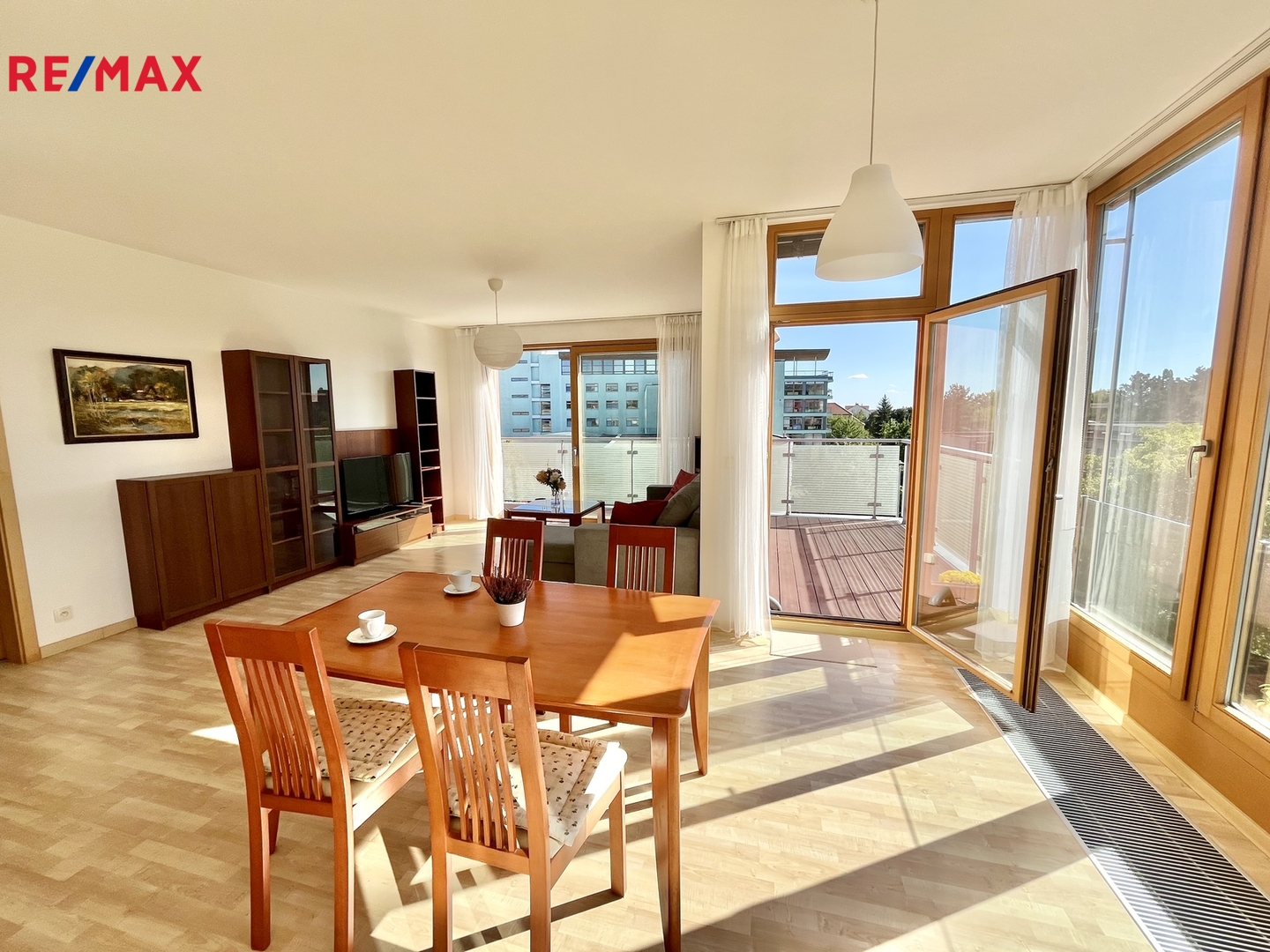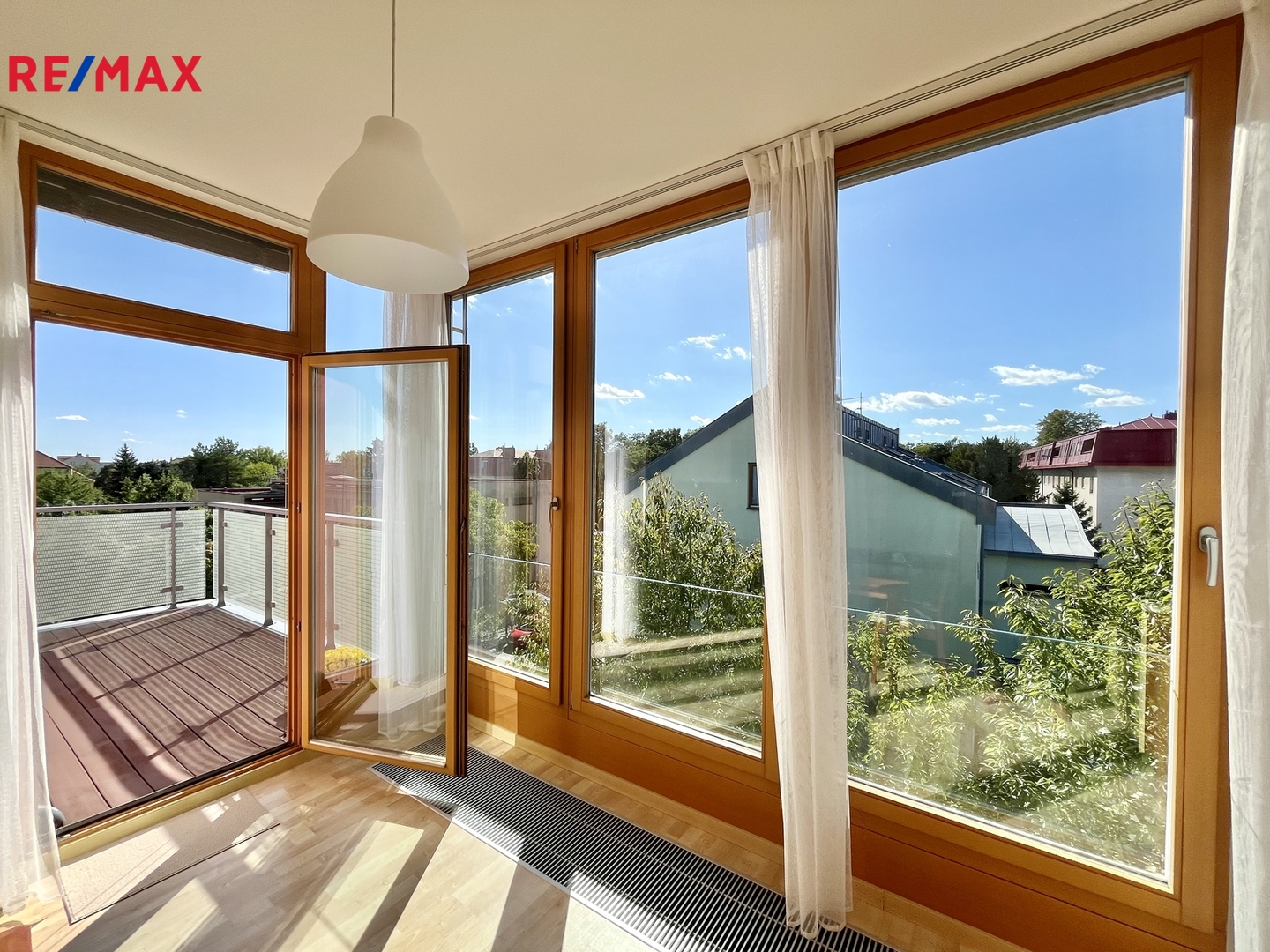 Celý den prostupuje bytem spousta denního světla, které sem přichází velkoformátovými okny ze tří světových stran. Z každé místnosti můžete vstoupit na prostornou, slunnou terasu.