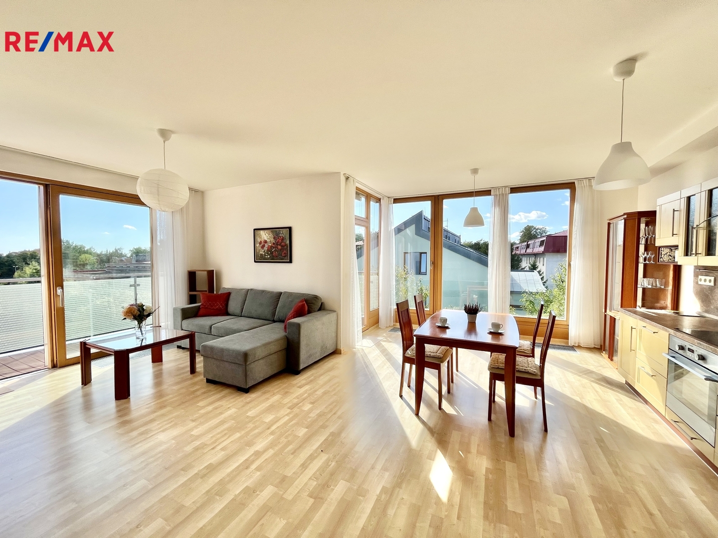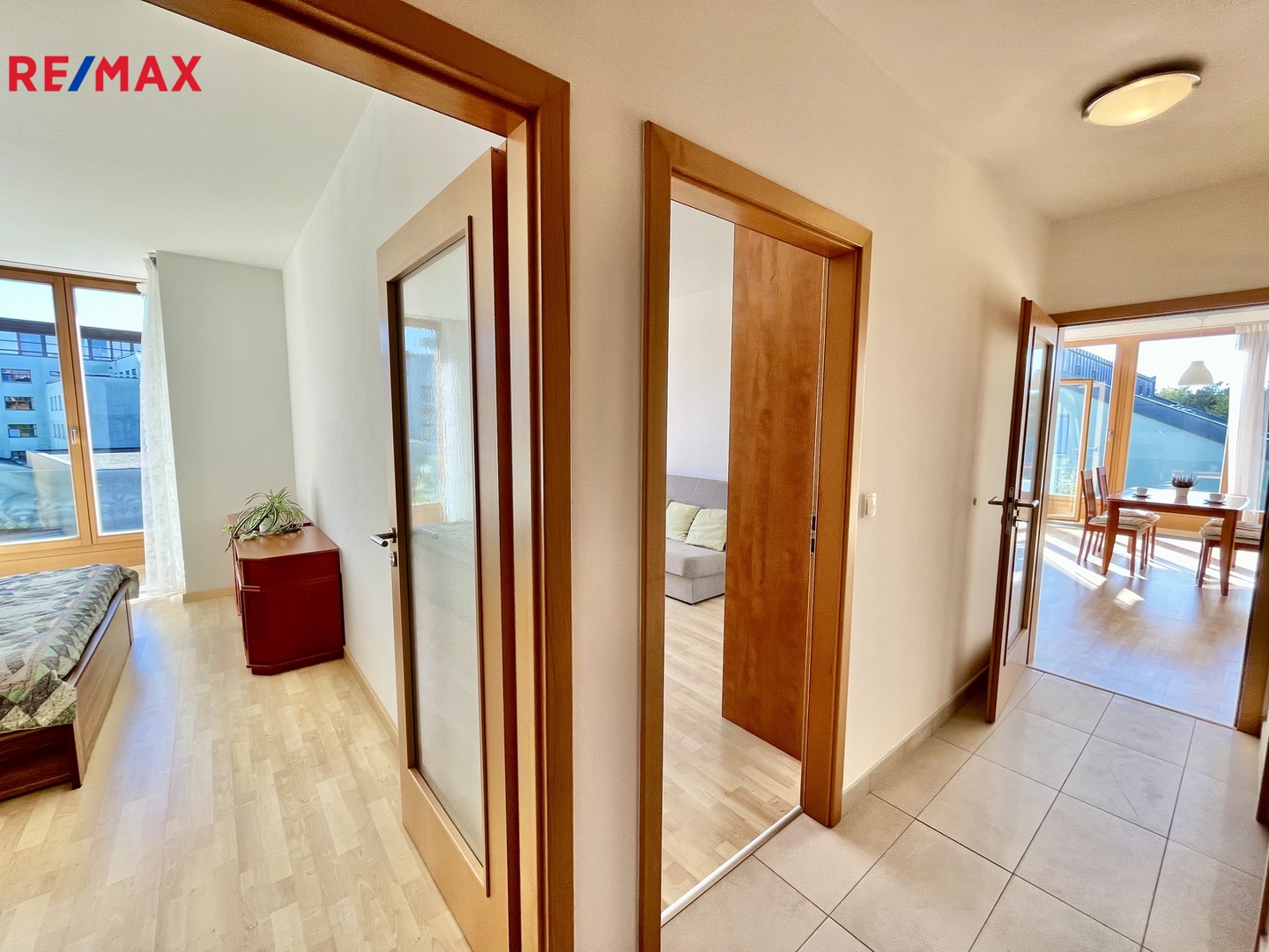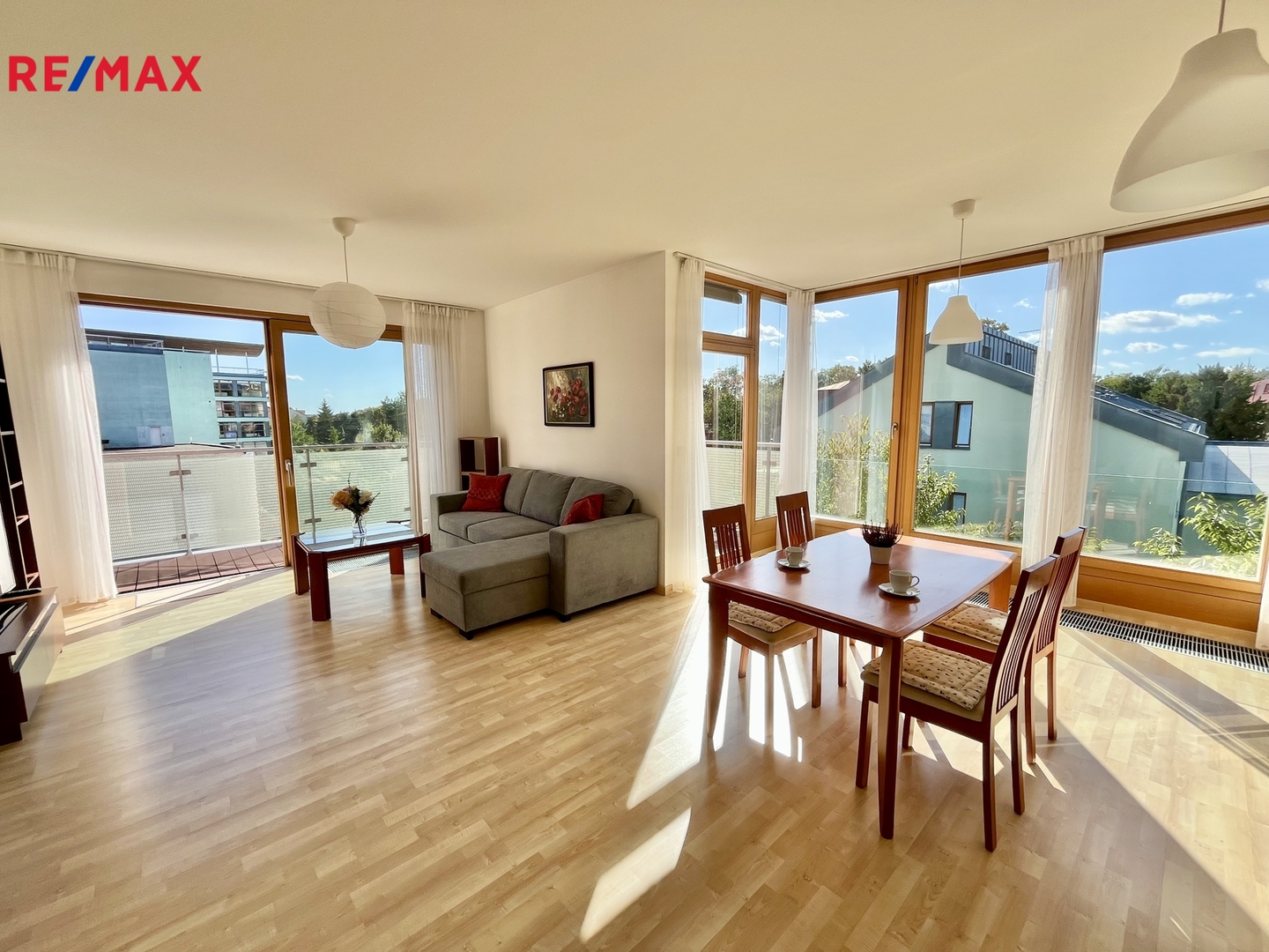 Celý den prostupuje bytem spousta denního světla, které sem přichází velkoformátovými okny ze tří světových stran. Z každé místnosti můžete vstoupit na prostornou, slunnou terasu.