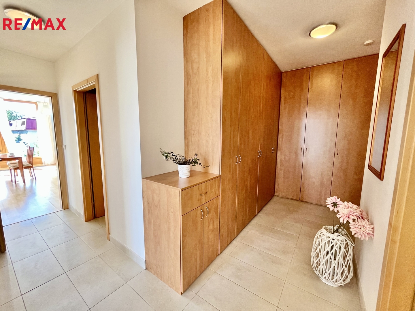 Pohodlí zajišťuje kvalitní vybavení, velkorysý úložný prostor poskytují vestavěné skříně a v kuchyňské lince najdete vše co potřebujete.