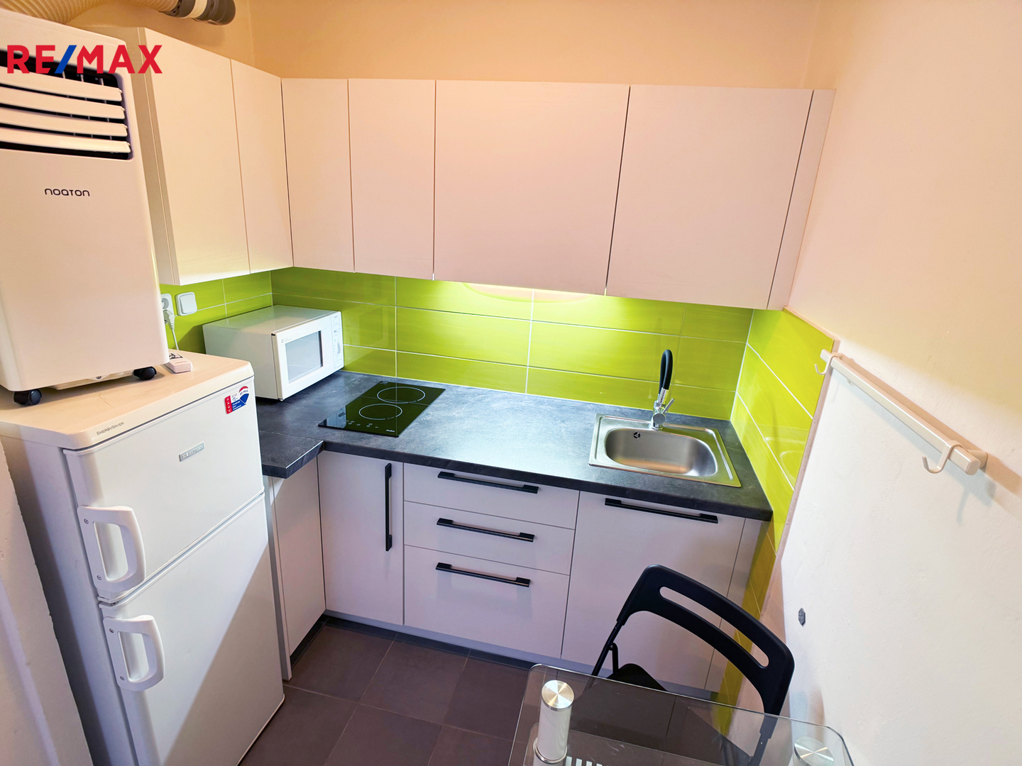 Byt je vybaven moderní kuchyňskou linkou vybavenou spotřebiči /lednice, mrazák, elektorický sporák, mikrovlnná trouba/ a místem pro vaření i stolování.