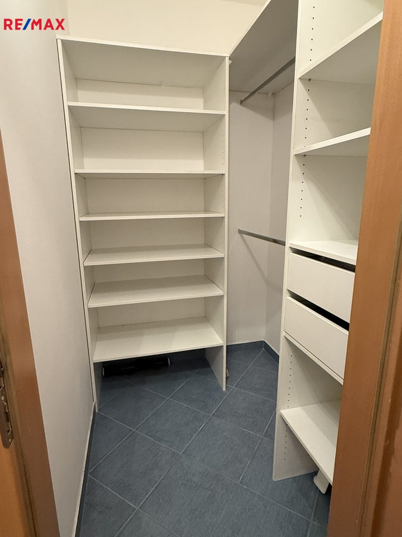 - komora přestavěná na šatnu s úložným systémem