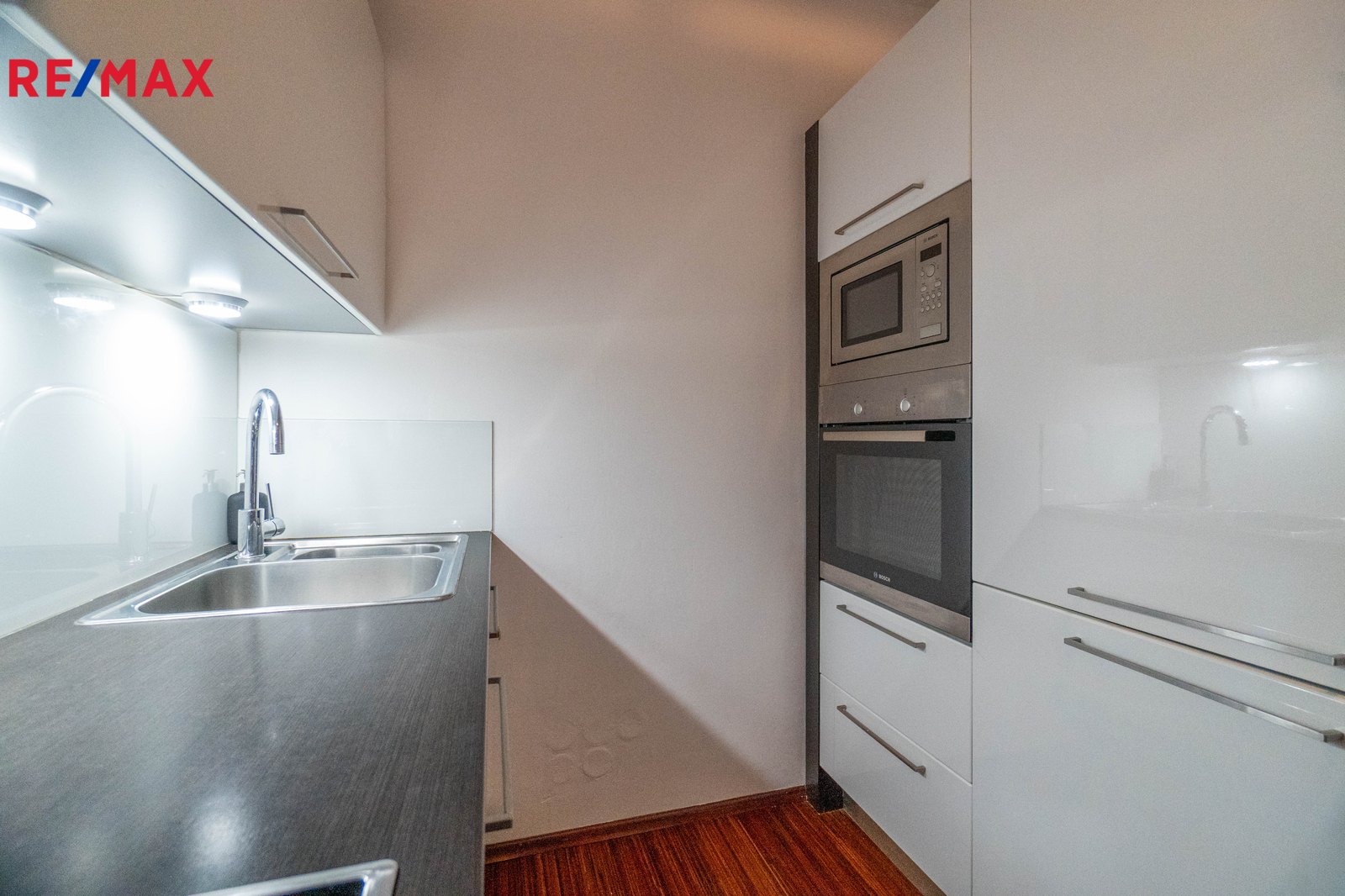 - kuchyňská linka se spotřebiči BOSCH (trouba, varná deska, myčka, lednice s mrazákem, mikrovlnná trouba)