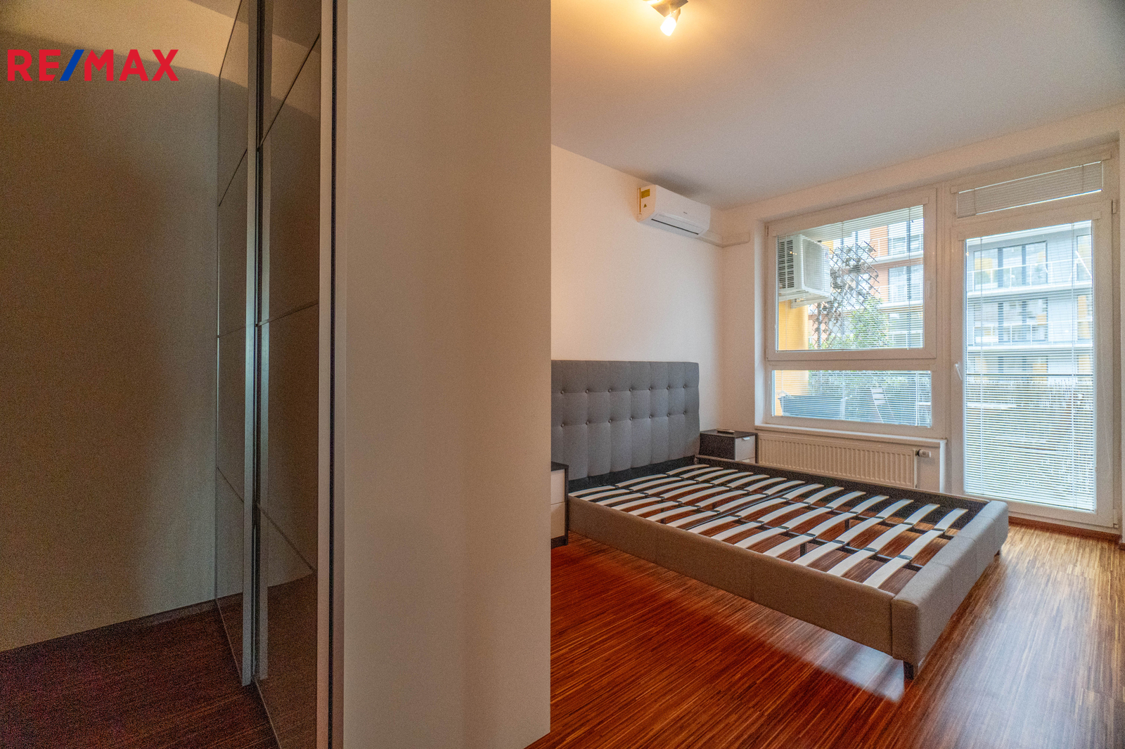 - dřevěné podlahy, klimatizace, žaluzie na všech oknech