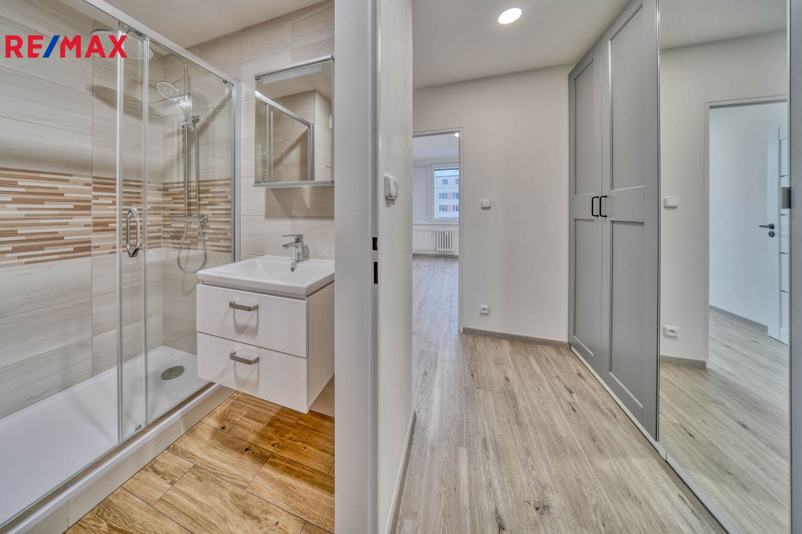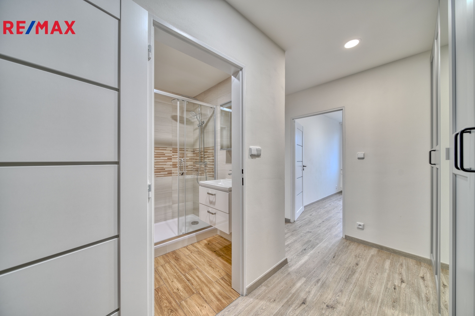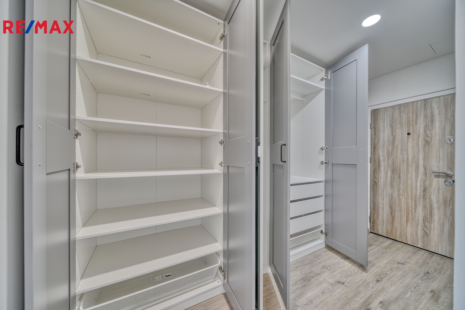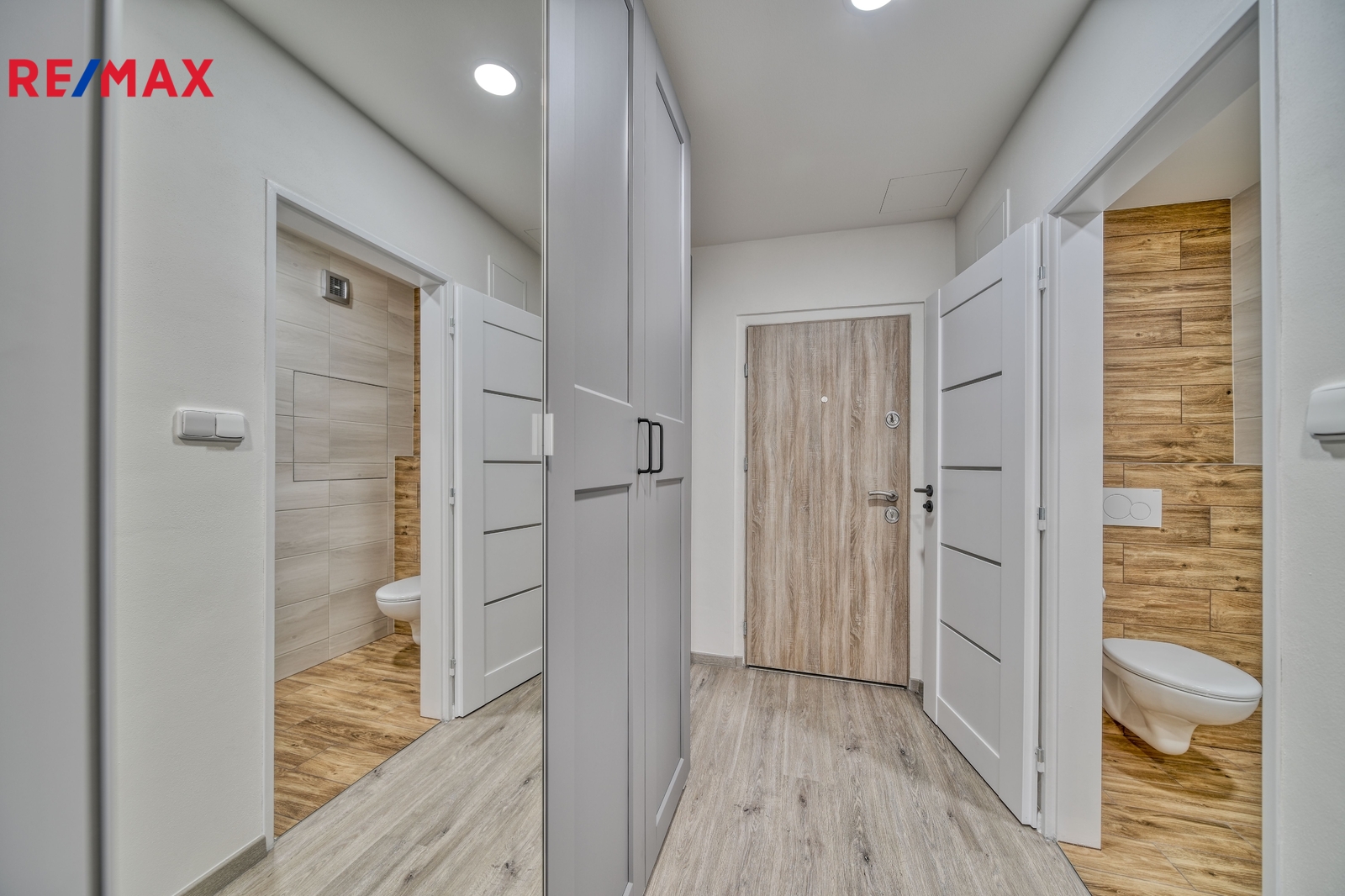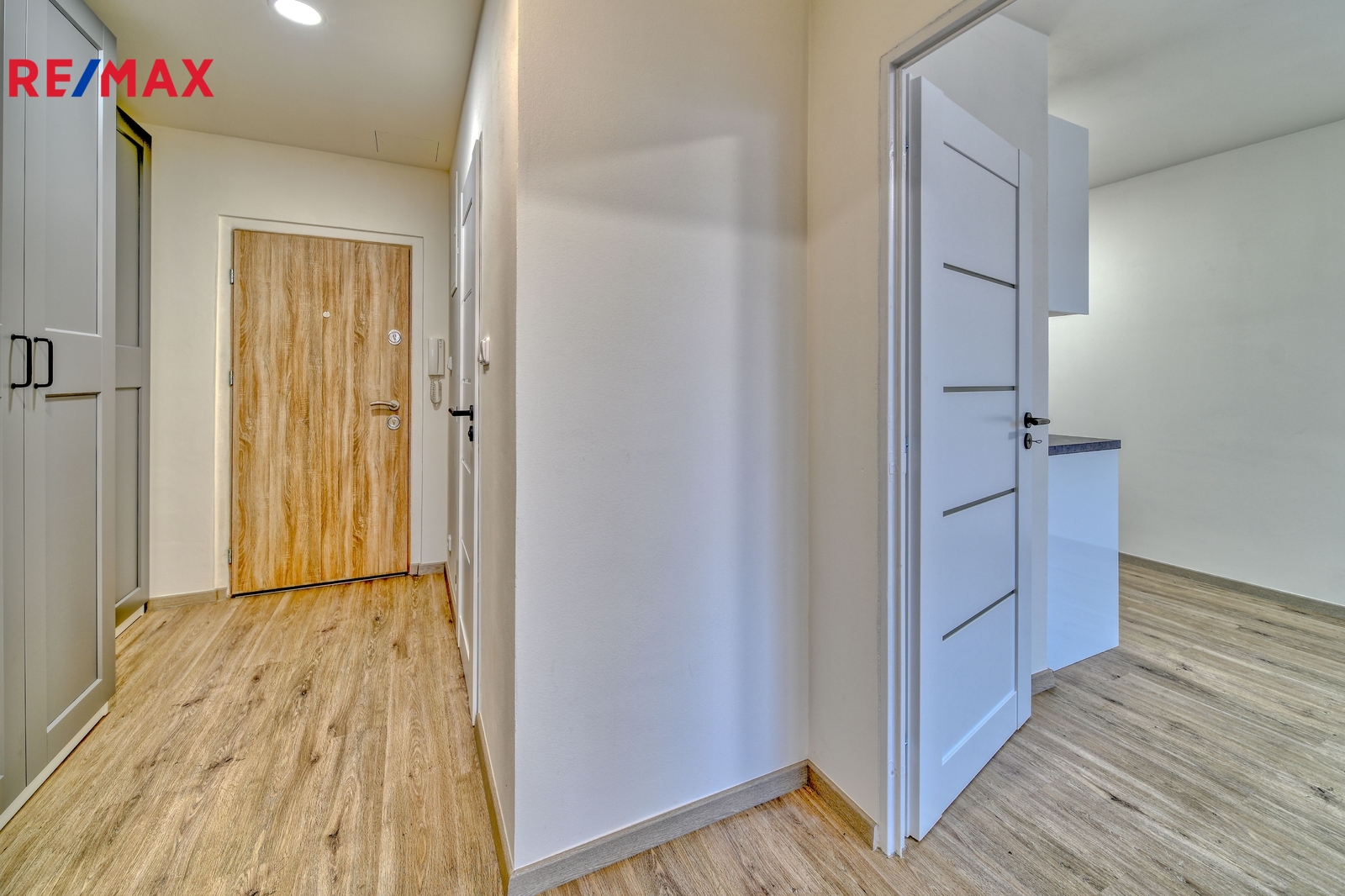 vstupní chodba s praktickými vestavěnými skříněmi