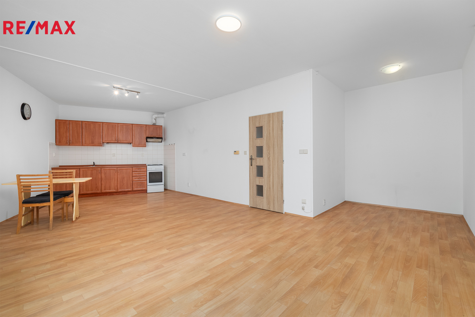 Praktická dispozice bytu nabízí vstupní chodbu se šatní skříní, koupelnu s vanou a toaletou, multifunkční obývací pokoj, který je velmi zdařile členěn na jednotlivé zóny. Na kuchyňský kout plynule navazuje jídelní část, dále zóna pro relaxaci a prostor pro spaní. Kuchyňská linka je vybavena kombinovaným sporákem s plynovou varnou deskou, elektrickou troubou a digestoří.