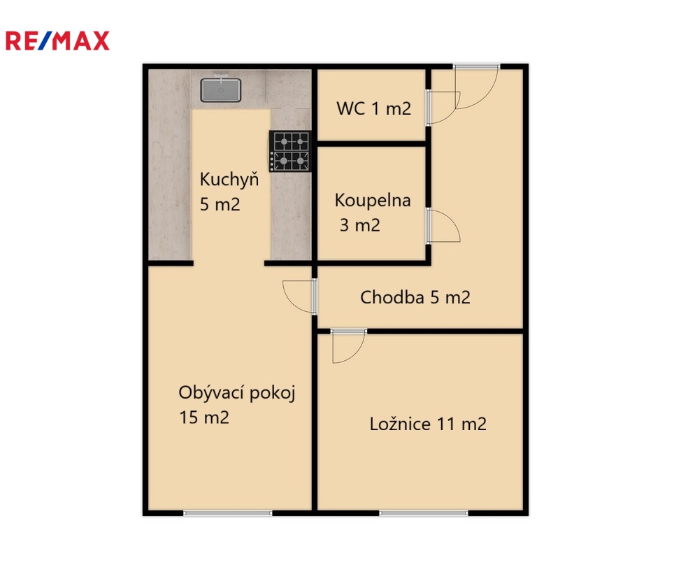 Byt se nachází v klidné lokalitě a nabízí příjemné bydlení pro 2 osoby: