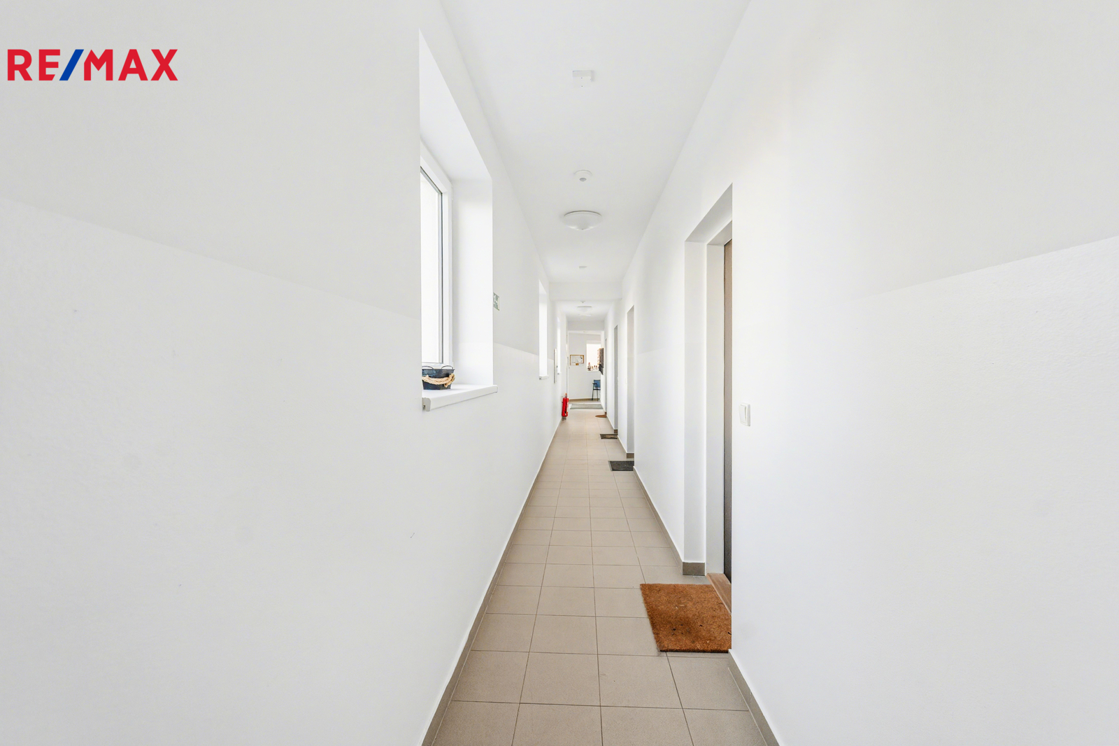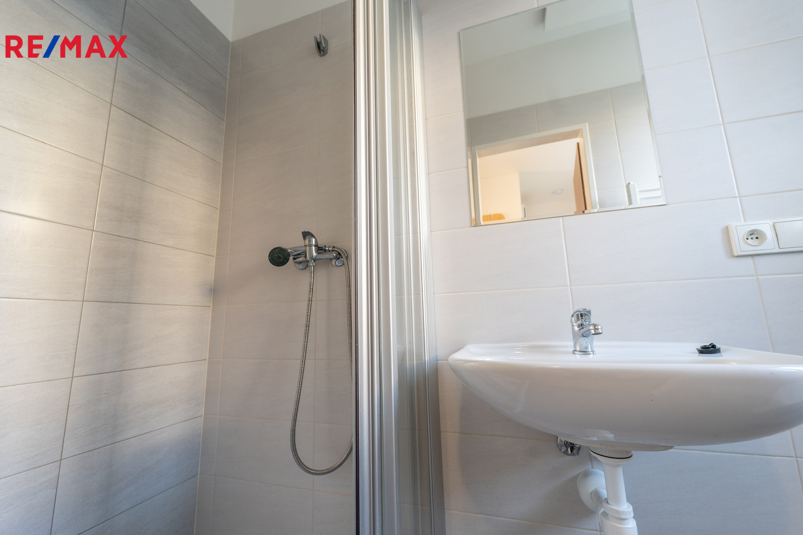 Byt o výměře 29 m² se nachází v 1. nadzemním podlaží novostavby třípodlažního cihlového domu. Je řešen jako praktický a úsporný, částečně vybaven kuchyňskou linkou s lednicí. Koupelna je se sprchovým koutem.