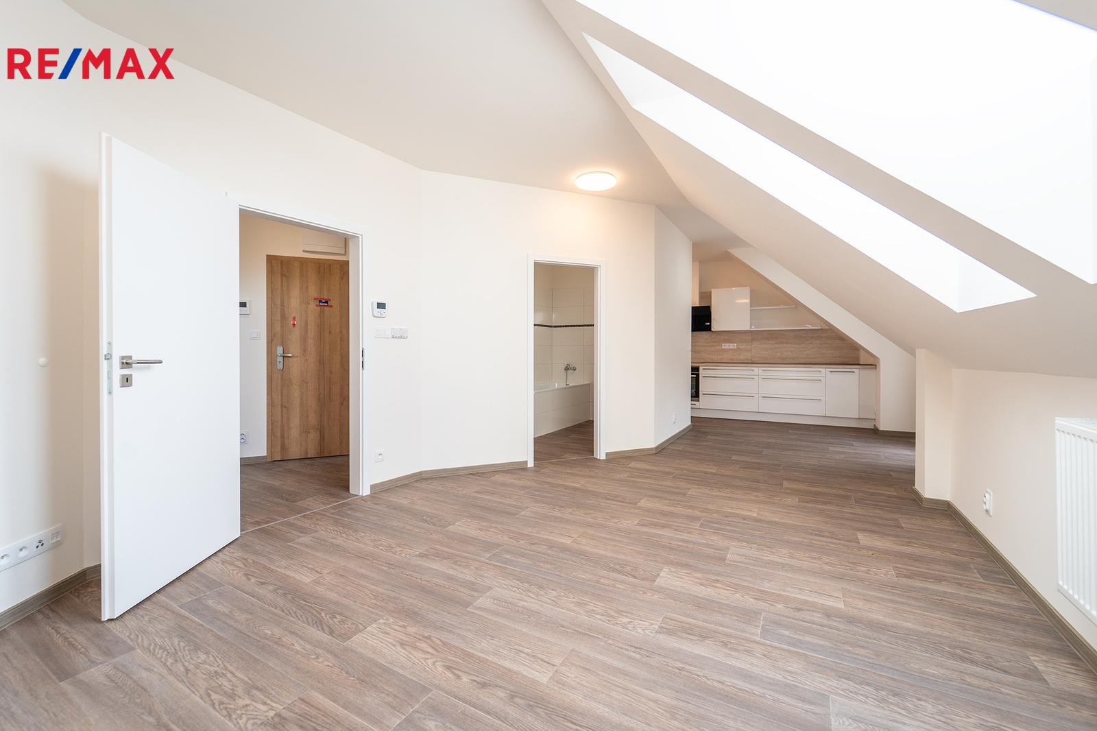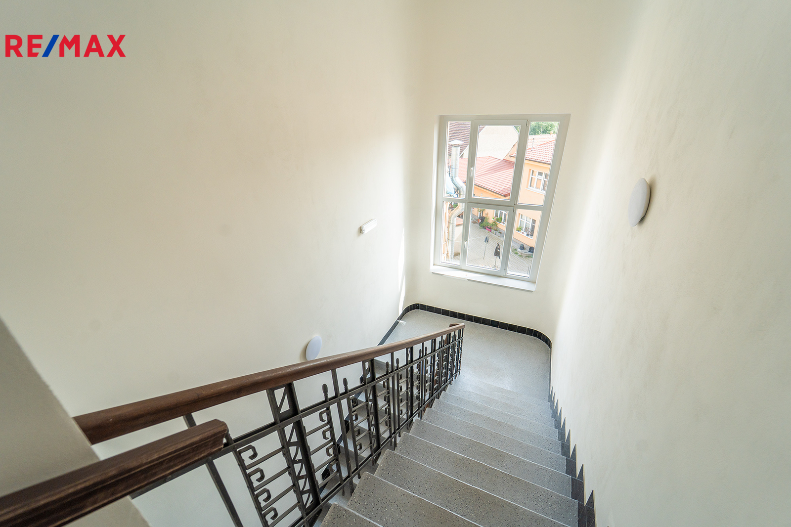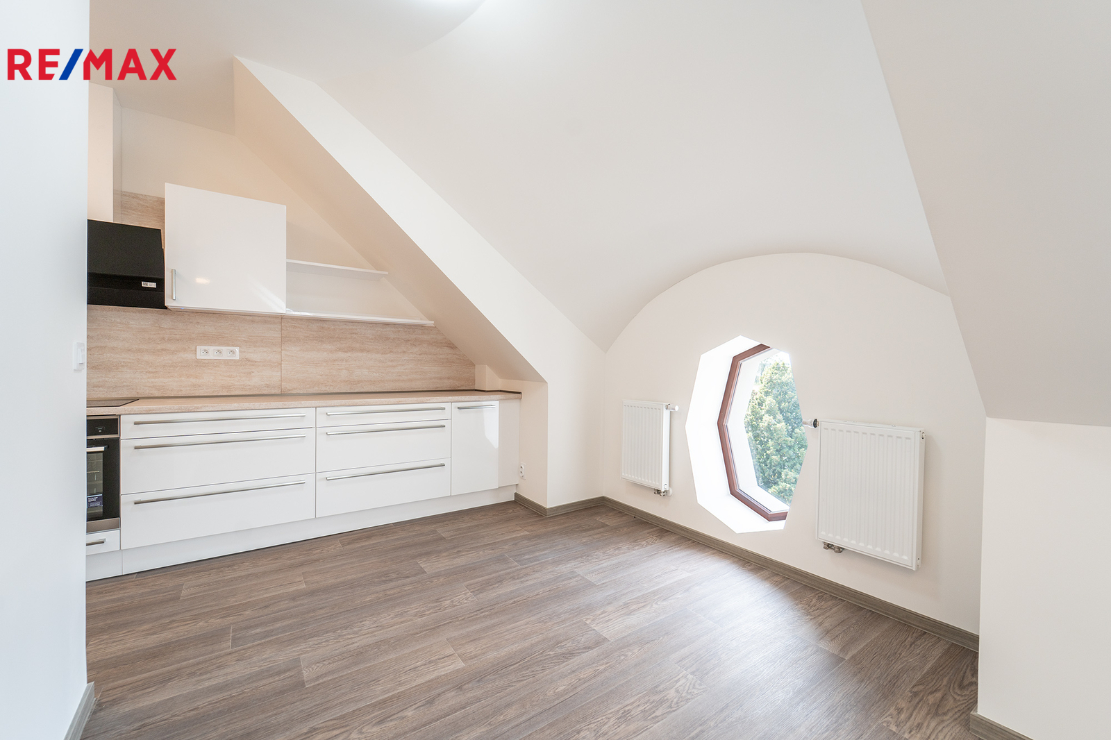 Dispozičně tu máte prostorný obývák s moderním kuchyňským koutem, kde se už těší vestavěná indukce, trouba, mikrovlnka i digestoř. K tomu jedna ložnice, koupelna s vanou a toaletou. Co je zde unikátní, tak to je místnost ve věžičce v rohu domu - ideální prostor pro pracovnu, kde vás bude rozptylovat výhled na náměstí.