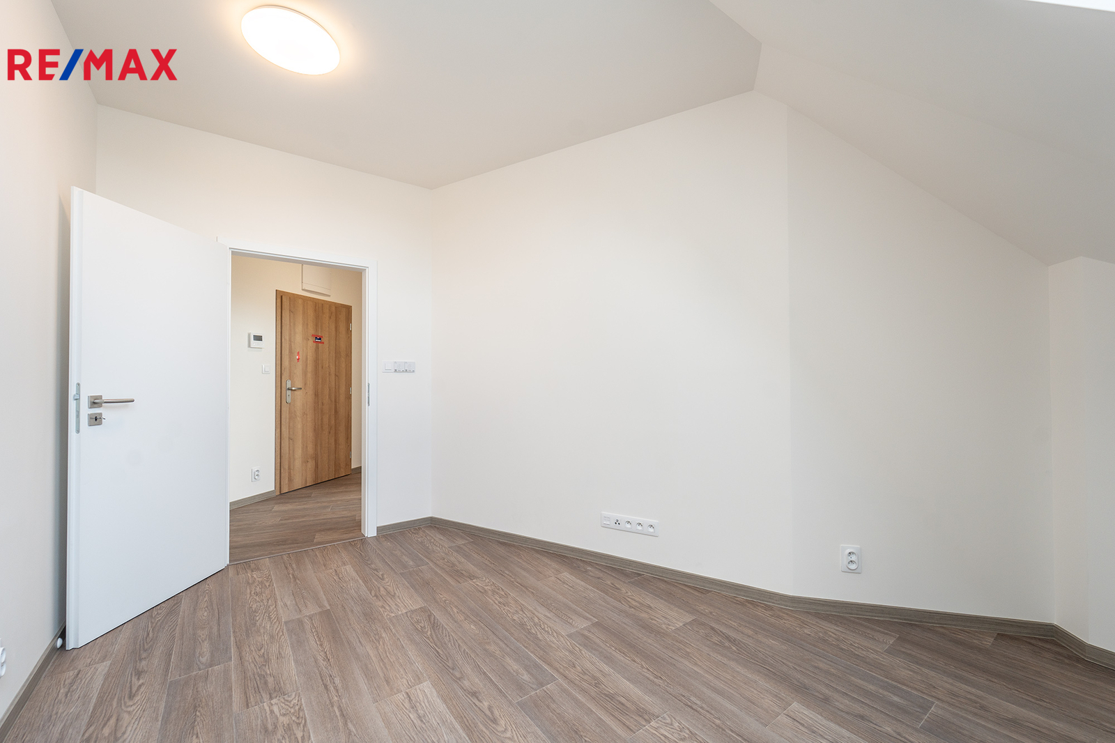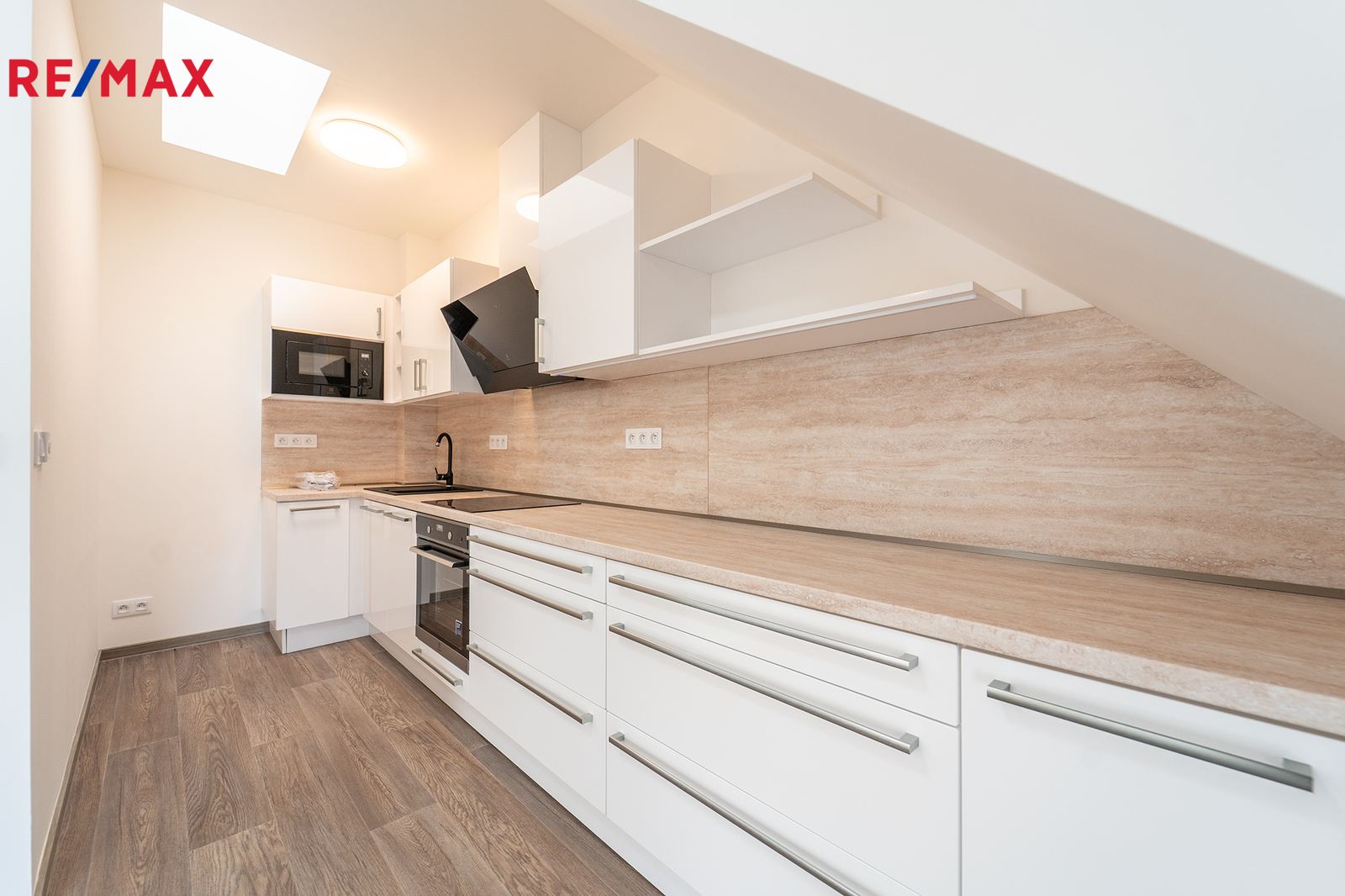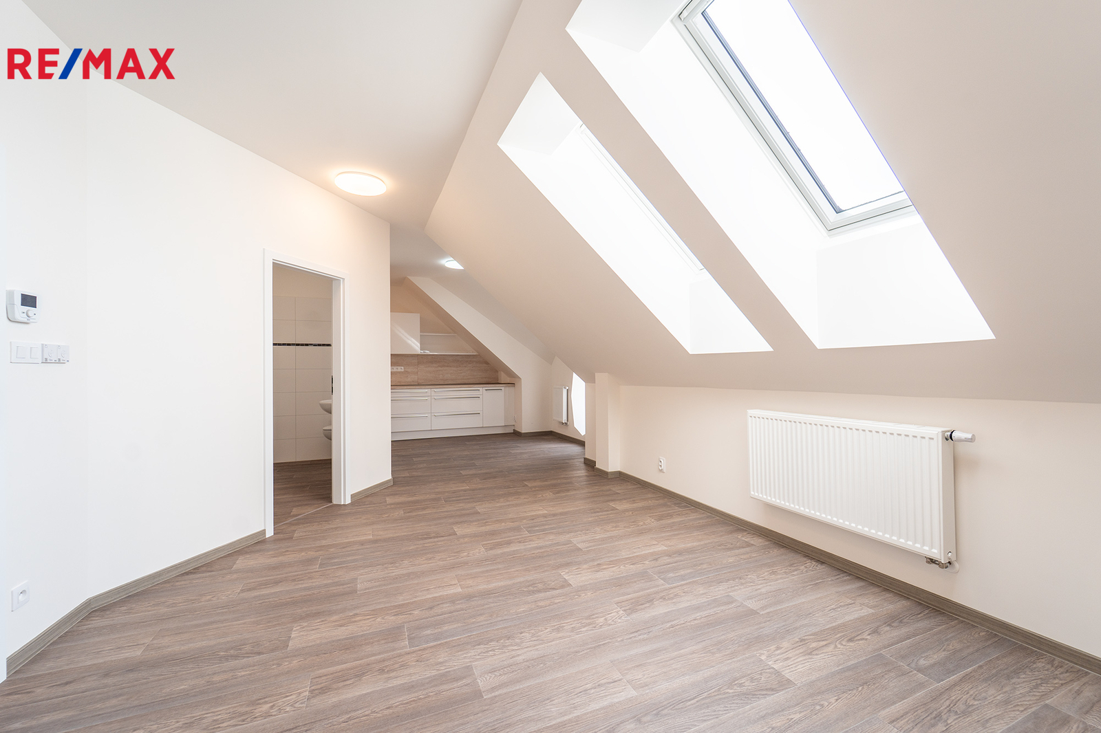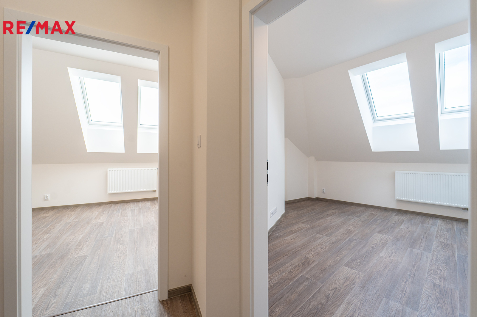 Dispozičně tu máte prostorný obývák s moderním kuchyňským koutem, kde se už těší vestavěná indukce, trouba, mikrovlnka i digestoř. K tomu jedna ložnice, koupelna s vanou a toaletou. Co je zde unikátní, tak to je místnost ve věžičce v rohu domu - ideální prostor pro pracovnu, kde vás bude rozptylovat výhled na náměstí.