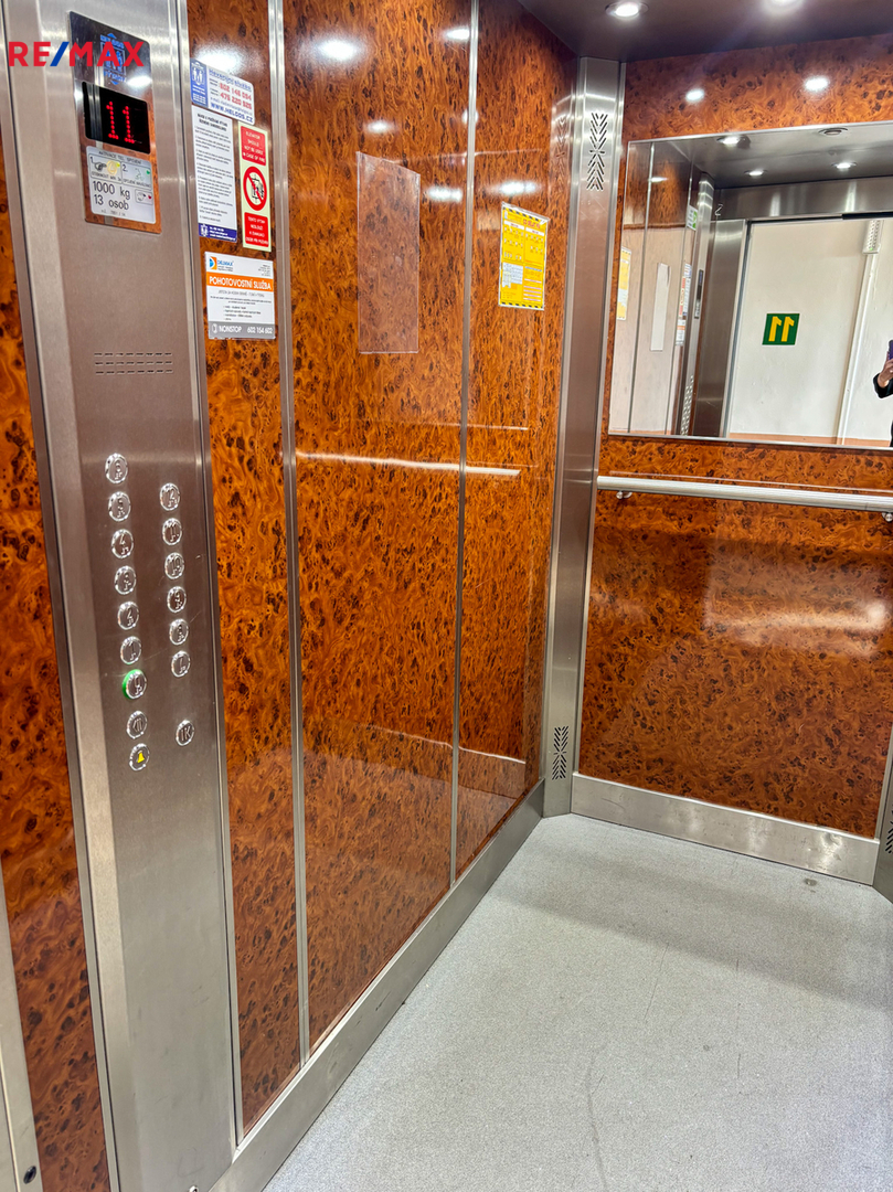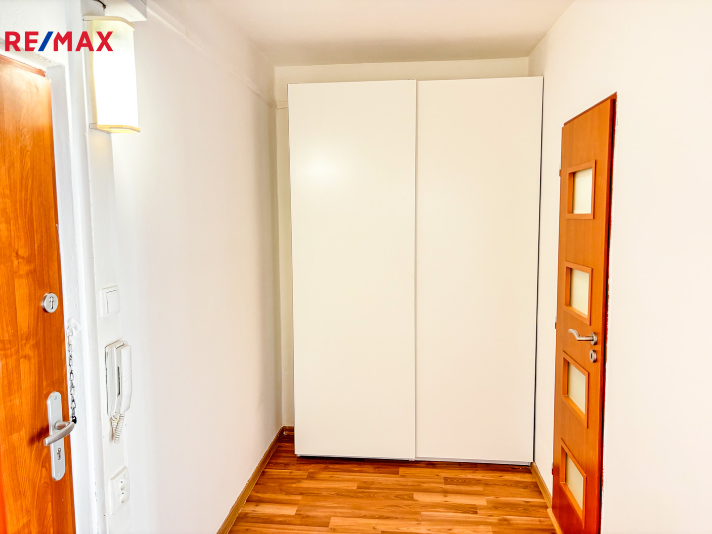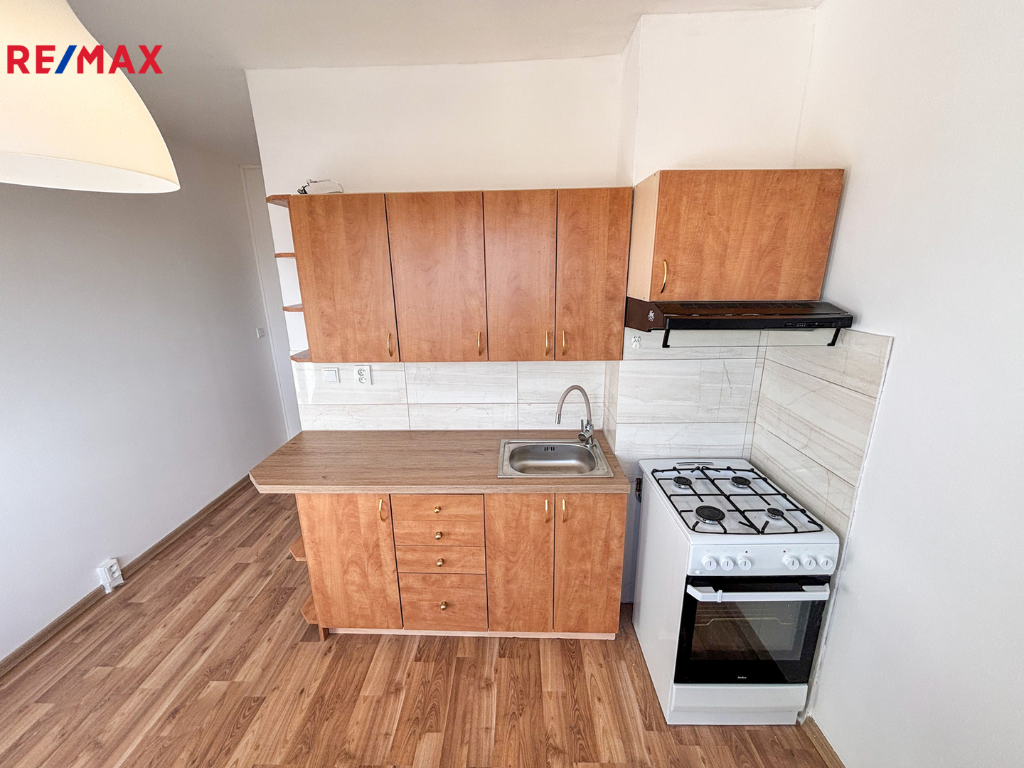 Byt tvoří vstupní chodba, kuchyně, samostatný pokoj, koupelna se sprchovým koutem a toaleta. V minulosti prošel rekonstrukcí, při které bylo vybudováno nové bytové jádro, instalována kuchyňská linka a položeny plovoucí laminátové podlahy. Byt se pronajímá včetně vybavení, k dispozici je například pračka, stůl, židle a další základní zařízení.