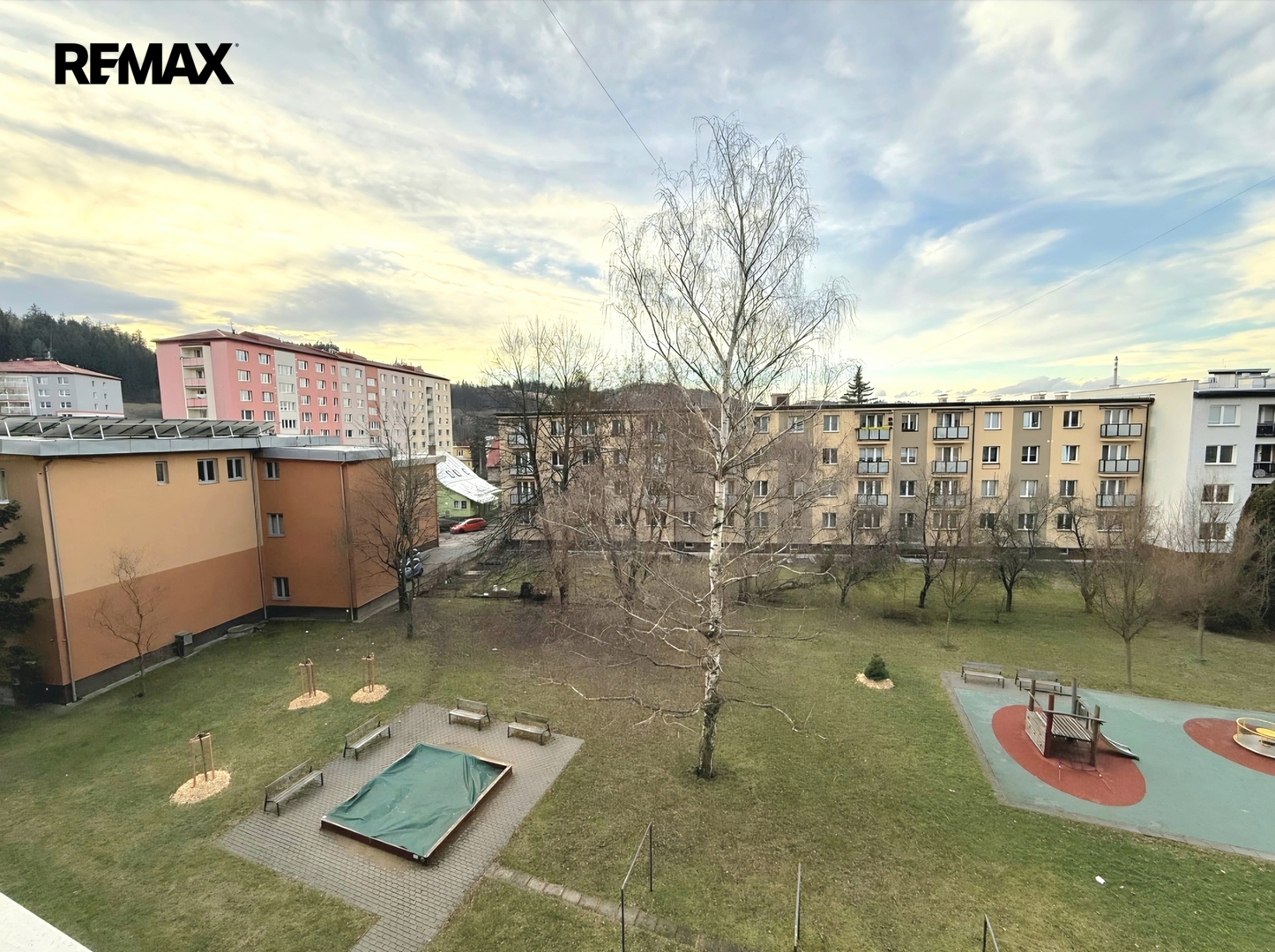 Výborná poloha – centrum města cca 3 minuty chůze, před domem Penny Market, zastávka MHD, parkování, dětské hřiště i park.
