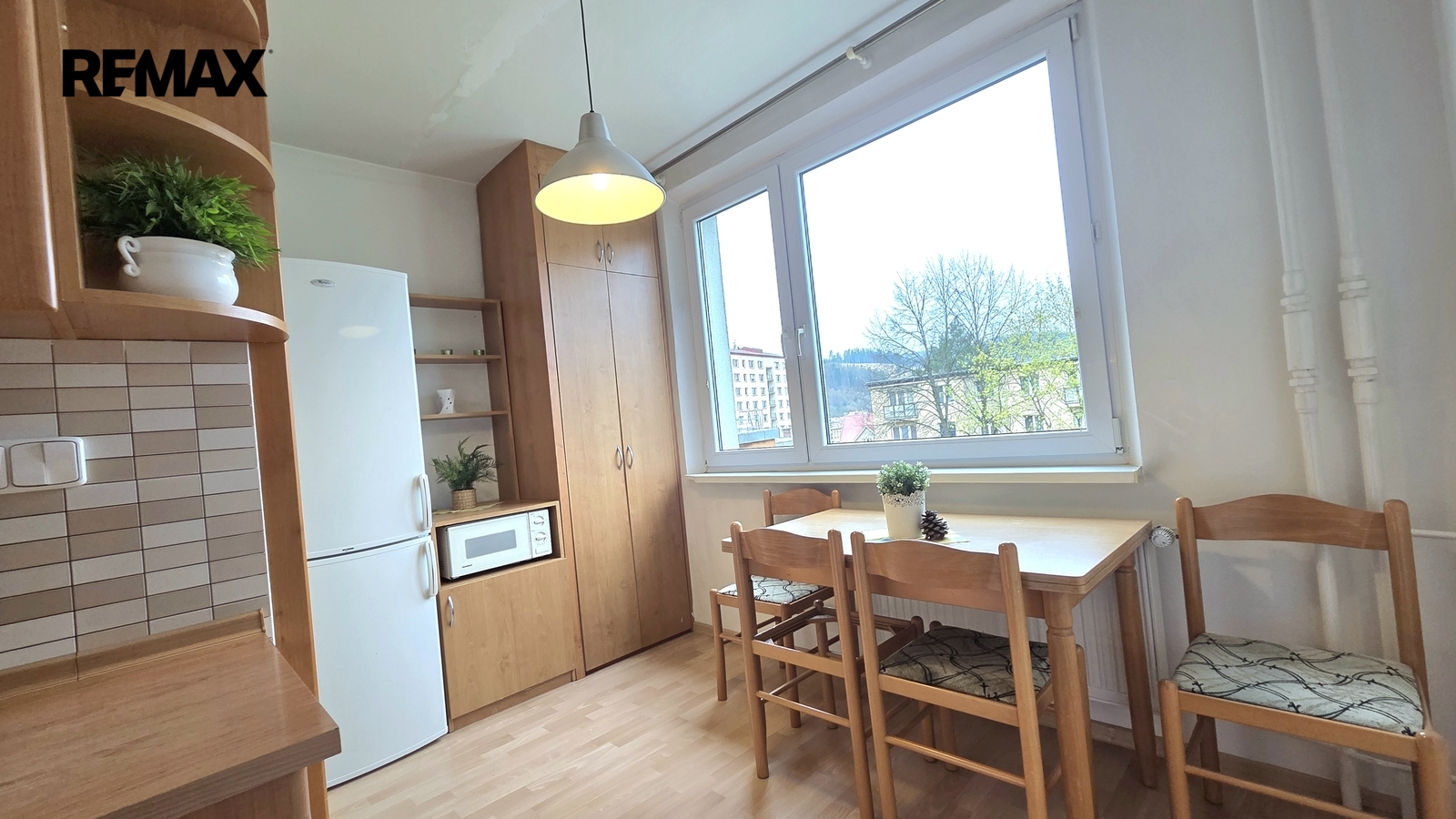 V bytě jsou plastová okna se žaluziemi.
