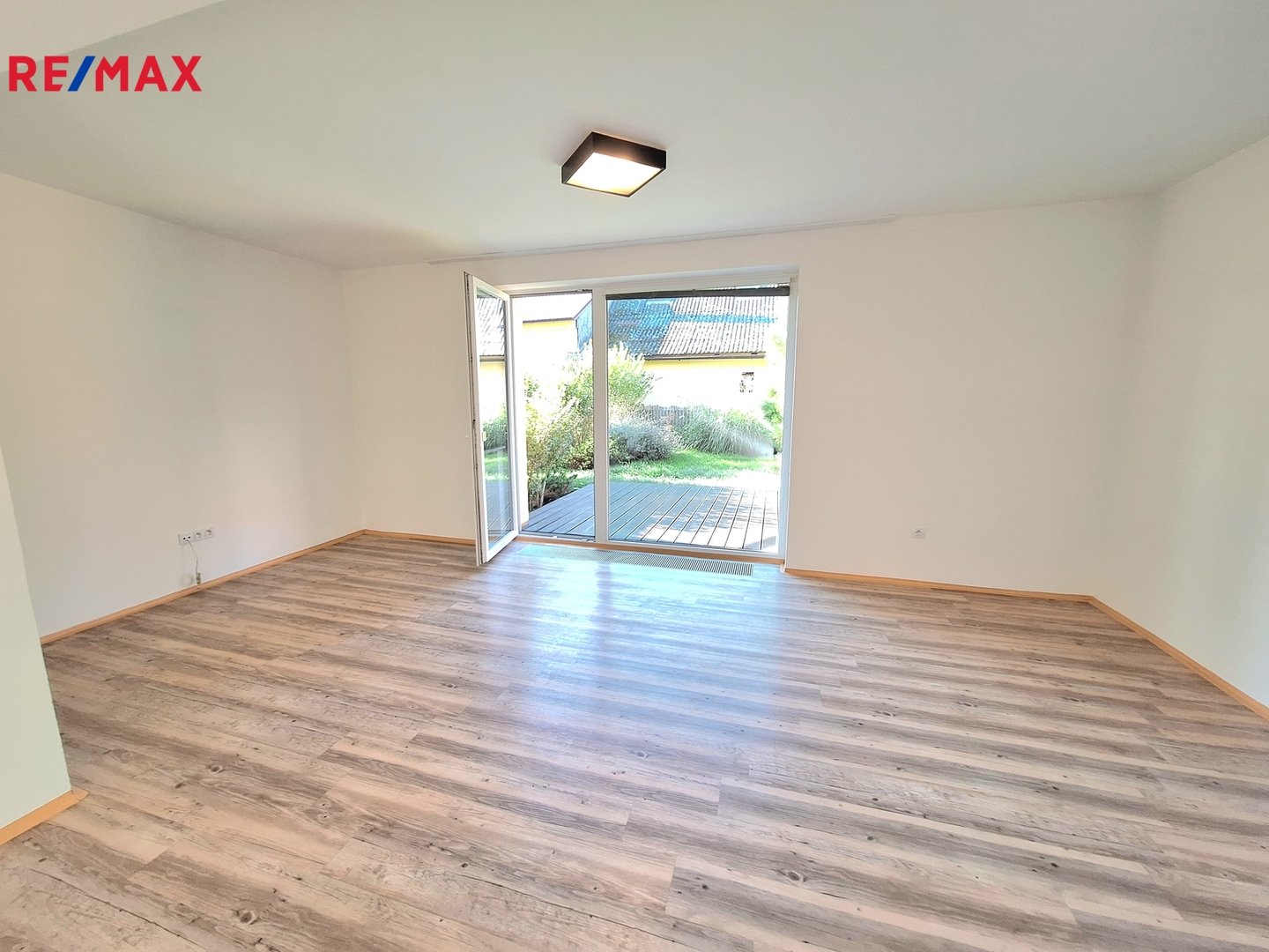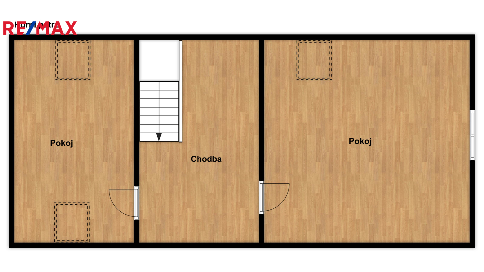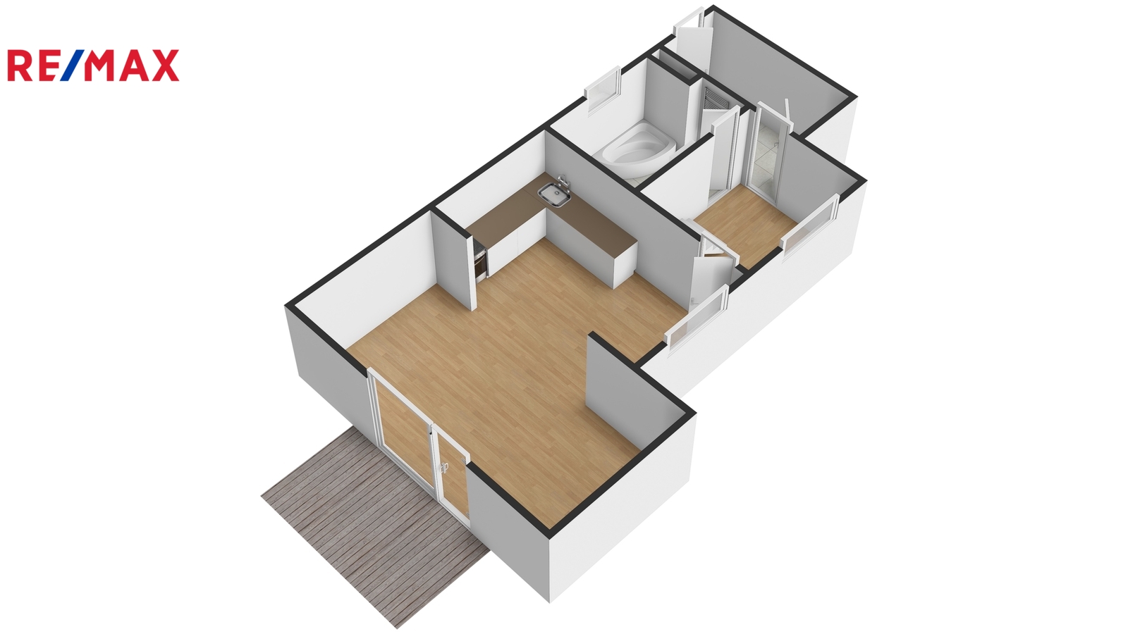 1. NP - vstupní předsíň, chodba se schodištěm do 2. NP, kuchyně, obývací pokoj se vstupem na terasu a zahradu, prostorná koupelna s WC.