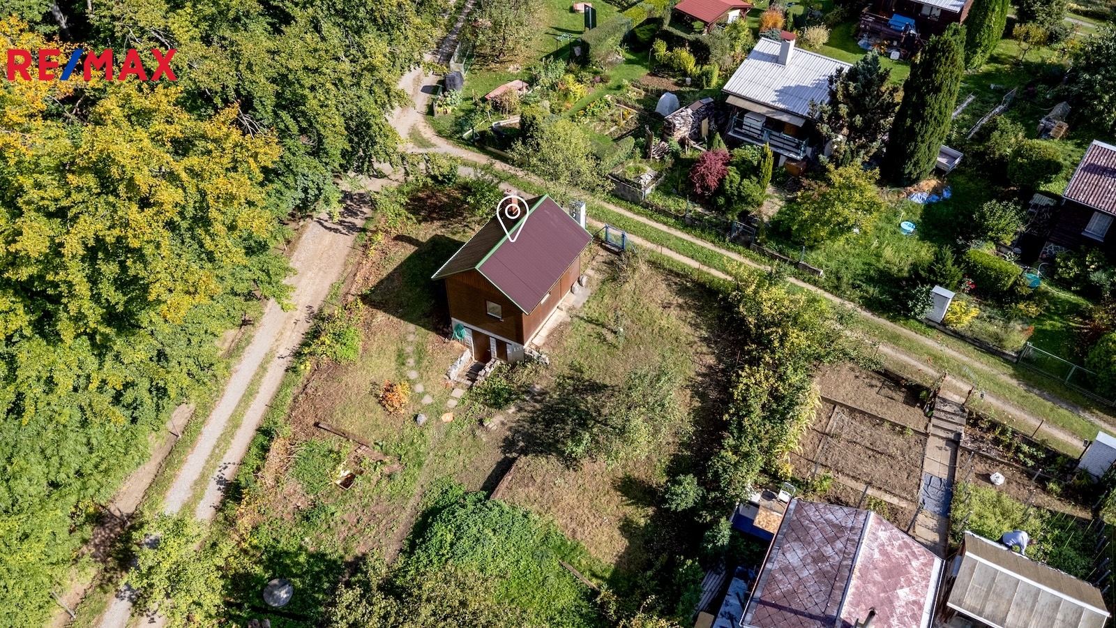 Ve výhradním zastoupení nabízím k prodeji udržovanou chatu se zahradou o celkové výměře 299 m², situovanou na samém konci osady — ideální pro ty, kteří hledají soukromí a klid. Celý areál je oplocen, vjezd je zajištěn automatickými vraty s dálkovým ovládáním, přístup mají pouze majitelé pozemků.