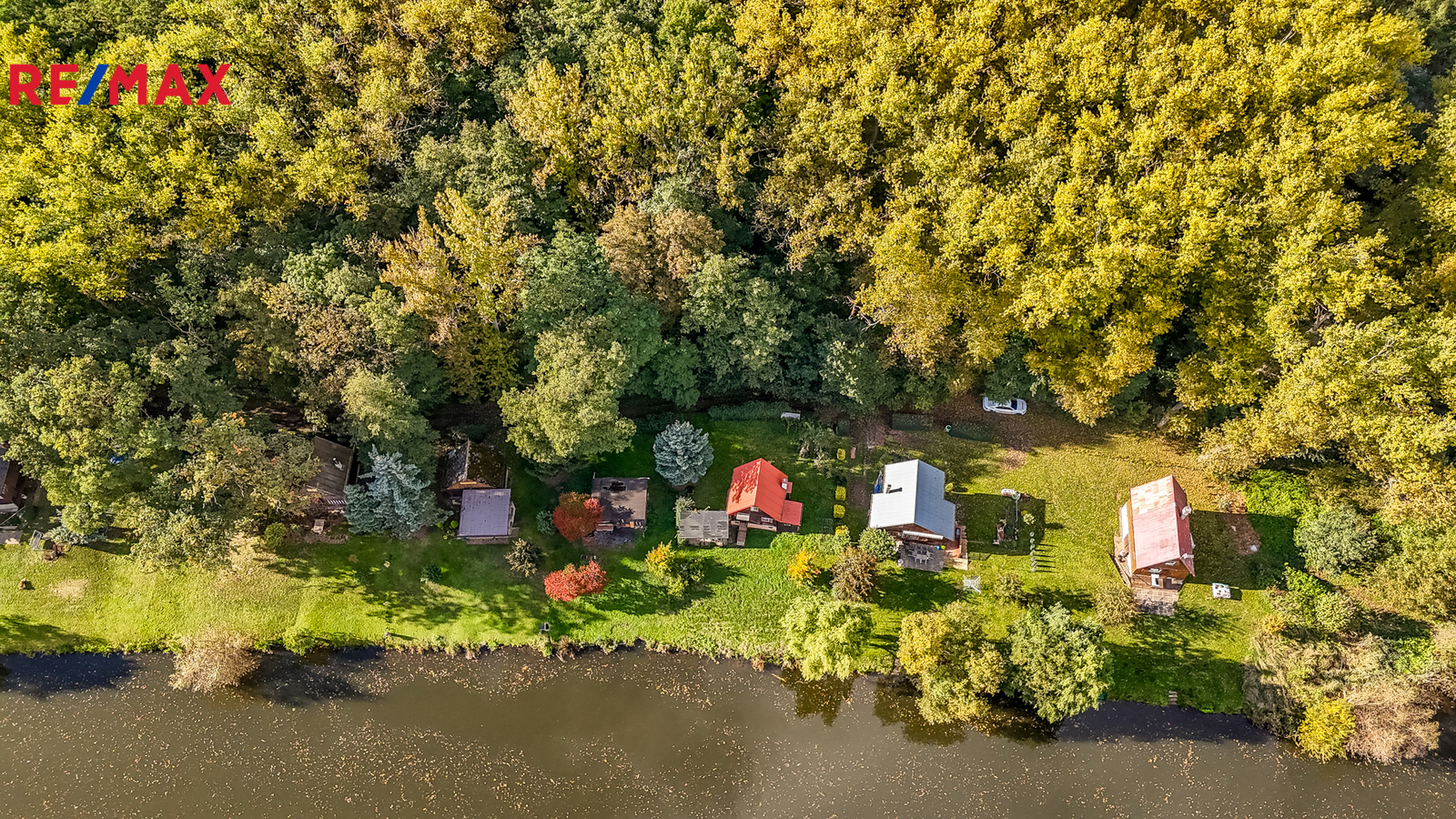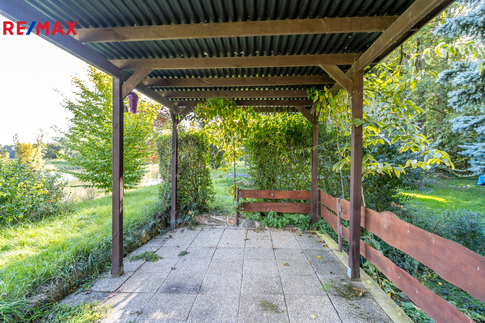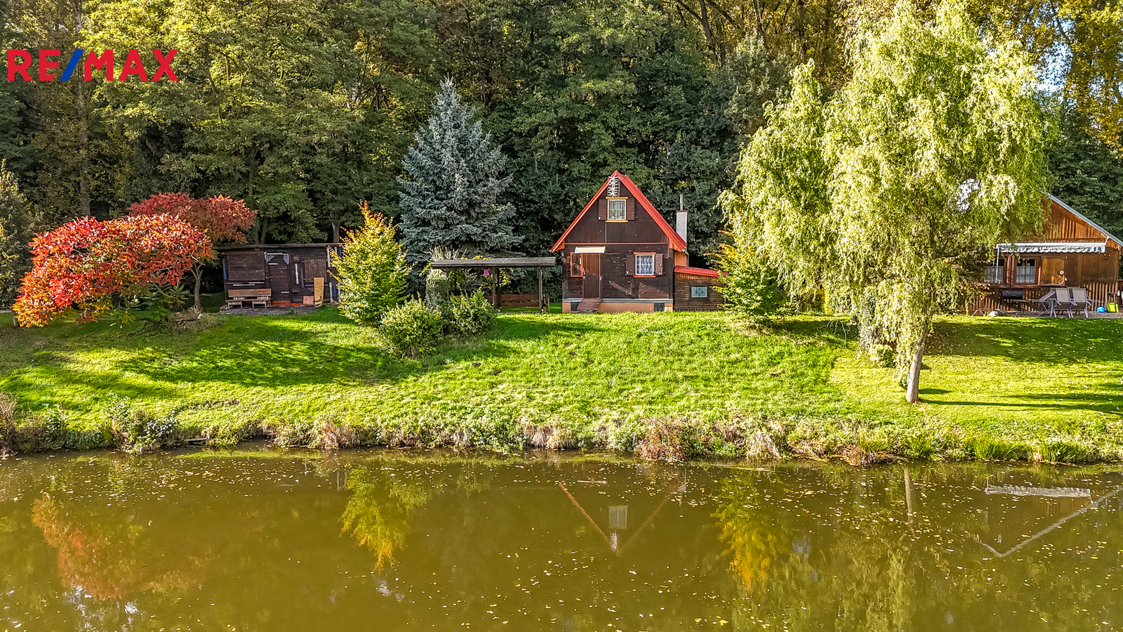 Na pozemku se nachází i menší zastřešené posezení – pergola/altán, kde si můžete užívat ranní kávu s výhledem na řeku nebo večerní grilování s přáteli. Pod chatou je praktický úložný prostor vhodný pro uskladnění zahradního, či rybářského náčiní a dalších věcí. Voda je řešena prostřednictvím studny, ohřev zajišťuje elektrický bojler, odpad je sveden do trativodu. Vytápění chaty zajišťují kamna, plyn zde zaveden není.